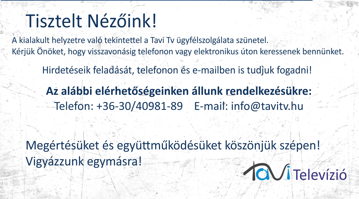 Itt megtekintheti a Tavi TV képújság oldalait és reklám videóit!