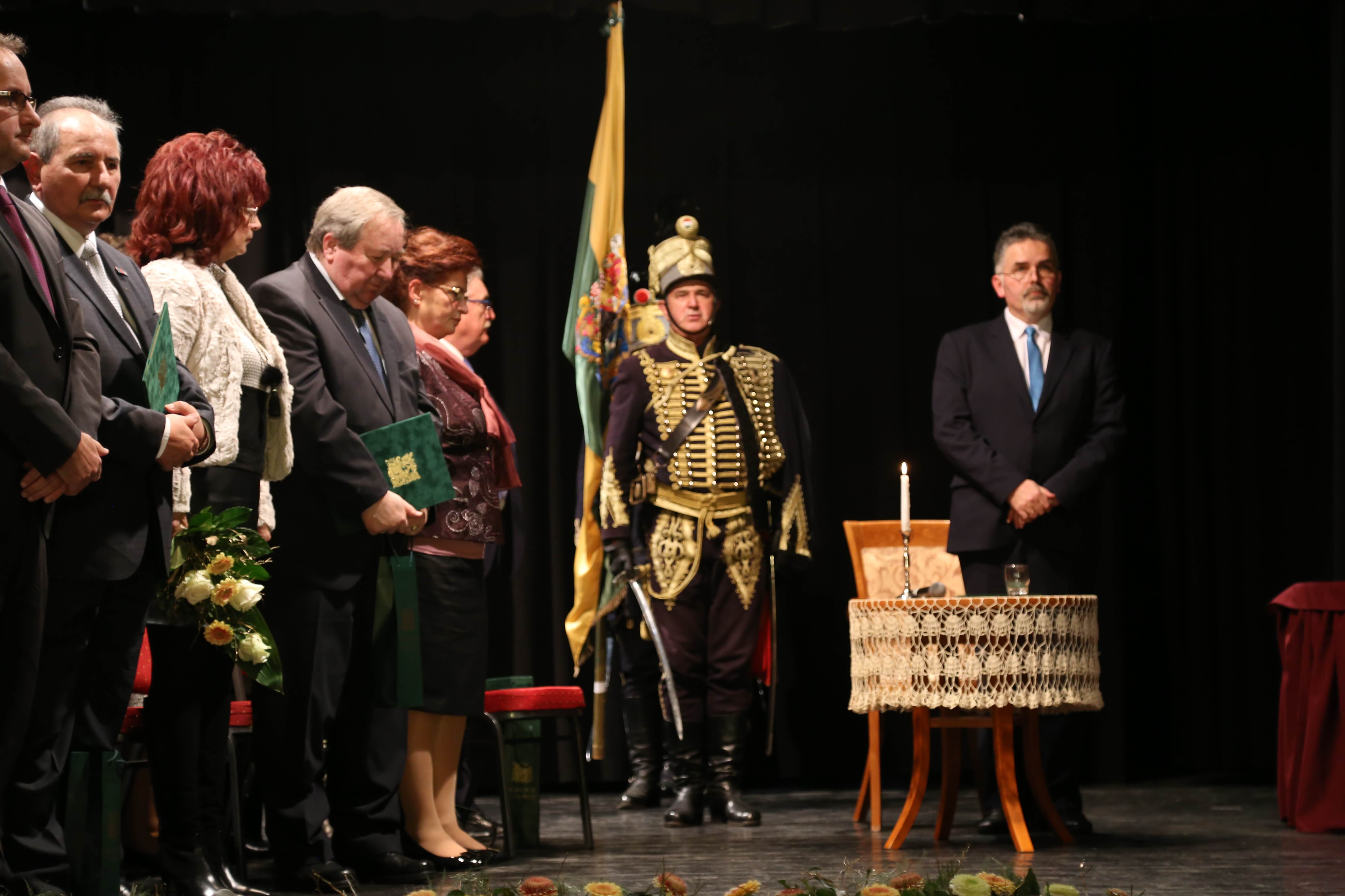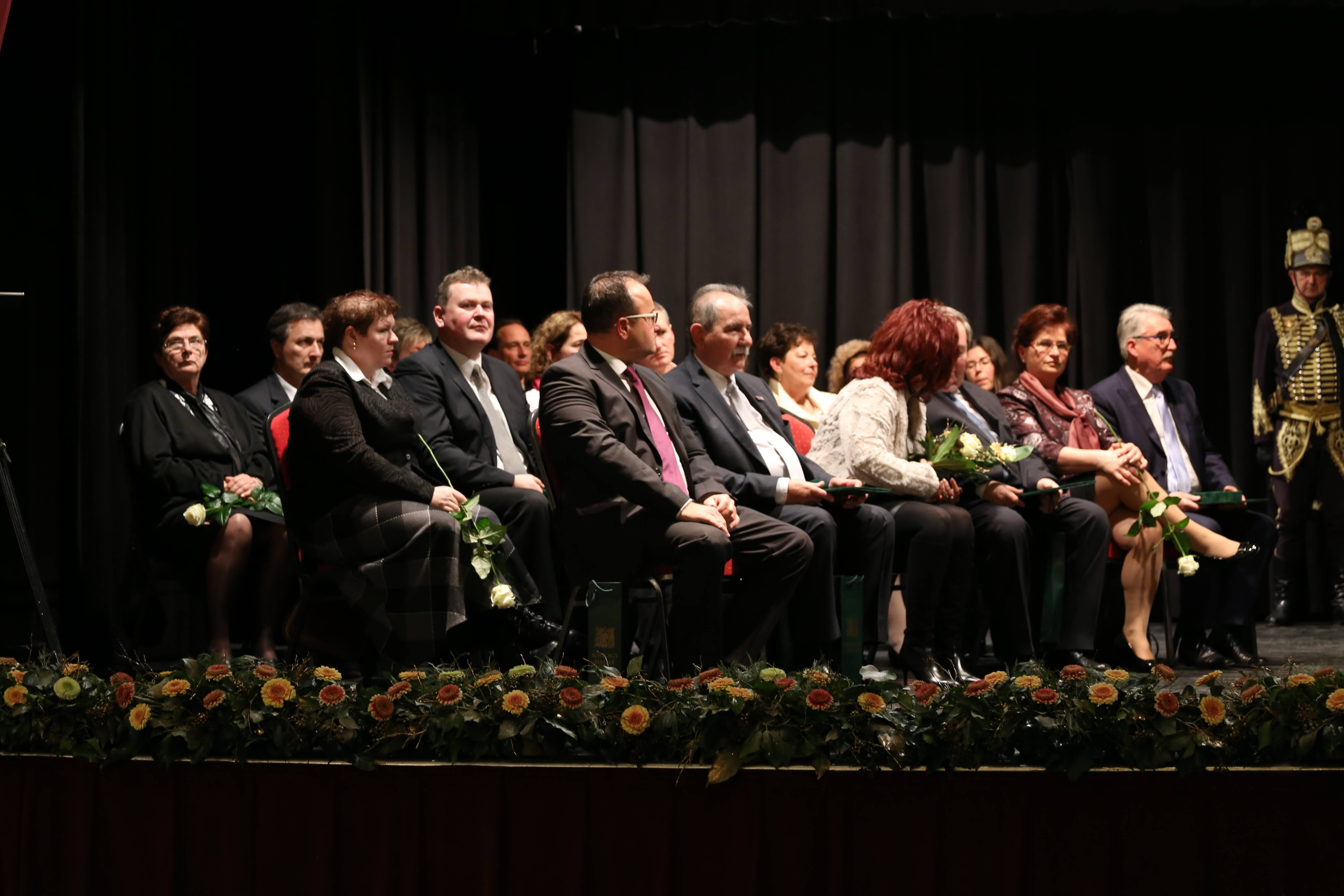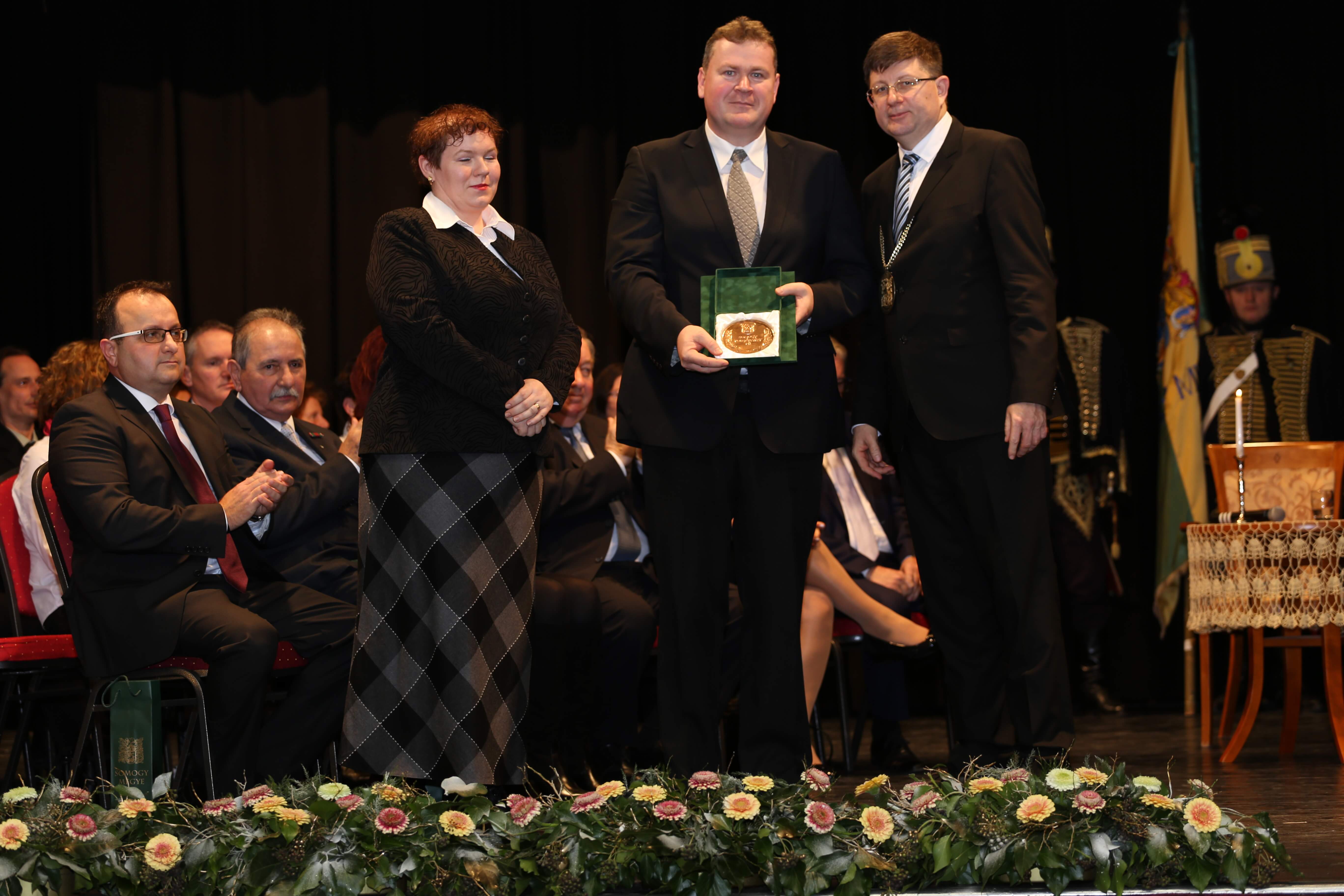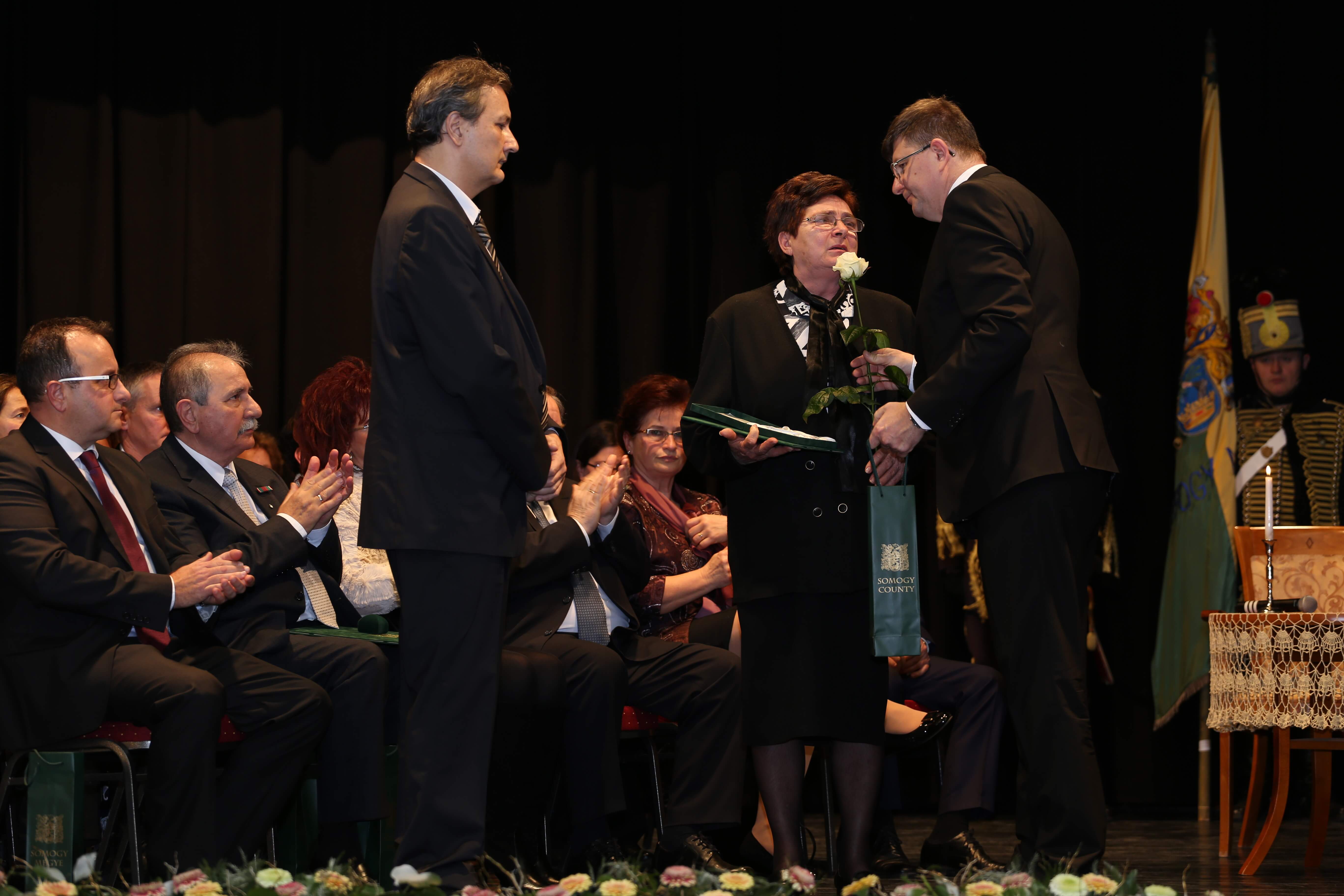 Az ünnepi beszédeket követően került sor az elismerő címek átadására. A Somogy Megyei Közgyűlés azon személyek és kollektívák elismerésére, akik kiemelkedő tevékenységükkel a megye fejlődését szolgálták, illetve munkájukkal kimagasló érdemeket szereztek, elismeréseket alapított.A megye legmagasabb elismeréseként „Pro Comitatu Somogy” Kitüntető Díjat és megyecímerrel díszített aranygyűrűt vehetett át dr. Gara István nagyatádi gyógyszerész. Somogy Polgáraiért Díjban részesült Bartha Béla siófoki református lelkész, Bujdosó Ferenc Aurél borász, a nagyatádi Büttner és Társai Szerszámelemgyártó és Kereskedelmi Kft. Kollektívája, dr. Graffits Éva, a Somogy Megyei Kaposi Mór Oktató Kórház osztályvezető főorvosa, dr. Huszárné dr. Bodor Tünde, a Somogy Megyei Kormányhivatal Siófoki Járási Hivatalának egykori vezetője (posztumusz), Keresztes Mária, a Szentbalázsi Körzeti Általános Iskola pedagógusa, volt igazgatója, a Marcali és Környéke Hagyományőrző Ipartestület, Nagy Erika, a Nagybajomi Kulturális Igazgatás intézményvezetője, Peitlerné Takács Éva, a Lengyeltóti Városi Művelődési Ház és Könyvtár igazgatója és Sárdi Árpád, a Somogy Megyei Közgyűlés volt főállású alelnöke. Somogy Megye Közgyűlése „(Fő)Jegyző Emeritus” Címet adományozott dr. Vörös Tamásnak, a Somogy Megyei Önkormányzati Hivatal volt megyei főjegyzőjének.