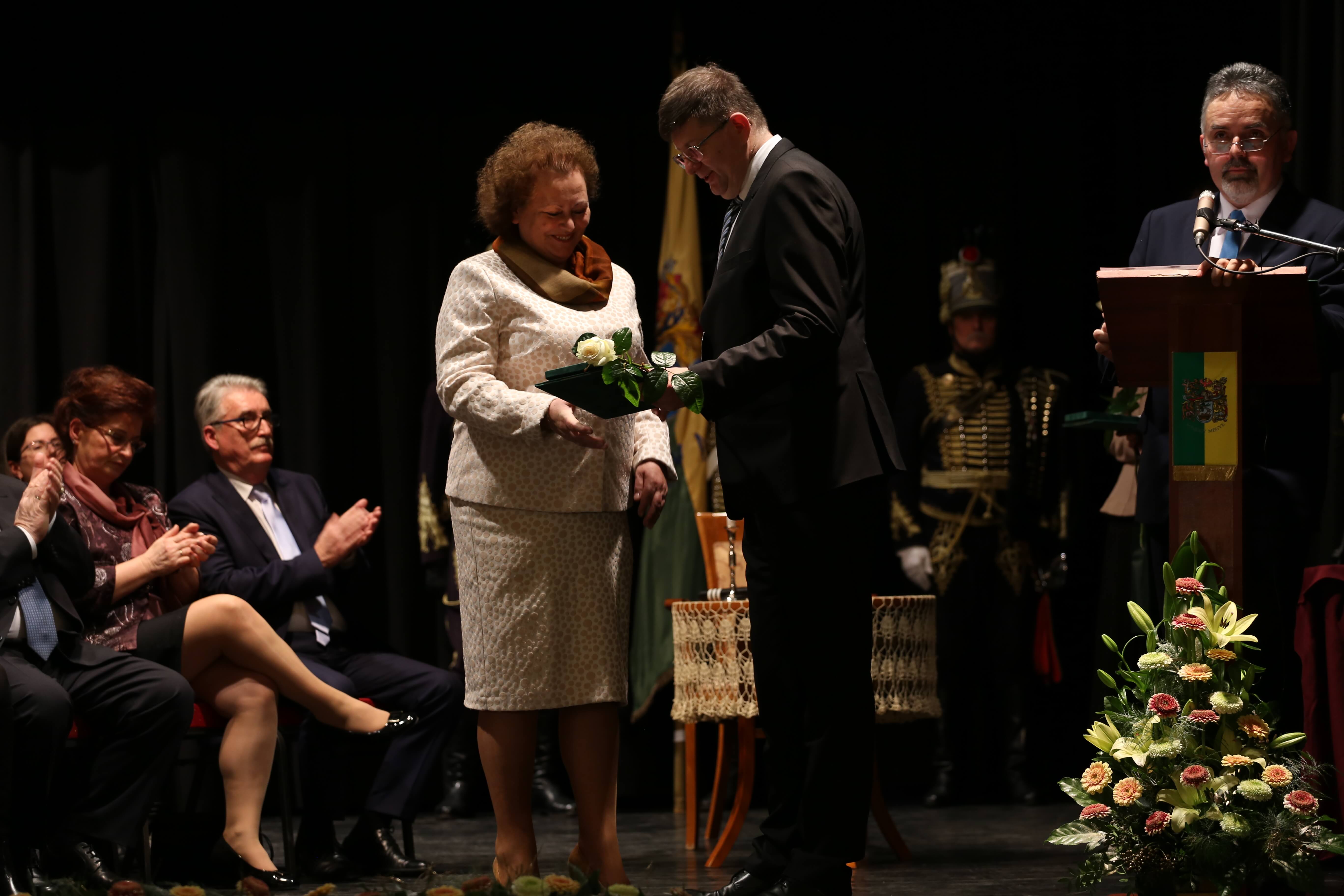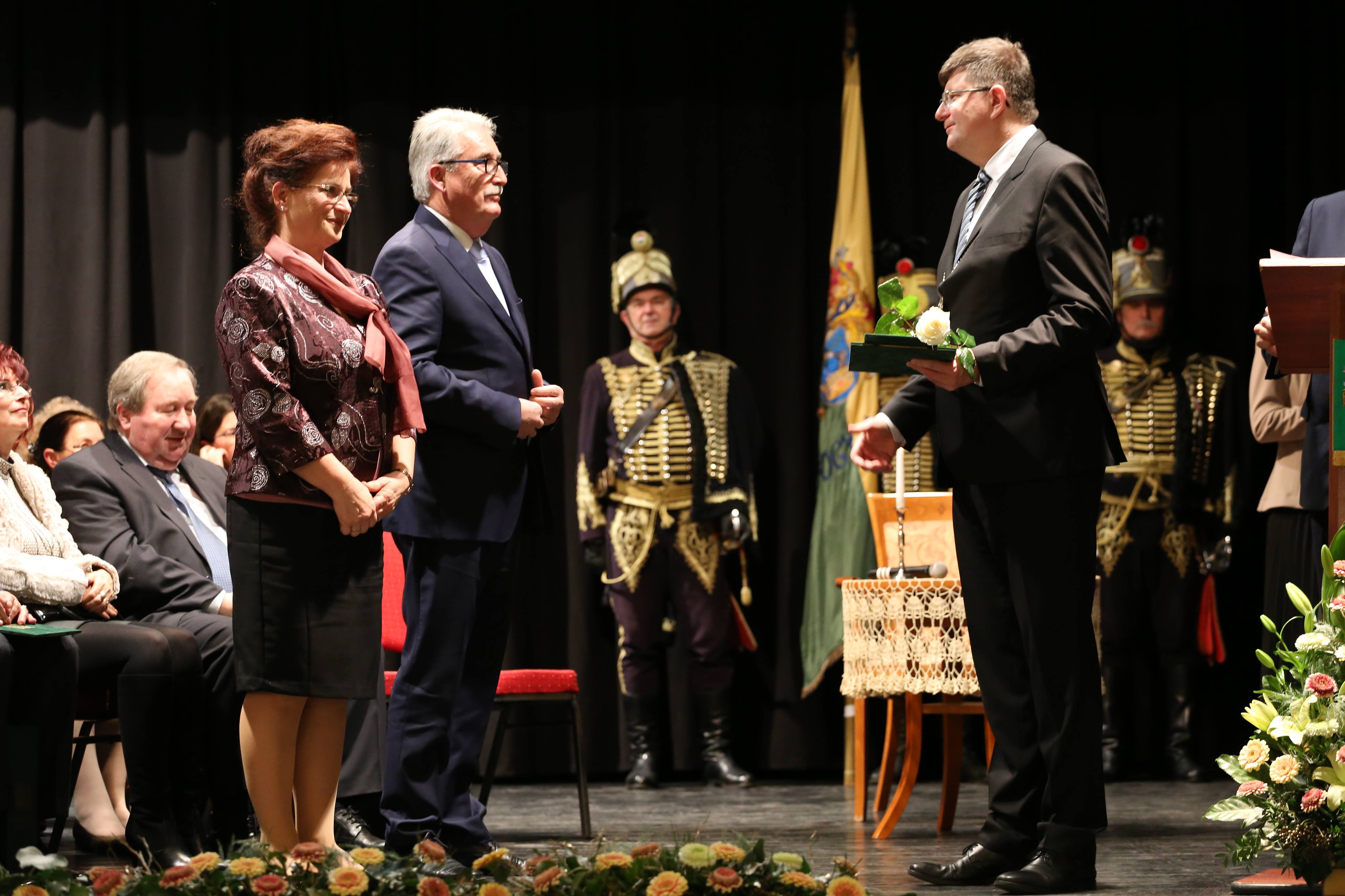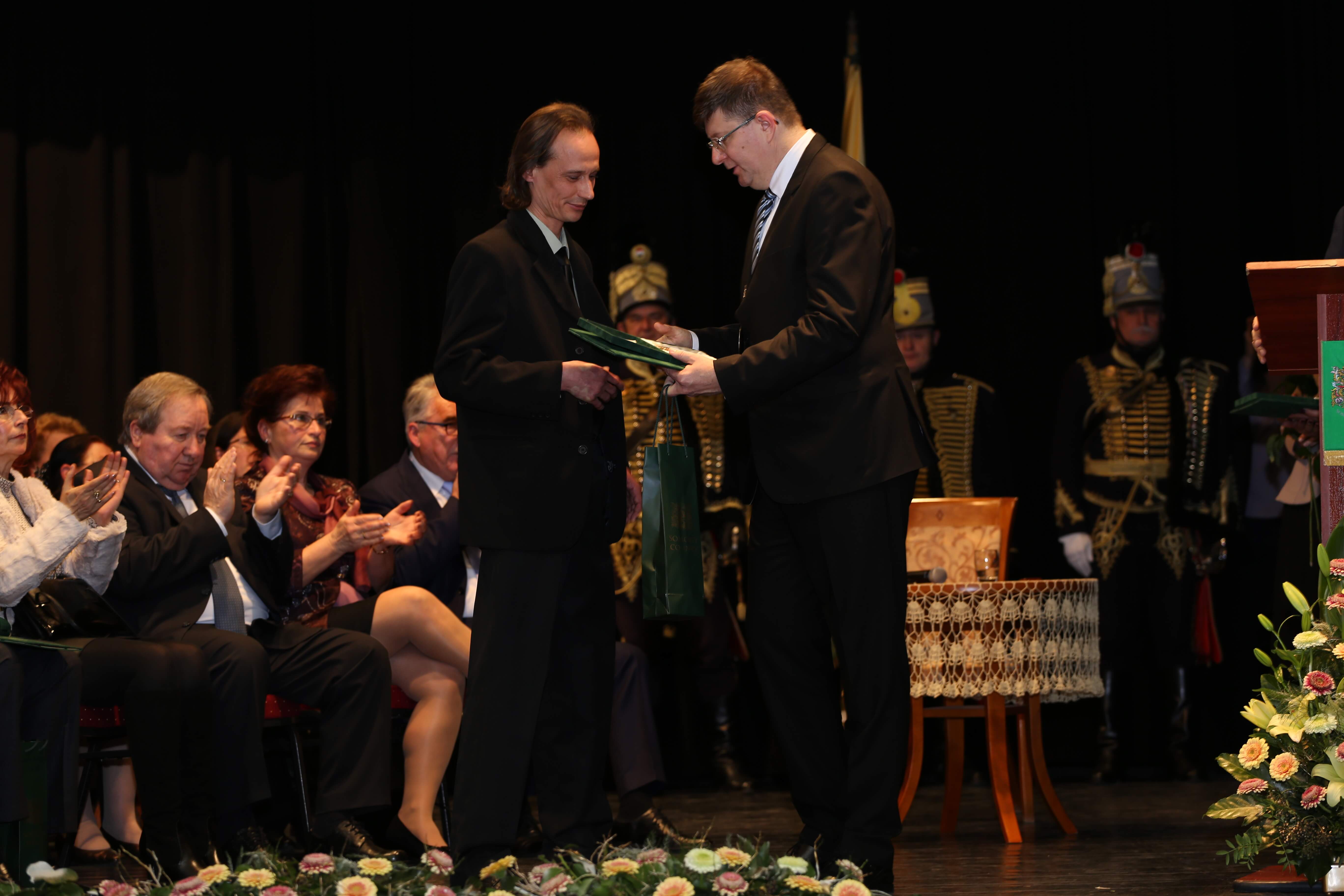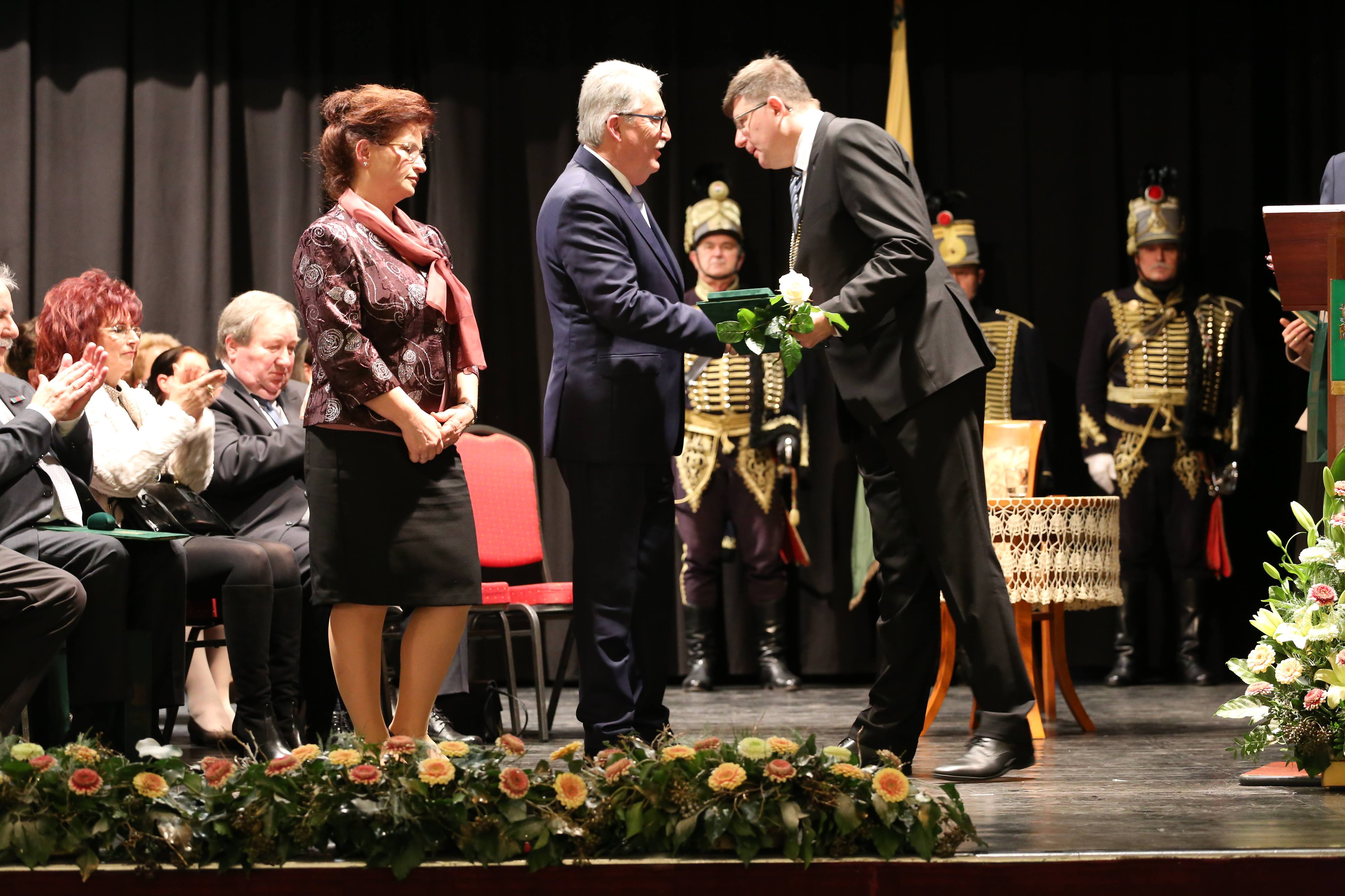 Az ünnepi beszédeket követően került sor az elismerő címek átadására. A Somogy Megyei Közgyűlés azon személyek és kollektívák elismerésére, akik kiemelkedő tevékenységükkel a megye fejlődését szolgálták, illetve munkájukkal kimagasló érdemeket szereztek, elismeréseket alapított.A megye legmagasabb elismeréseként „Pro Comitatu Somogy” Kitüntető Díjat és megyecímerrel díszített aranygyűrűt vehetett át dr. Gara István nagyatádi gyógyszerész. Somogy Polgáraiért Díjban részesült Bartha Béla siófoki református lelkész, Bujdosó Ferenc Aurél borász, a nagyatádi Büttner és Társai Szerszámelemgyártó és Kereskedelmi Kft. Kollektívája, dr. Graffits Éva, a Somogy Megyei Kaposi Mór Oktató Kórház osztályvezető főorvosa, dr. Huszárné dr. Bodor Tünde, a Somogy Megyei Kormányhivatal Siófoki Járási Hivatalának egykori vezetője (posztumusz), Keresztes Mária, a Szentbalázsi Körzeti Általános Iskola pedagógusa, volt igazgatója, a Marcali és Környéke Hagyományőrző Ipartestület, Nagy Erika, a Nagybajomi Kulturális Igazgatás intézményvezetője, Peitlerné Takács Éva, a Lengyeltóti Városi Művelődési Ház és Könyvtár igazgatója és Sárdi Árpád, a Somogy Megyei Közgyűlés volt főállású alelnöke. Somogy Megye Közgyűlése „(Fő)Jegyző Emeritus” Címet adományozott dr. Vörös Tamásnak, a Somogy Megyei Önkormányzati Hivatal volt megyei főjegyzőjének.