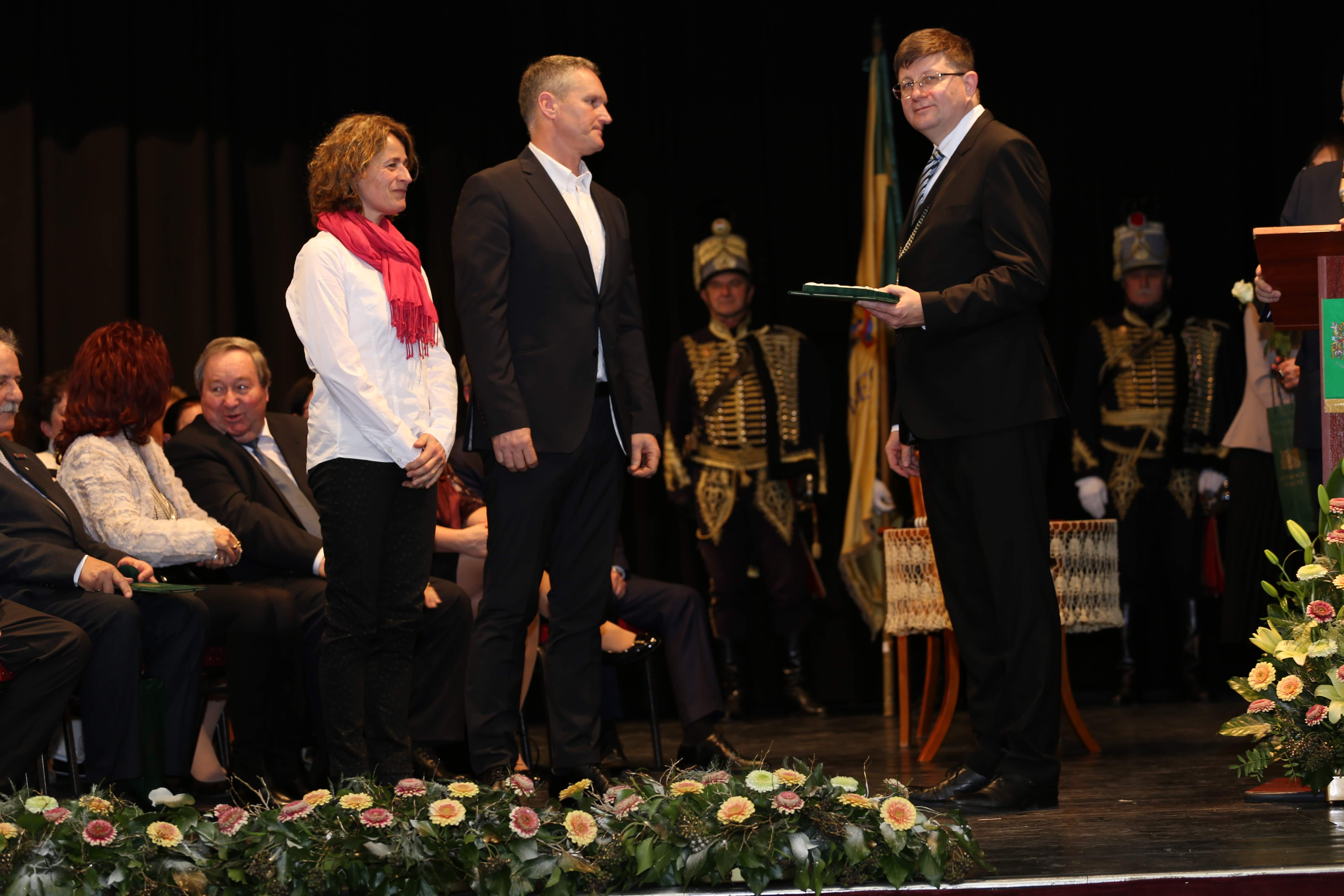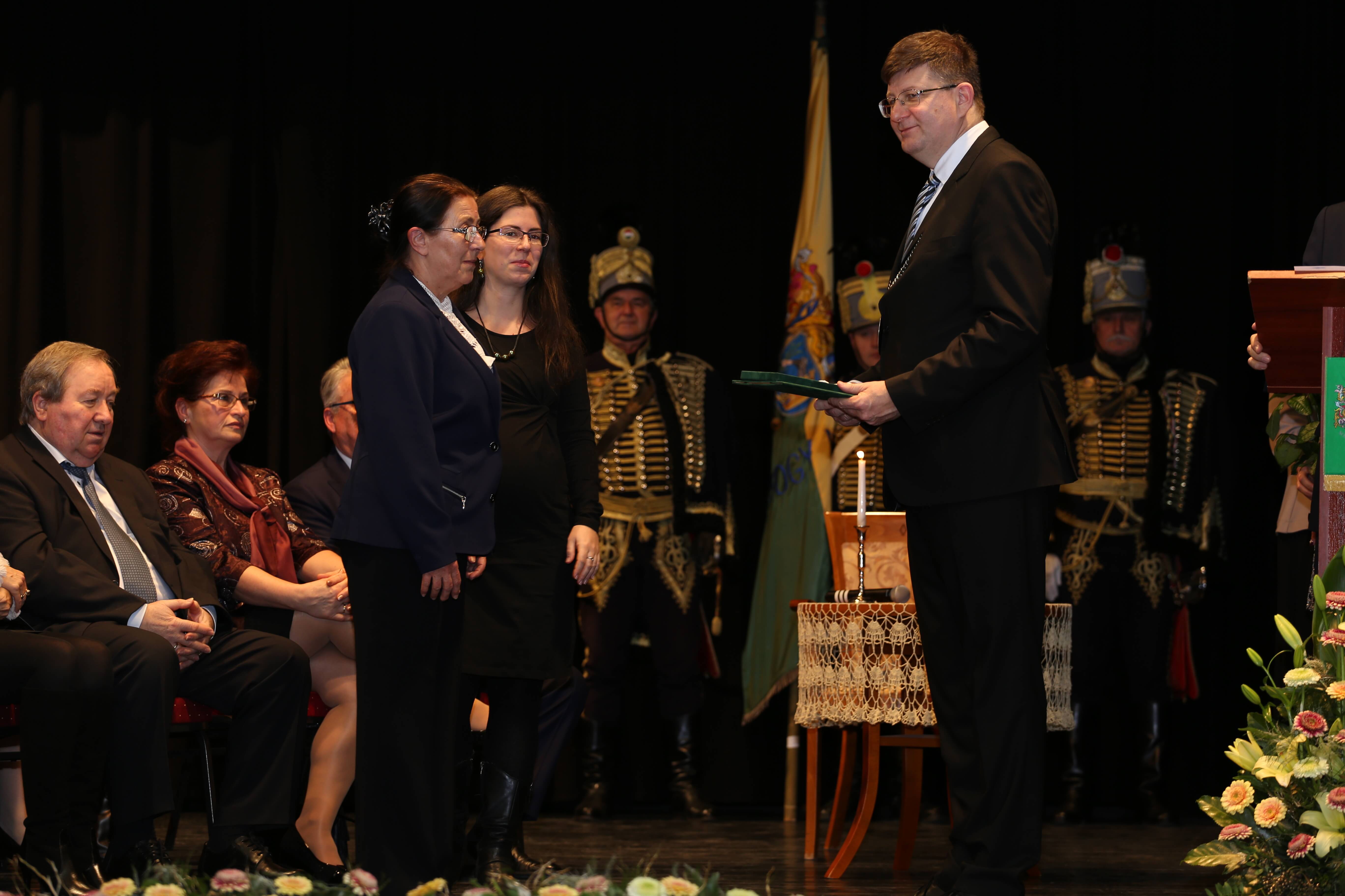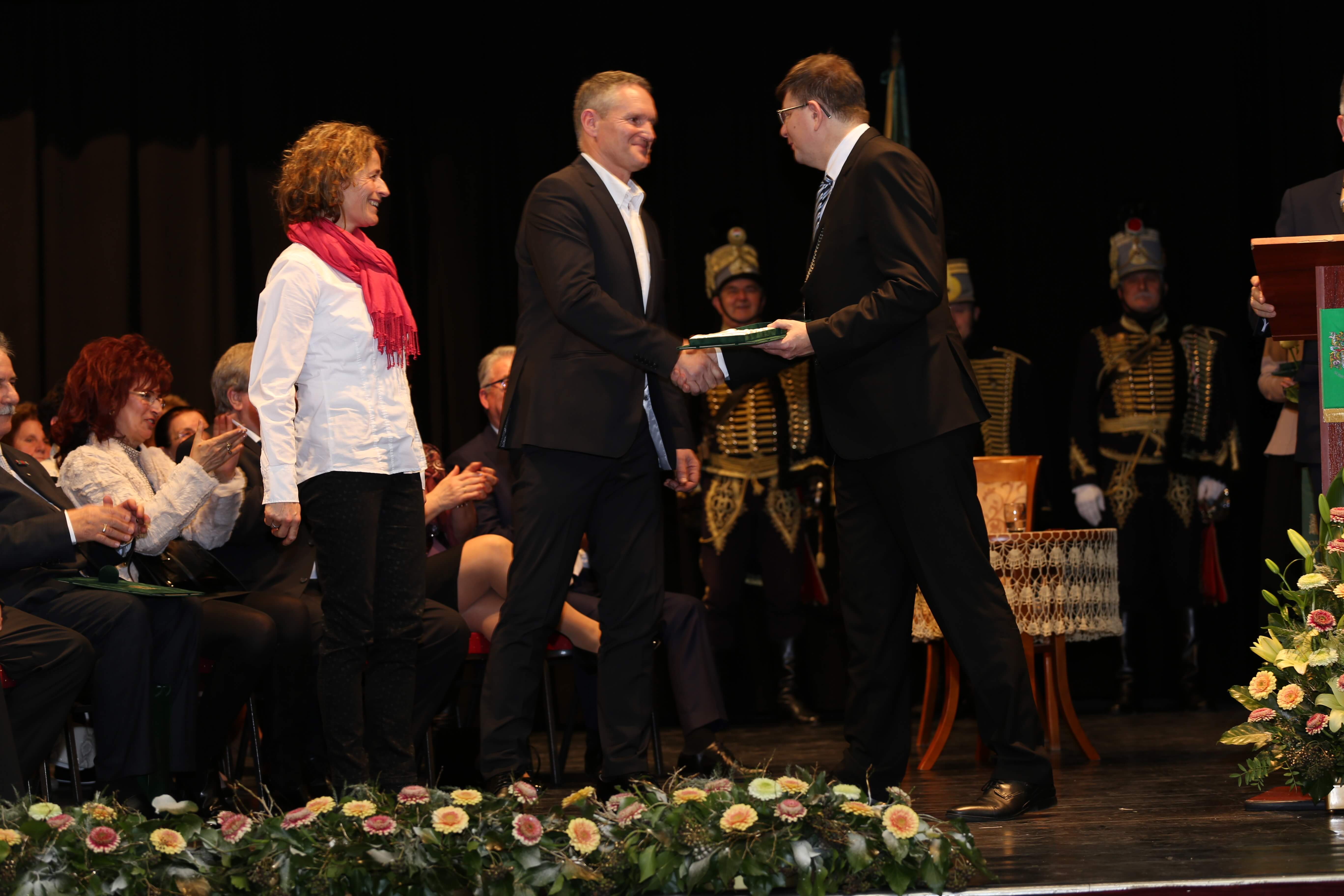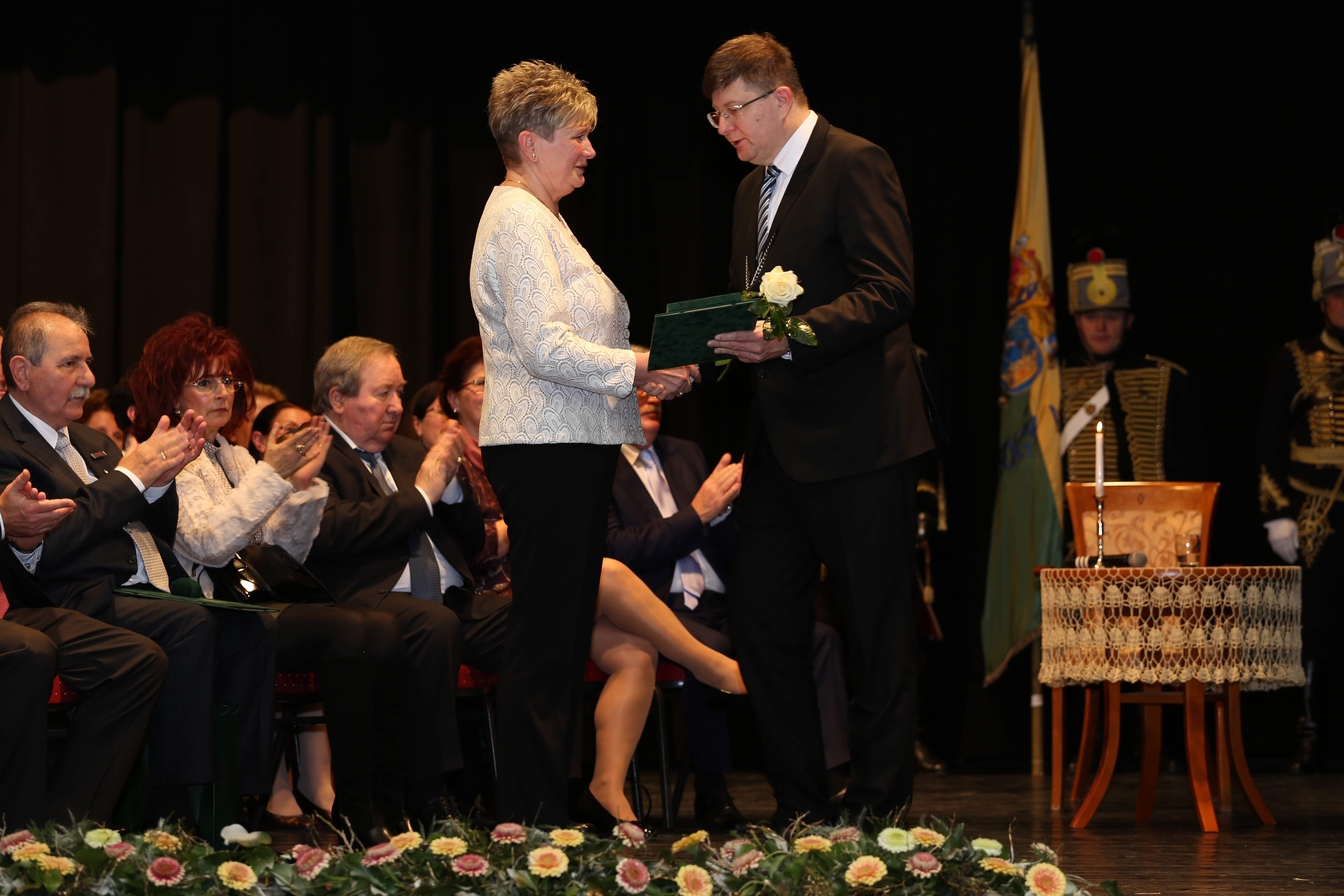 Az ünnepi beszédeket követően került sor az elismerő címek átadására. A Somogy Megyei Közgyűlés azon személyek és kollektívák elismerésére, akik kiemelkedő tevékenységükkel a megye fejlődését szolgálták, illetve munkájukkal kimagasló érdemeket szereztek, elismeréseket alapított.A megye legmagasabb elismeréseként „Pro Comitatu Somogy” Kitüntető Díjat és megyecímerrel díszített aranygyűrűt vehetett át dr. Gara István nagyatádi gyógyszerész. Somogy Polgáraiért Díjban részesült Bartha Béla siófoki református lelkész, Bujdosó Ferenc Aurél borász, a nagyatádi Büttner és Társai Szerszámelemgyártó és Kereskedelmi Kft. Kollektívája, dr. Graffits Éva, a Somogy Megyei Kaposi Mór Oktató Kórház osztályvezető főorvosa, dr. Huszárné dr. Bodor Tünde, a Somogy Megyei Kormányhivatal Siófoki Járási Hivatalának egykori vezetője (posztumusz), Keresztes Mária, a Szentbalázsi Körzeti Általános Iskola pedagógusa, volt igazgatója, a Marcali és Környéke Hagyományőrző Ipartestület, Nagy Erika, a Nagybajomi Kulturális Igazgatás intézményvezetője, Peitlerné Takács Éva, a Lengyeltóti Városi Művelődési Ház és Könyvtár igazgatója és Sárdi Árpád, a Somogy Megyei Közgyűlés volt főállású alelnöke. Somogy Megye Közgyűlése „(Fő)Jegyző Emeritus” Címet adományozott dr. Vörös Tamásnak, a Somogy Megyei Önkormányzati Hivatal volt megyei főjegyzőjének.