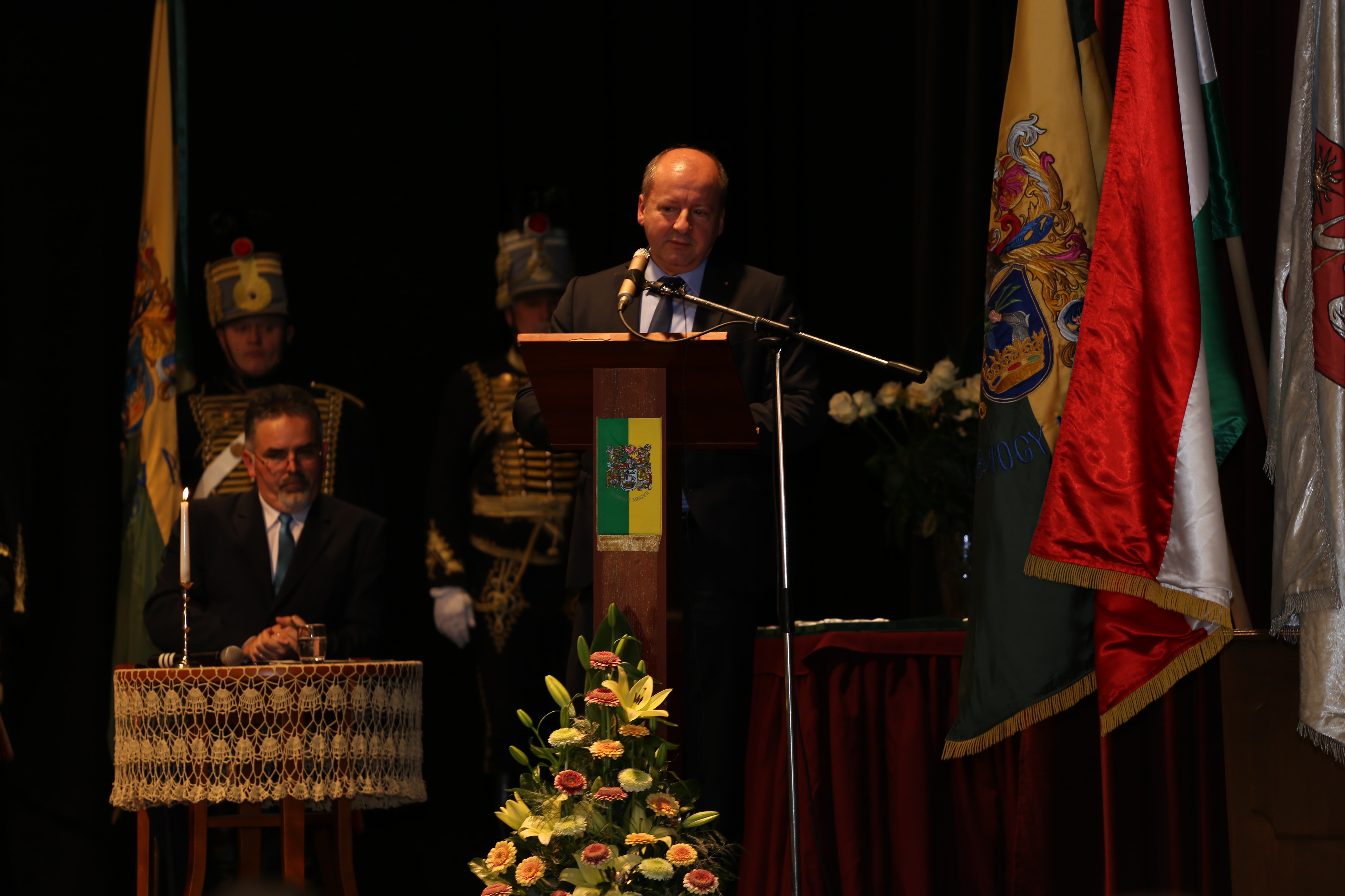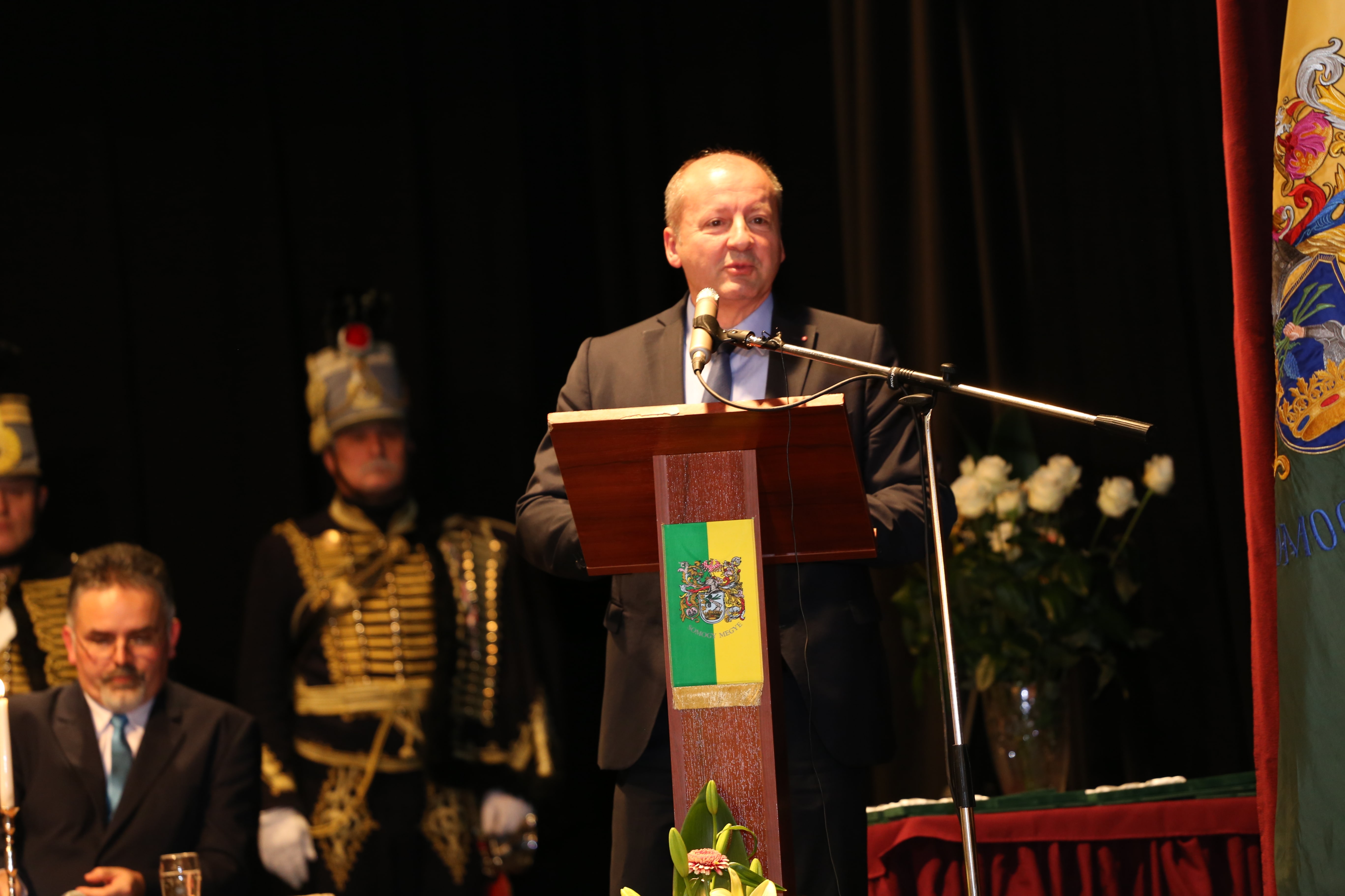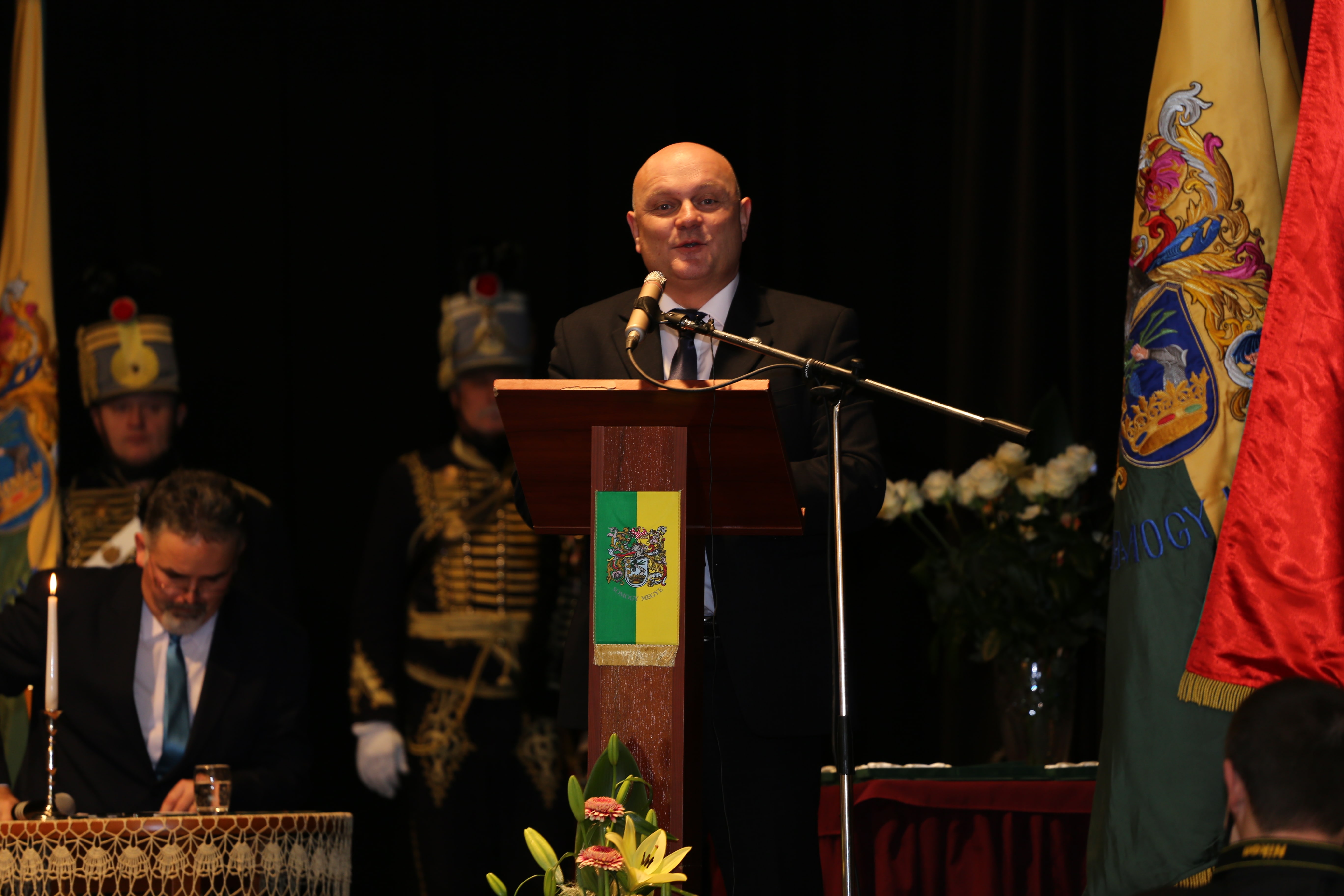 A nap díszvendége, dr. Simicskó István köszöntőjében Somogy katonamúltját és jelenét méltatta, majd kiemelte: az emberi értékeket meg kell becsülni, s a közösség szolgálatával tudunk csak előrébb lépni. Keresztény értékeink hangsúlyozása mellett megjegyezte, nem erre számítottunk a 21. században, nem arra, ami jelenleg Európában zajlik. A nyugati civilizáció lelki válságban van. Tiszta lélekkel, ha a szív és a lélek harmóniában van, csak akkor lehet építkezni, jót cselekedni. Az értelem és érzelem valamint a keresztény hit köti össze az embereket. A karácsonyi bölcső az önzetlen szeretet jelképe, ez adhat erőt a keresztény civilizációnak. Magyarországnak van hite, azon dolgozunk, hogy Magyarország megmaradhasson magyarnak. Ahogy Somogy példát mutatott 1490 után, úgy kell ma Magyarországnak is példát mutatnia.