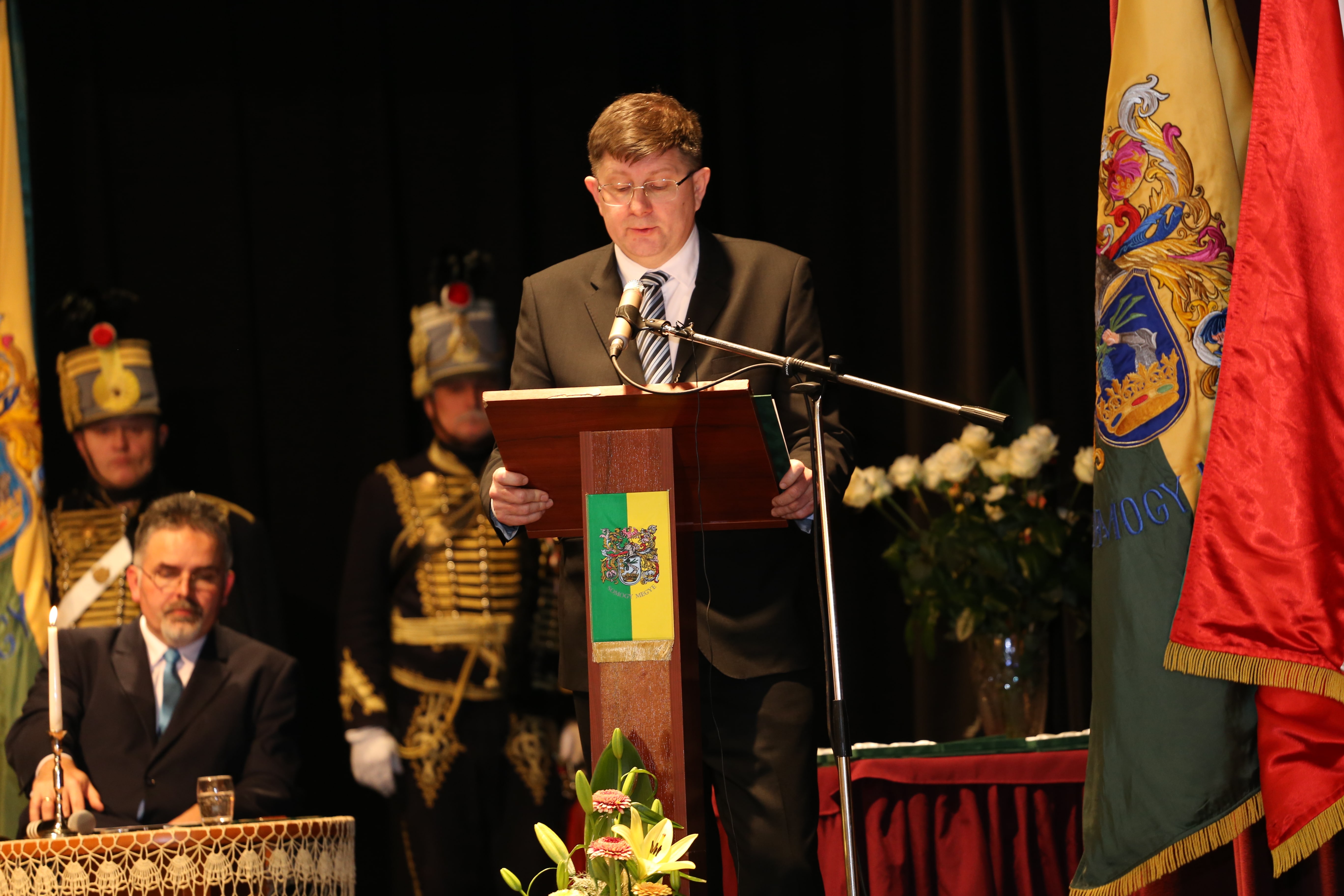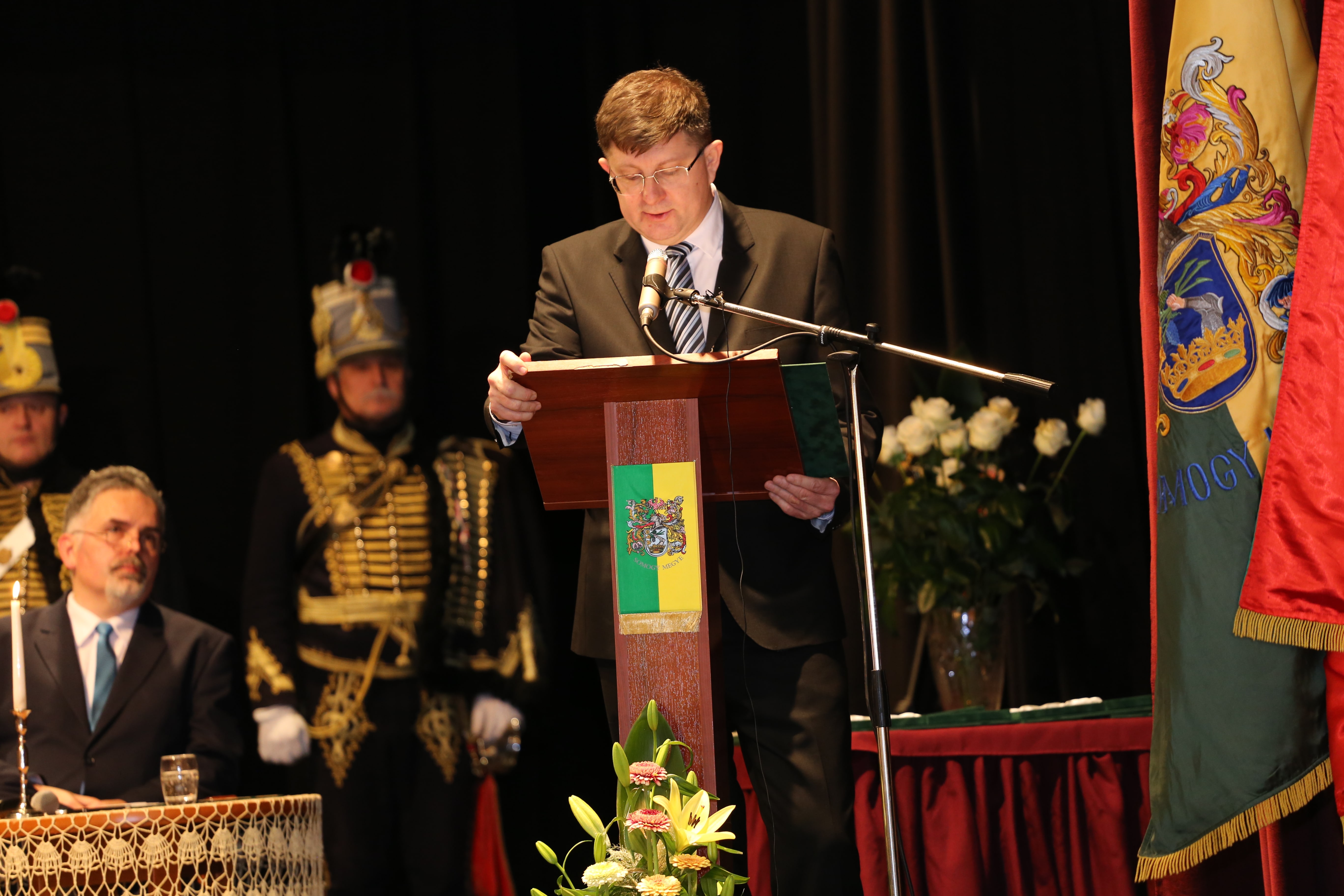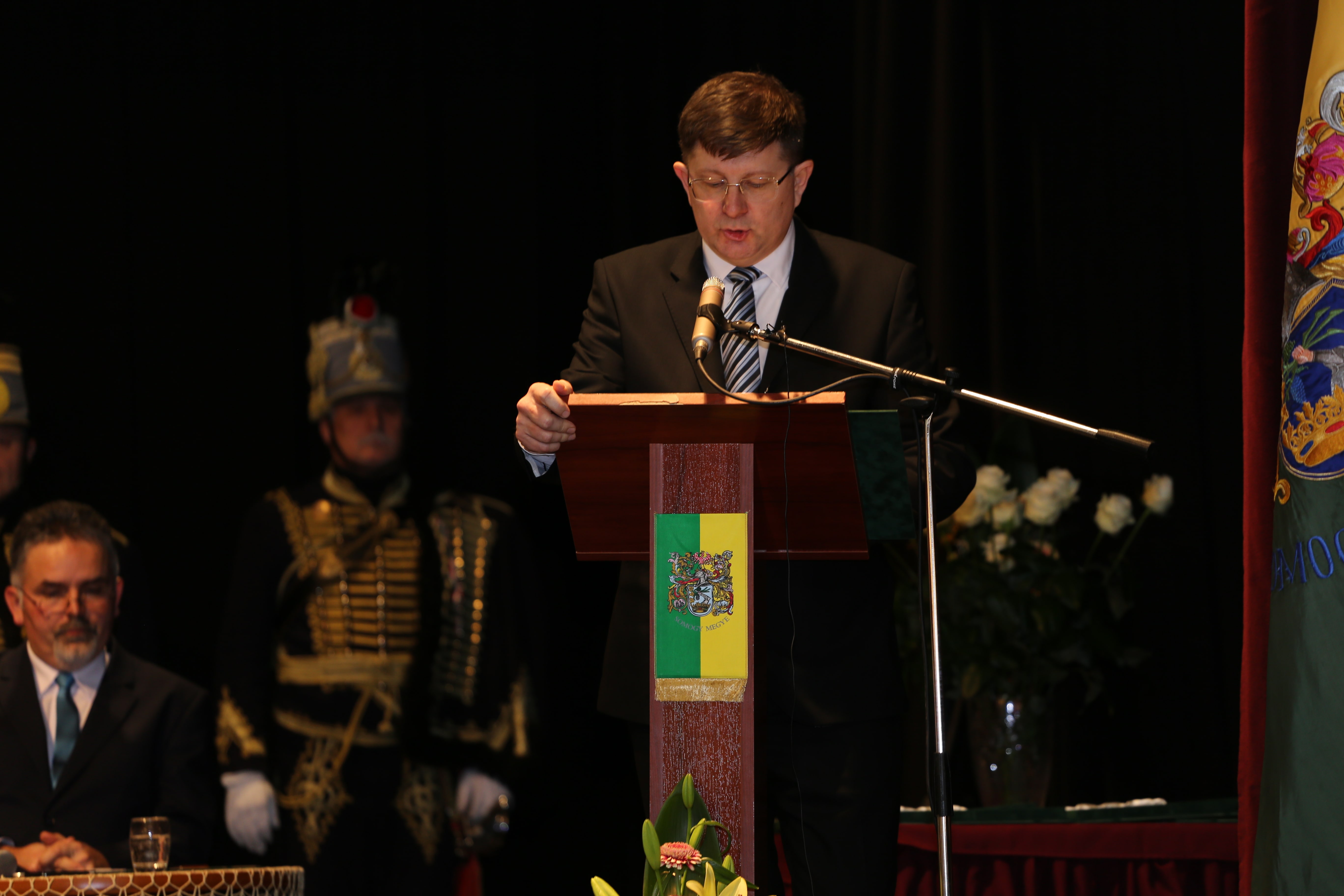 A nap díszvendége, dr. Simicskó István köszöntőjében Somogy katonamúltját és jelenét méltatta, majd kiemelte: az emberi értékeket meg kell becsülni, s a közösség szolgálatával tudunk csak előrébb lépni. Keresztény értékeink hangsúlyozása mellett megjegyezte, nem erre számítottunk a 21. században, nem arra, ami jelenleg Európában zajlik. A nyugati civilizáció lelki válságban van. Tiszta lélekkel, ha a szív és a lélek harmóniában van, csak akkor lehet építkezni, jót cselekedni. Az értelem és érzelem valamint a keresztény hit köti össze az embereket. A karácsonyi bölcső az önzetlen szeretet jelképe, ez adhat erőt a keresztény civilizációnak. Magyarországnak van hite, azon dolgozunk, hogy Magyarország megmaradhasson magyarnak. Ahogy Somogy példát mutatott 1490 után, úgy kell ma Magyarországnak is példát mutatnia.