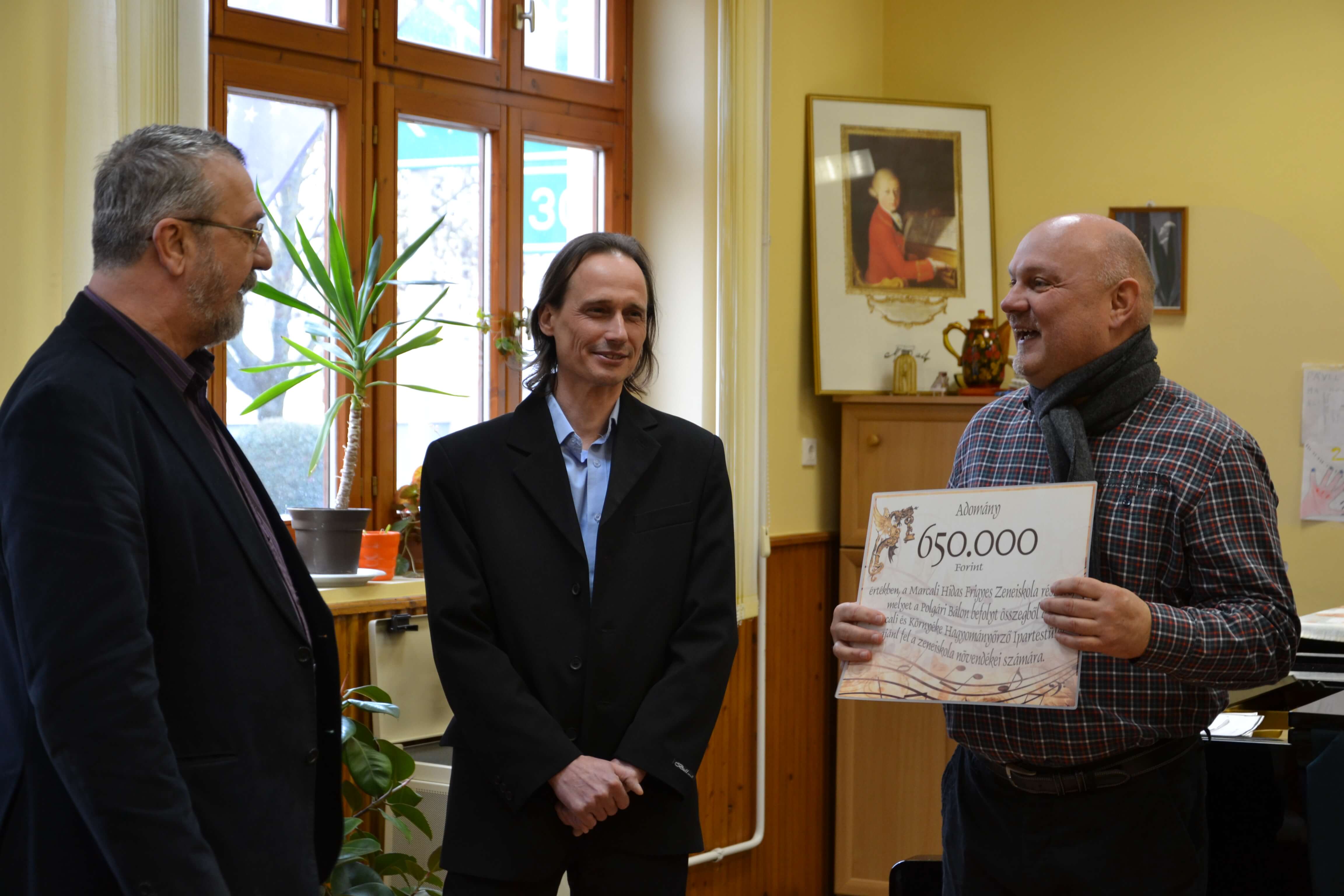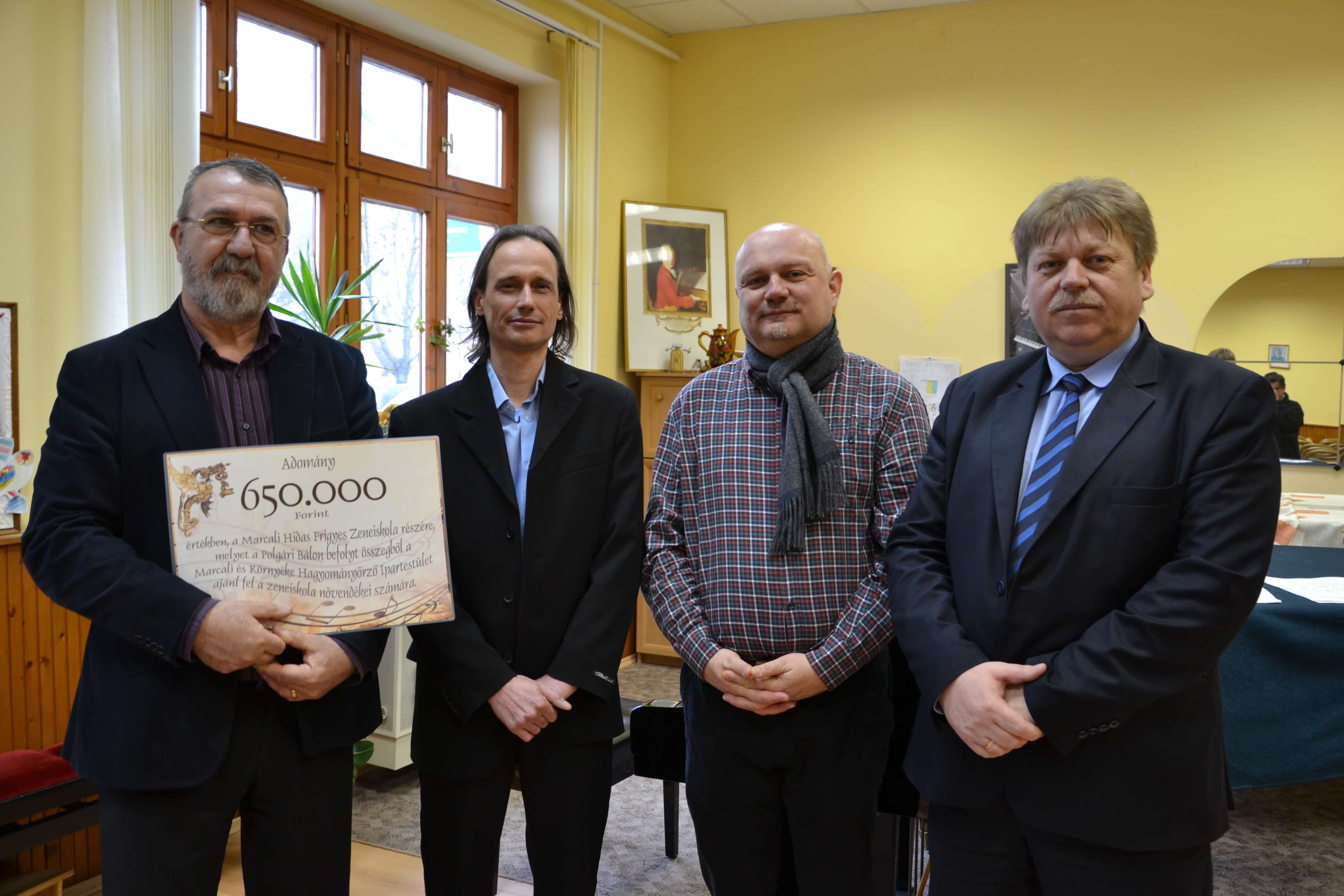 Mint arról már korábban beszámoltunk. Újra megszervezték Marcaliban a Polgári bált. Móring József Attila országgyűlési képviselő fővédnöksége és Huszti Gábor védnöksége mellett, a Marcali és Környéke Hagyományőrző Ipartestület által szervezett bálon a belépőjegyekből, a tombolából és a Dél-Balatoni borok árveréséből 650 ezer forint gyűlt össze, melyet a Hidas Frigyes Zeneiskola számára ajánlottak fel a szervezők. Szaka Zsolt az egyesület elnöke adta át azt a táblát, mely jelképezi az adományt. Hajas Béla a zeneiskola igazgatója megköszönve a nem mindennapi farsangi ajándékot, bevallotta nem számított ekkora összegre, de így a hangszerek felújítása mellett új hangszerek vásárlására is lehetősége nyílik az intézménynek. Az átadásról készített tudósítást Marcali Hír7 című magazinunkban tekinthetik meg.
