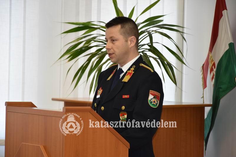 Az ünnepségen Tóth Róbert tűzoltó alezredes mondott beszédet. A mai napon azokra az elődeinkre emlékezünk, akik a polgári védelem területén tevékenykedtek, akik a legszörnyűbb körülmények között is – a humanitárius eszmét szem előtt tartva – dolgoztak és tettek meg mindent a lakosság védelméért – hangsúlyozta a Marcali Katasztrófavédelmi Kirendeltség polgári védelmi felügyelője. Az alezredes kiemelte: a katasztrófavédelmi, polgári védelmi feladatokban nem csupán a hivatásos erők vesznek részt, hanem a civil oldal is, amelynek egyik alapvető elemét a polgári védelmi kötelezettségen alapuló köteles polgári védelmi szervezetek jelentik. Az önkéntesek számának növelésében pedig kiemelt jelentősége van a közösségi szolgálatra illetve a katasztrófavédelmi ifjúsági versenyre jelentkező lelkiismeretes és érdeklődő diákoknak – hangzott el.