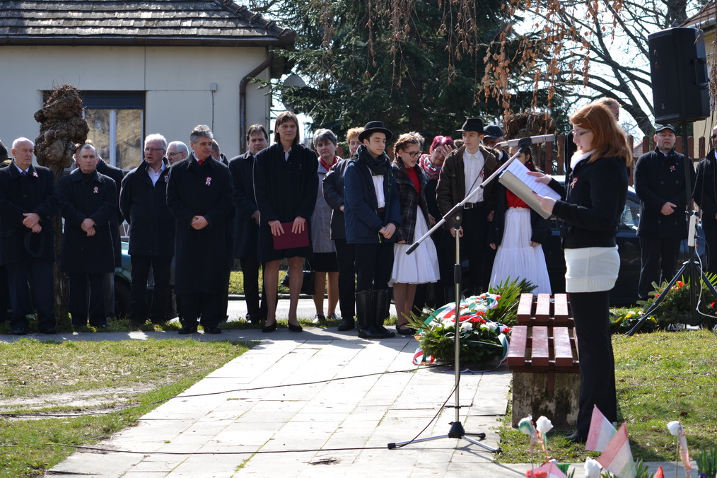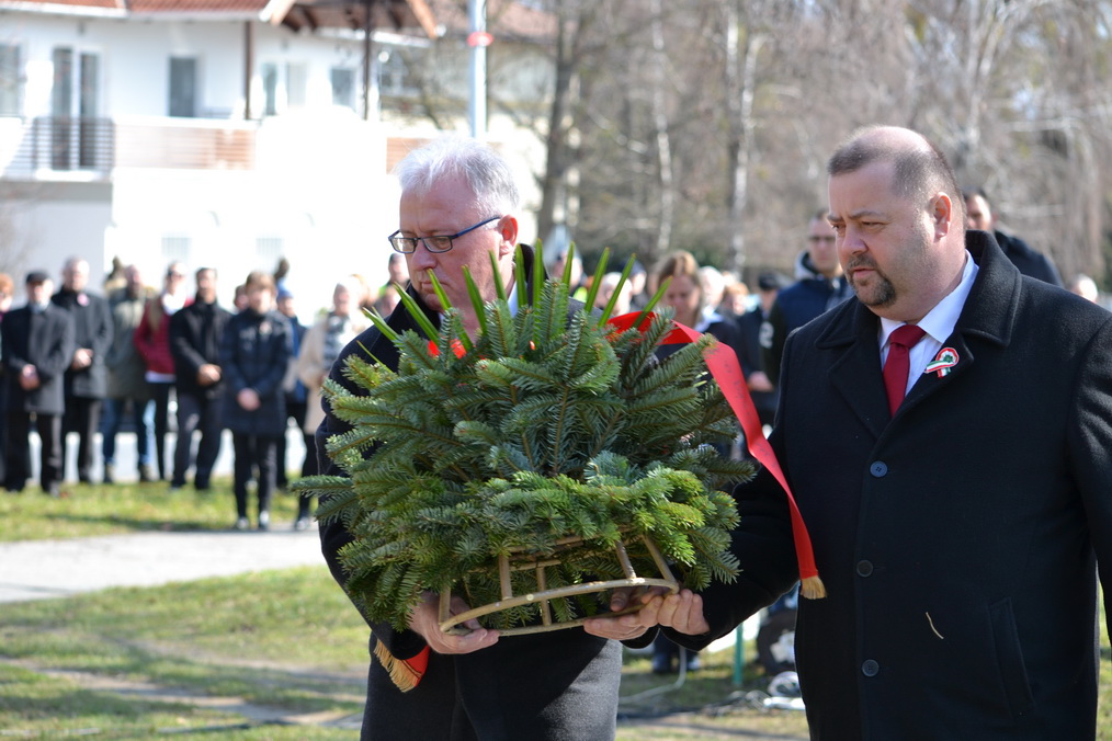 Kerner Krisztina, a Siófoki Szakképzési Centrum Marcali Szakgimnáziumának és Szakközépiskolájának tagintézmény vezetője mondta el gondolatait a 170 éve történt eseményekről. A városvezetés, az intézmények, a civil és politikai pártok képviseletében koszorúkat helyeztek el Noszlopy Gáspár szobránál.