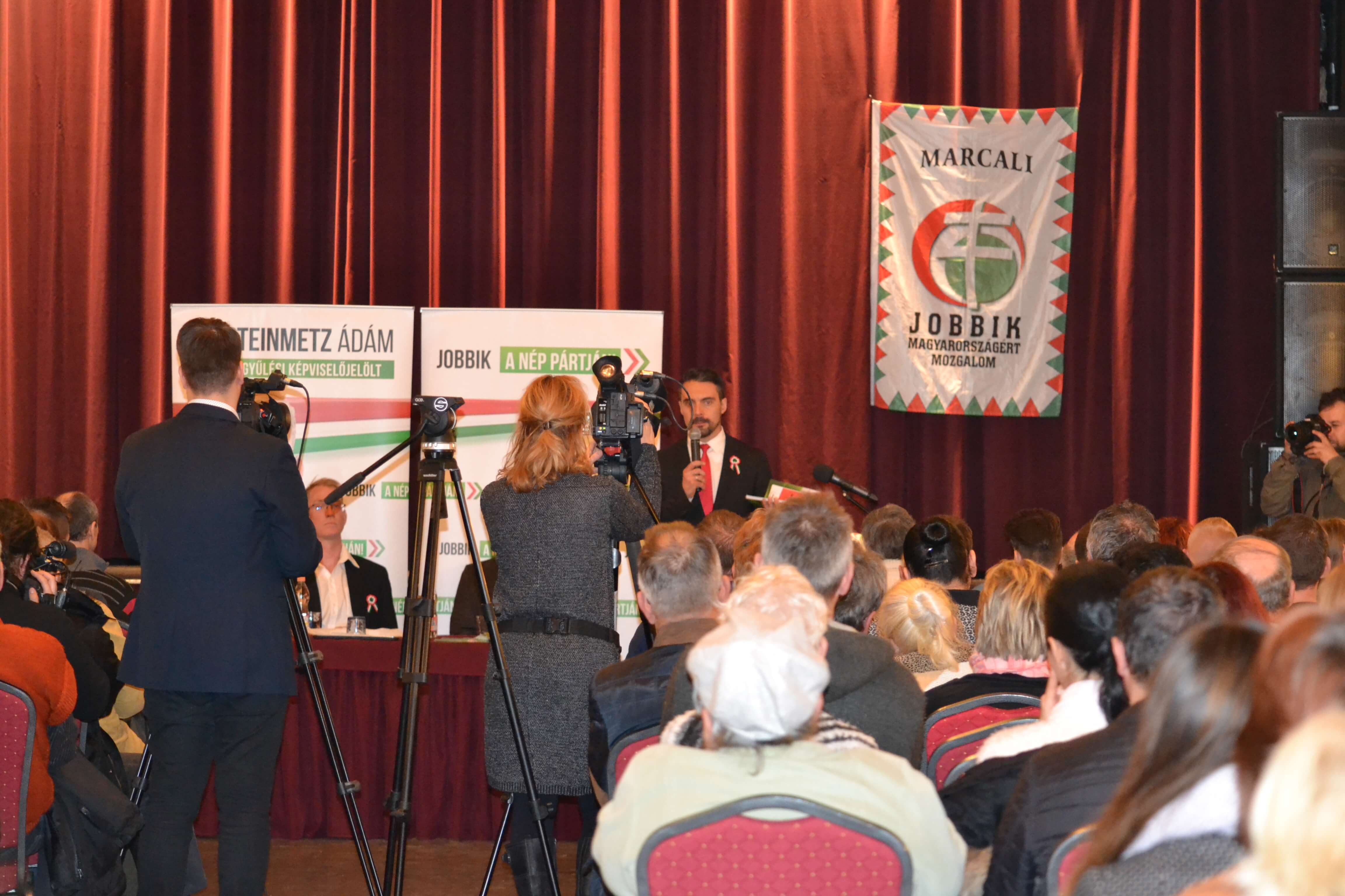 Vona Gábor a Jobbik miniszterelnök jelöltje Somogy megyébe látogatott és programjába illesztette Marcalit is, ahol, a Kulturális Központban Dr. Steinmetz Ádámmal tartott lakossági fórumot.