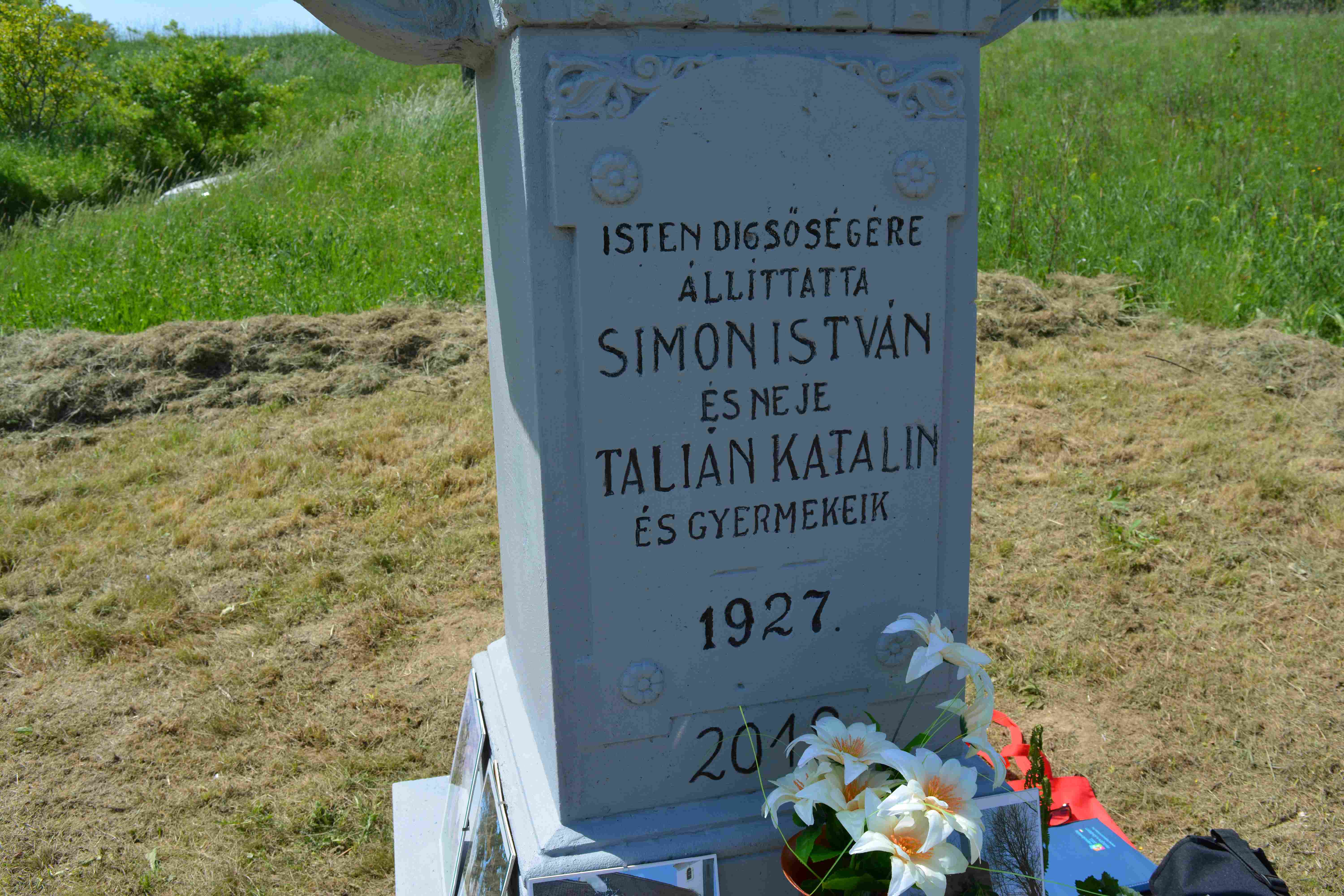 A feliratok tanúsága szerint „Isten dicsőségére állíttatta Simon István és neje Talián Katalin és gyermekeik 1927-ben”. A talapzatra ezen kívül felvésték még a mostani felújítás dátumát, a 2018-as évszámot is. Mai elnevezése onnan ered, hogy Simon István egyik ősét Márónak hívták.