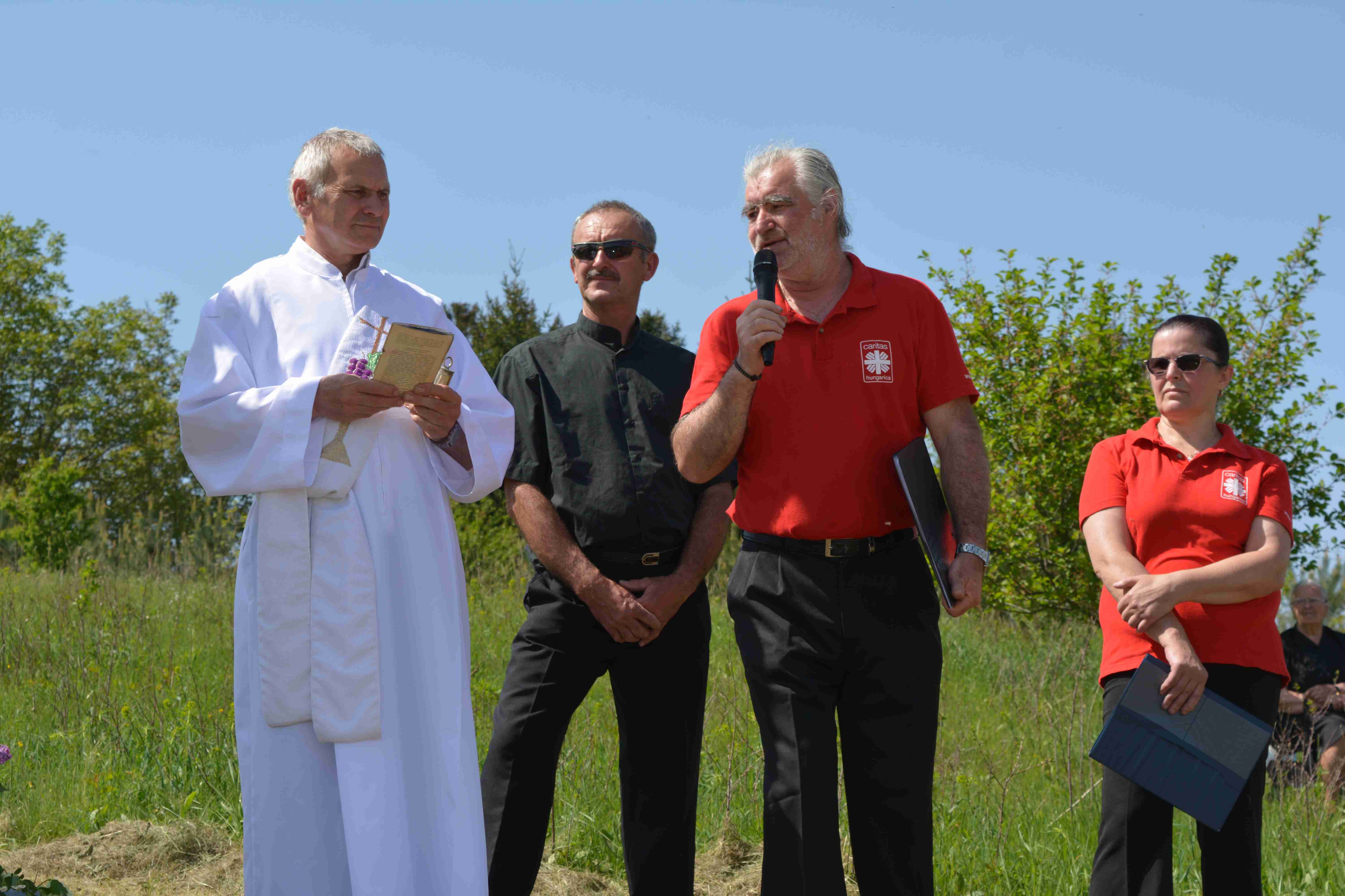A bevezető gondolatokban elhangzott a keresztállítás hagyománya és jelentősége: „Őseink a falvak, az utak szélén kereszteket emeltek egykor. Még ma is megfigyelhetjük, hogy az útszéli keresztek mellett mindig van friss virág, még a ma emberében is él a kereszt iránti hűség és szeretet. A mi feladatunk pedig az, hogy mindezt megőrizzük. A kereszt arra emlékeztet bennünket, hogy szeretet nem létezik fájdalom nélkül. Aki szeretni akar, annak késznek kell lennie a szenvedésre is. És az szeret a legjobban, aki a legtöbbet szenvedi. Isten is a szeretetnek ezt az útját választotta…” A keresztet az egyház történelmében mindig együtt említették a szenvedés vállalásával. Avilai Szent Teréz pedig erről azt mondta: „A kereszt a mi nagy nevelőnk, és ha hiányzik a kereszt az életemből, akkor félek, hogy elfeledkezett rólam az Isten.” Németh Endre pedig hozzátette még, hogy a keresztről, általában mindenkinek a szenvedés jut az eszébe, holott a megváltásnak is ugyanez a jelképe.