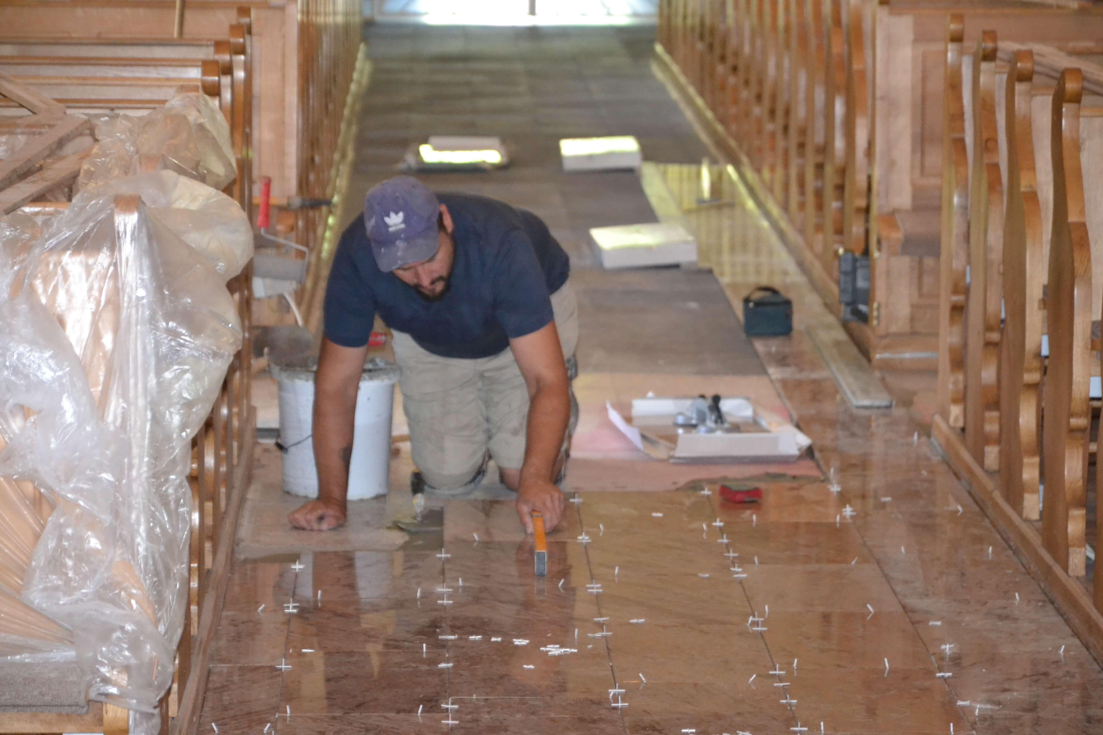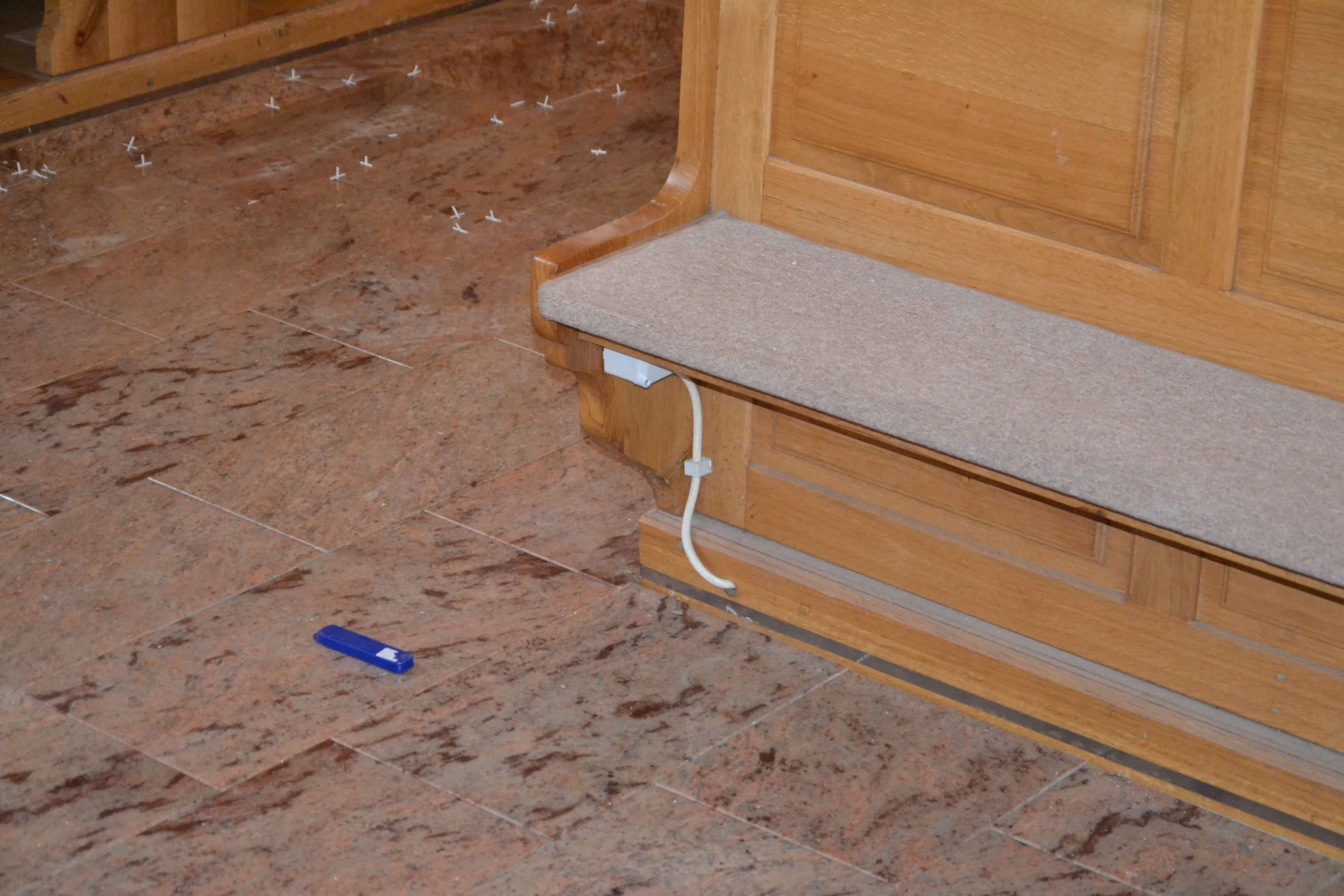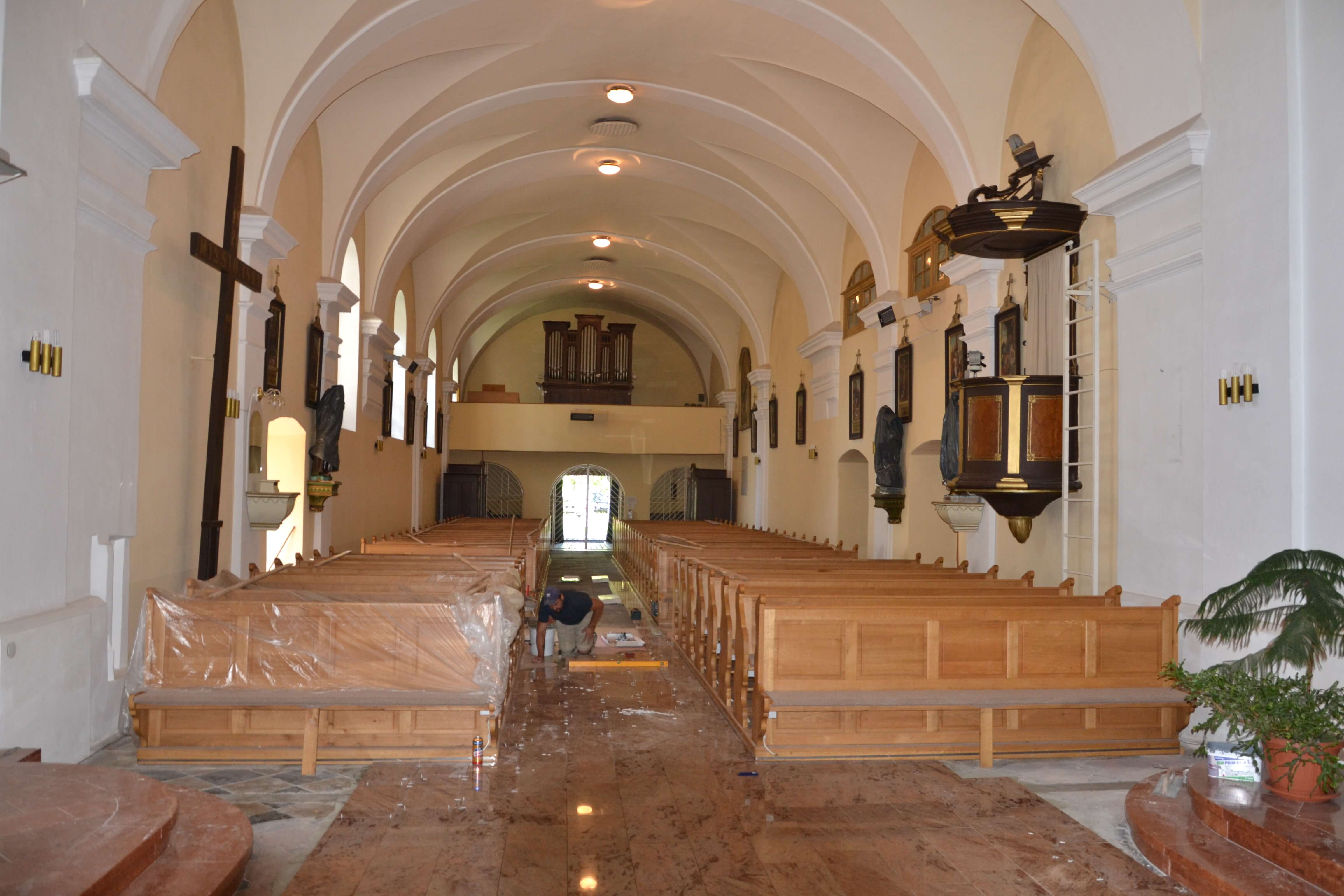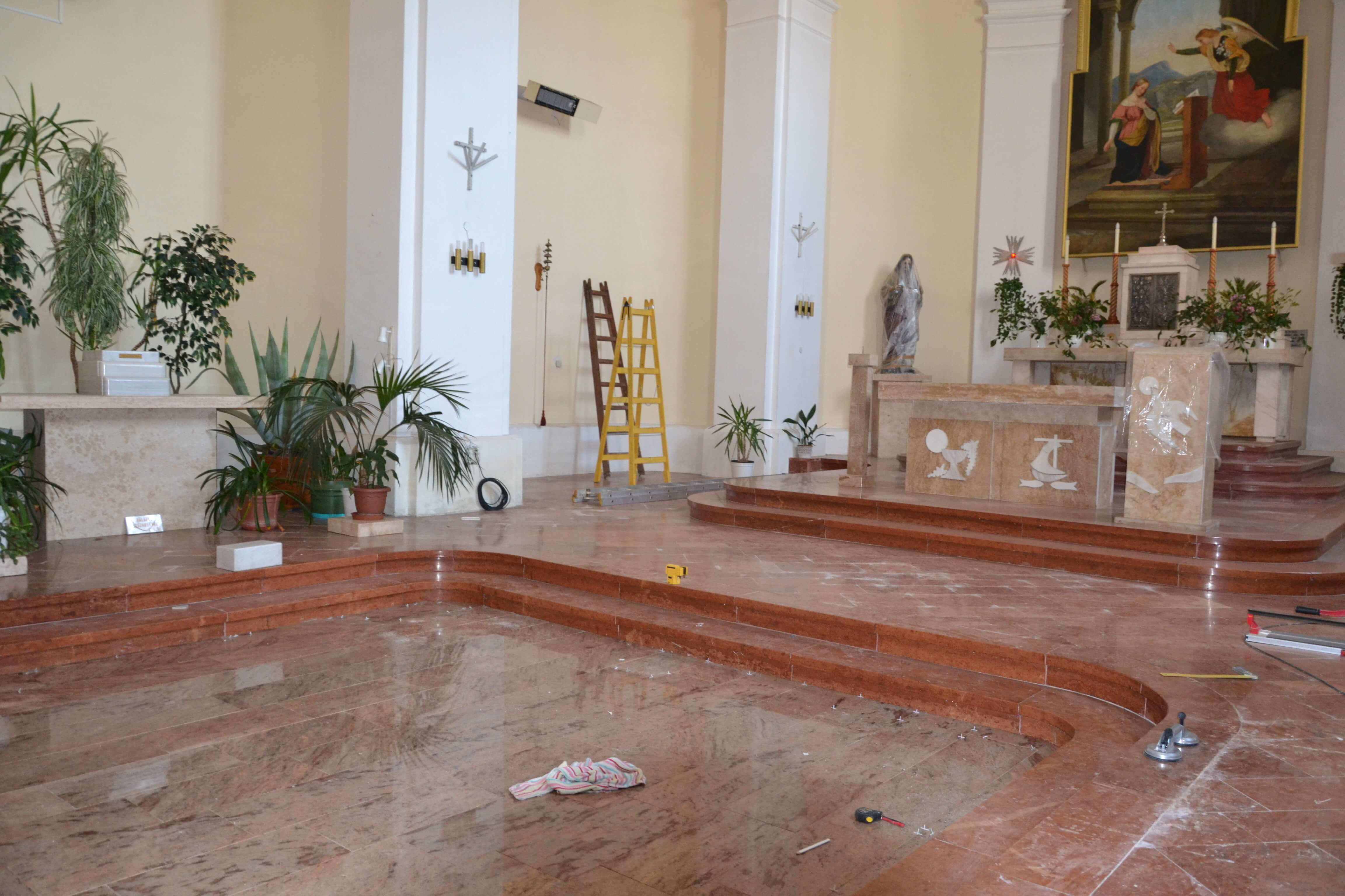 Olasz gránitlapok a plébániatemplomban.