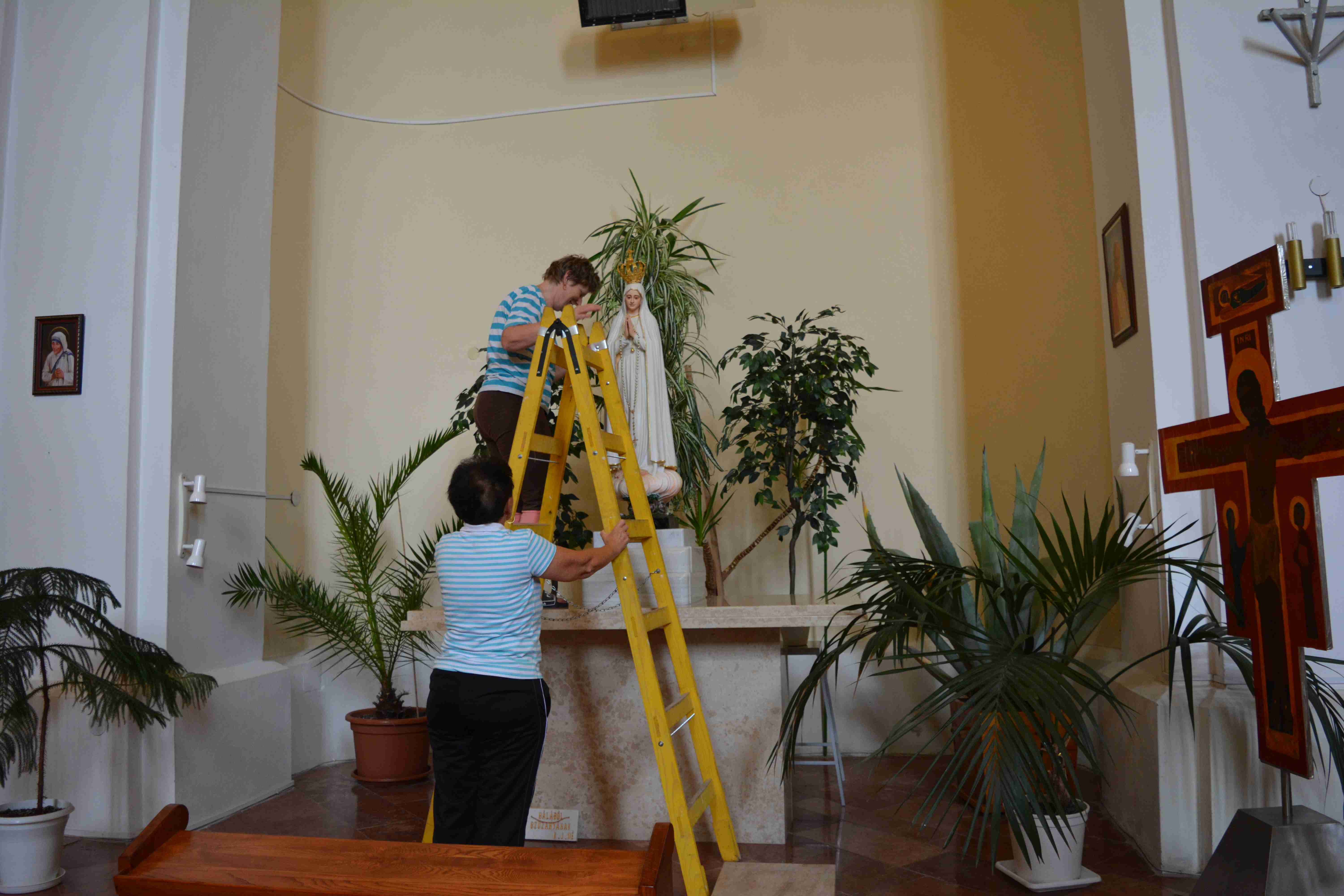Közel három hetes munkákat követően végre elkészült a Gyümölcsoltó Boldogasszony plébániatemplom új padlózata, melyet gránit lapokkal burkoltak. Az imaközösségek és a hívek összefogásával pénteken és szombaton már lezajlottak a takarítási, illetve pakolási folyamatok is, így a július 8-ai vasárnapi 9 órás szentmise már a régi megszokott helyen, de a szépen megújult templomban lett bemutatva Kiss Iván c. prépost, esperes-plébános celebrálásával.