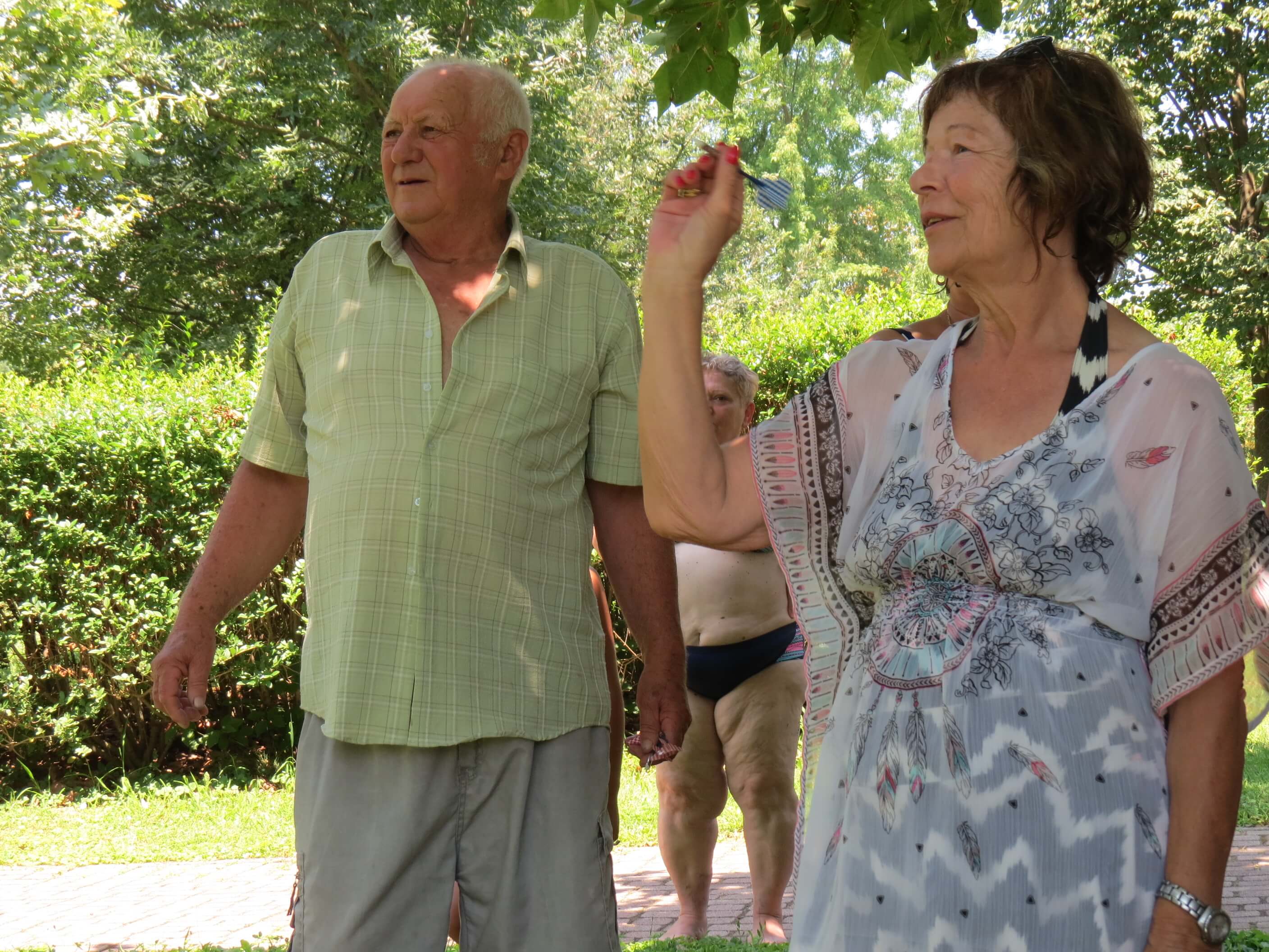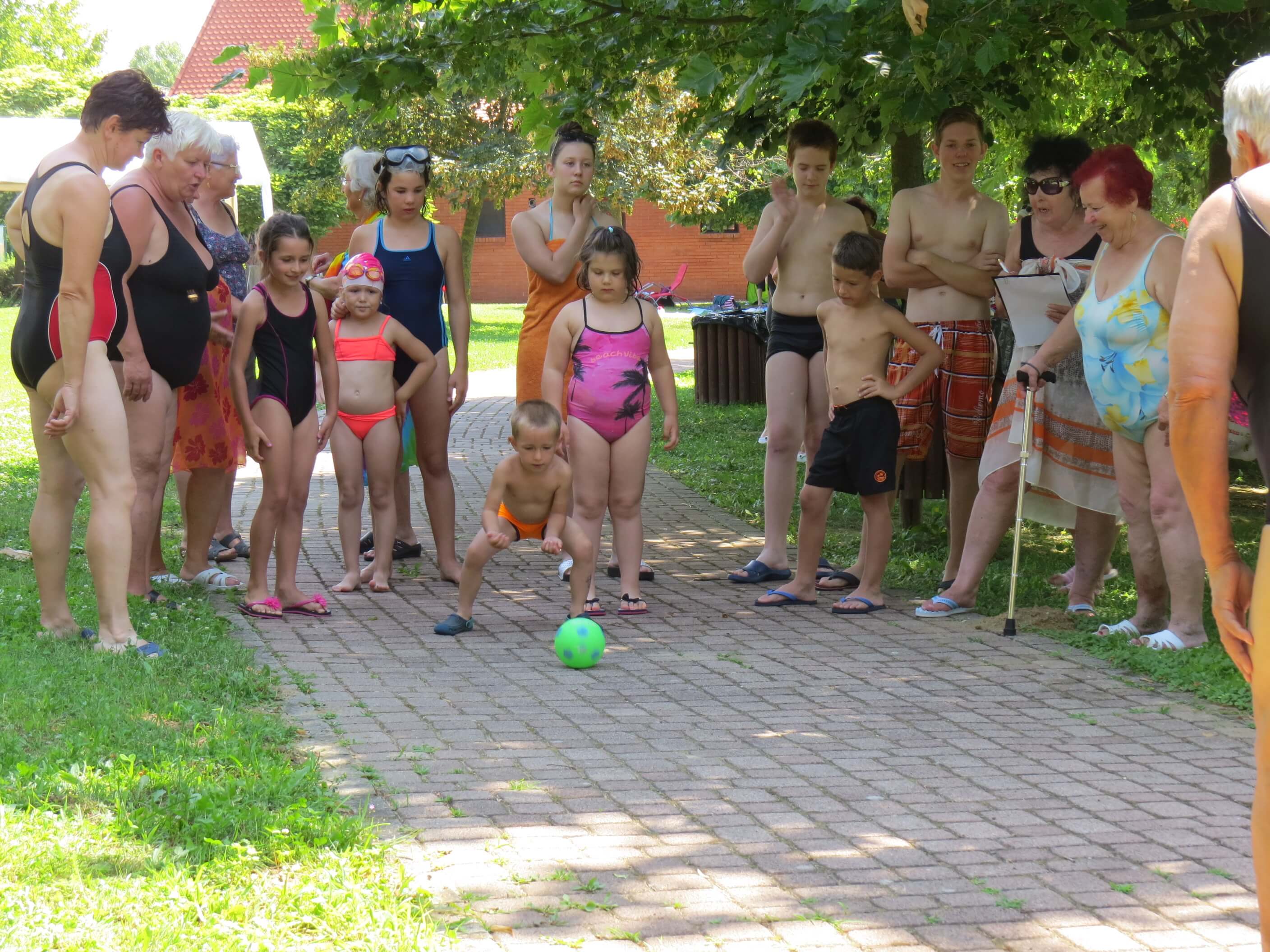 A vidám versengések felnőtt és ifjúsági kategóriában zajlottak. A szabadban rendeztünk labdával célba gurítást, és Darts versenyt. A medencékben mindenki megmutathatta úszás tudományát deszkával és nélküle, különböző technikákkal.