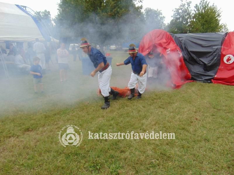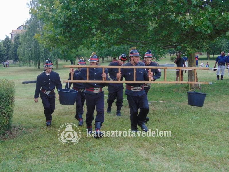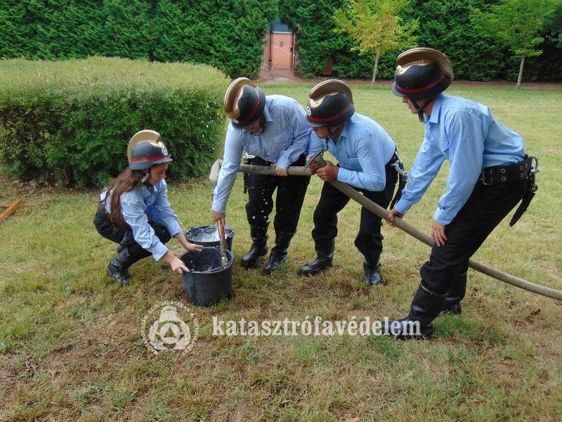 A csapatoknak először egy füsttel teli sátorból kellett kimenteniük egy életnagyságú bábut, majd összehangolt csapatként átkeltek egy képzeletbeli mocsáron. Így jutottak el a kocsifecskendőig, ahonnét vízsugarat szereltek, feltöltöttek két vödröt és azokat egy létra két végére akasztva egyensúlyoztak a célig. Az esemény hangulatát fokozta, hogy a csapatok egy része XIX-XX. század fordulóján használatos tűzoltó egyenruhába öltözve teljesítette a feladatokat.