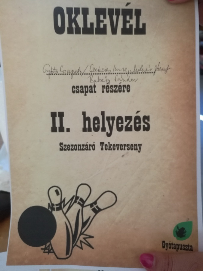 Szombaton ragyogó napsütésben került sor a 2018-as év utolsó tekeversenyére. A gyótai tekézés növekvő népszerűségét mutatja, hogy egyre többen látogatnak ki Gyótára.