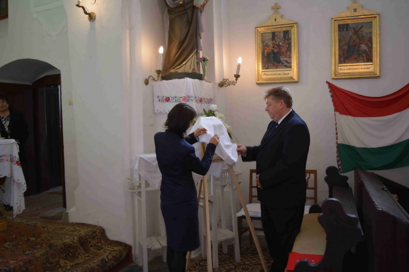 A szentmise végén Huszti Gábor és Fábos-Landi Vivien leleplezték,Galambos Ferenc atyapedig megáldotta az alkotást. Az ünnepség jó hangulatú beszélgetéssel és egy kis vendéglátással zárult.