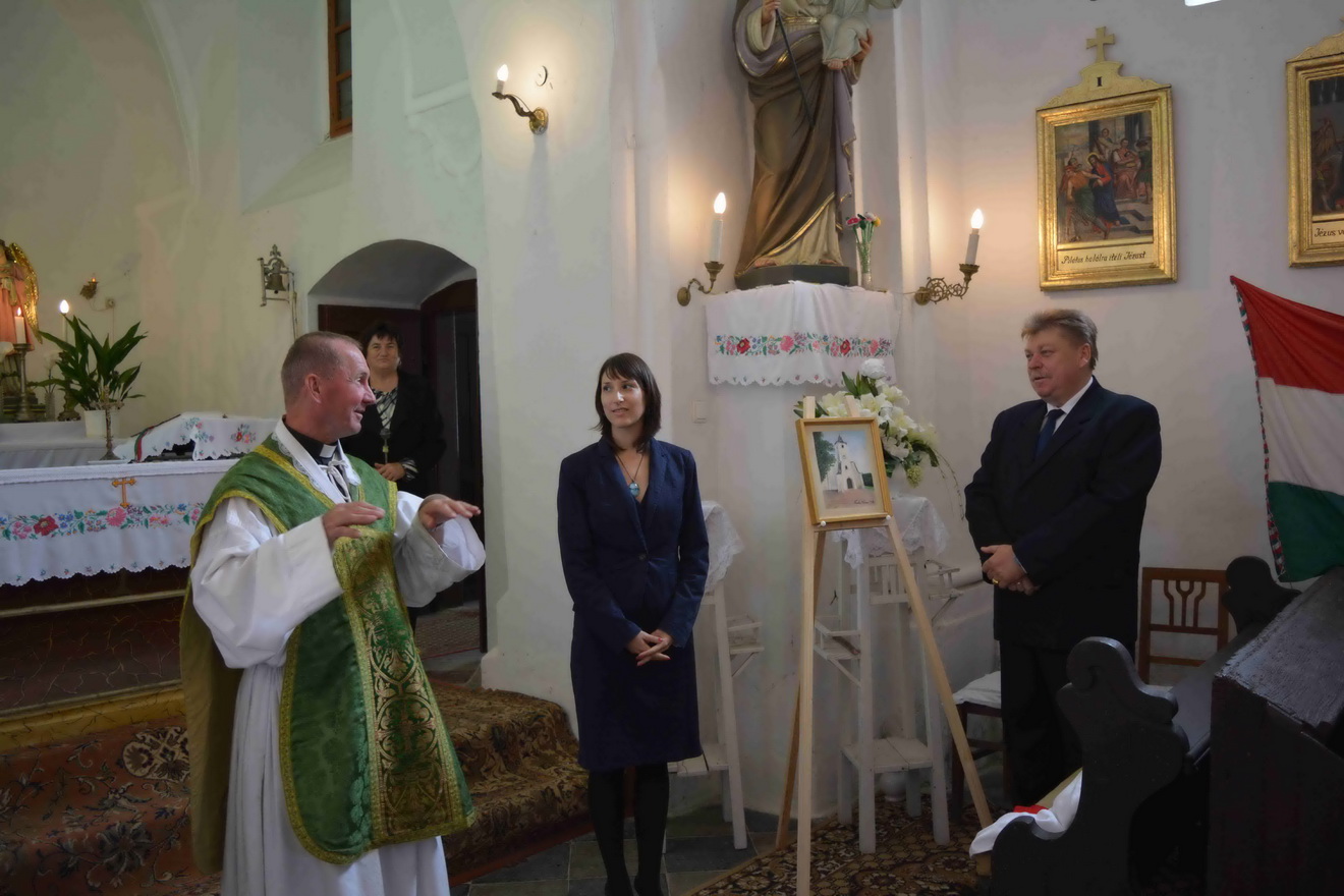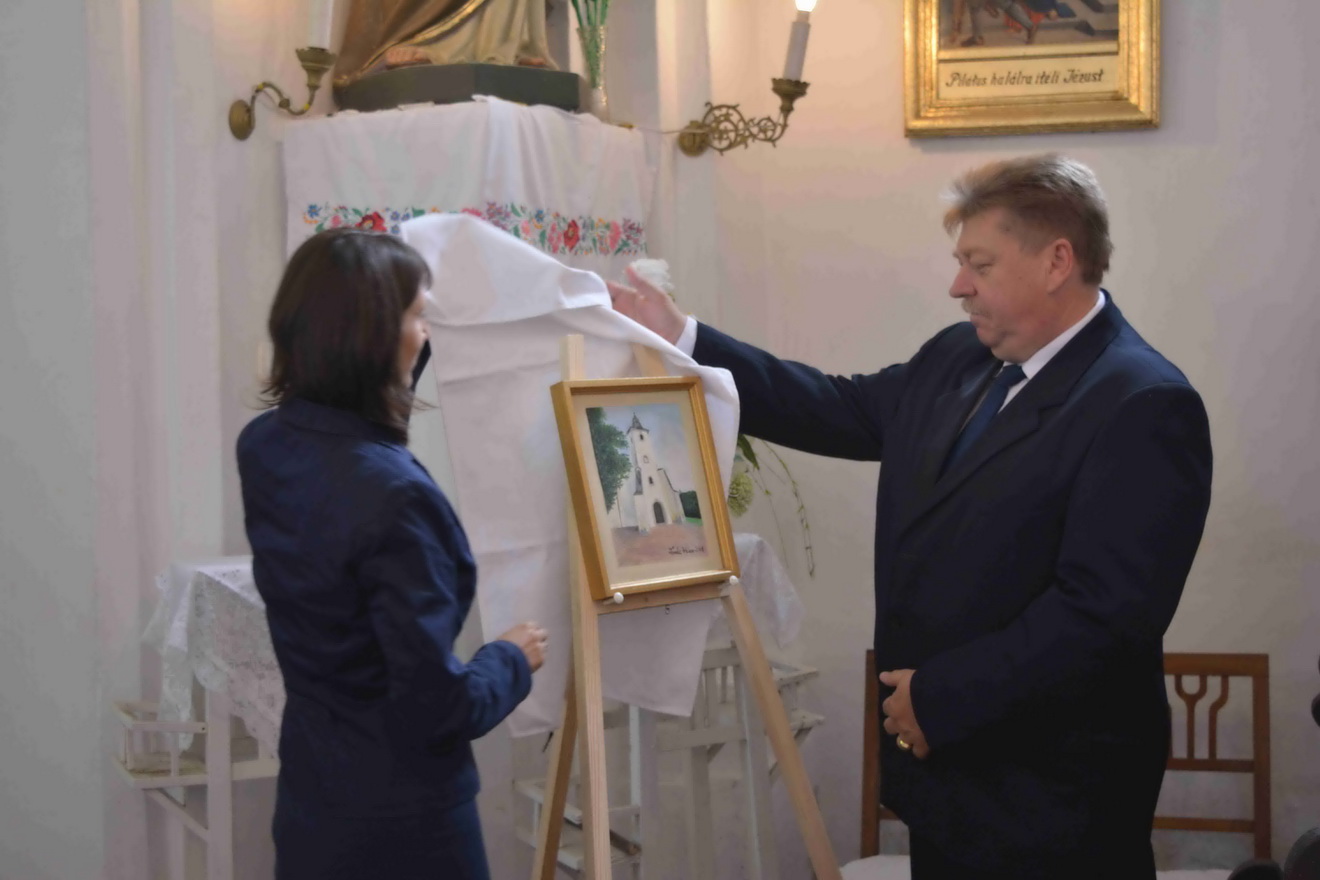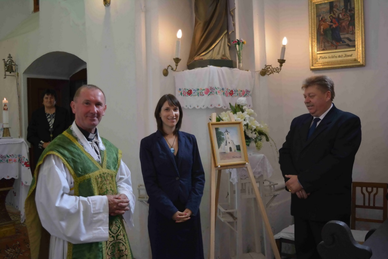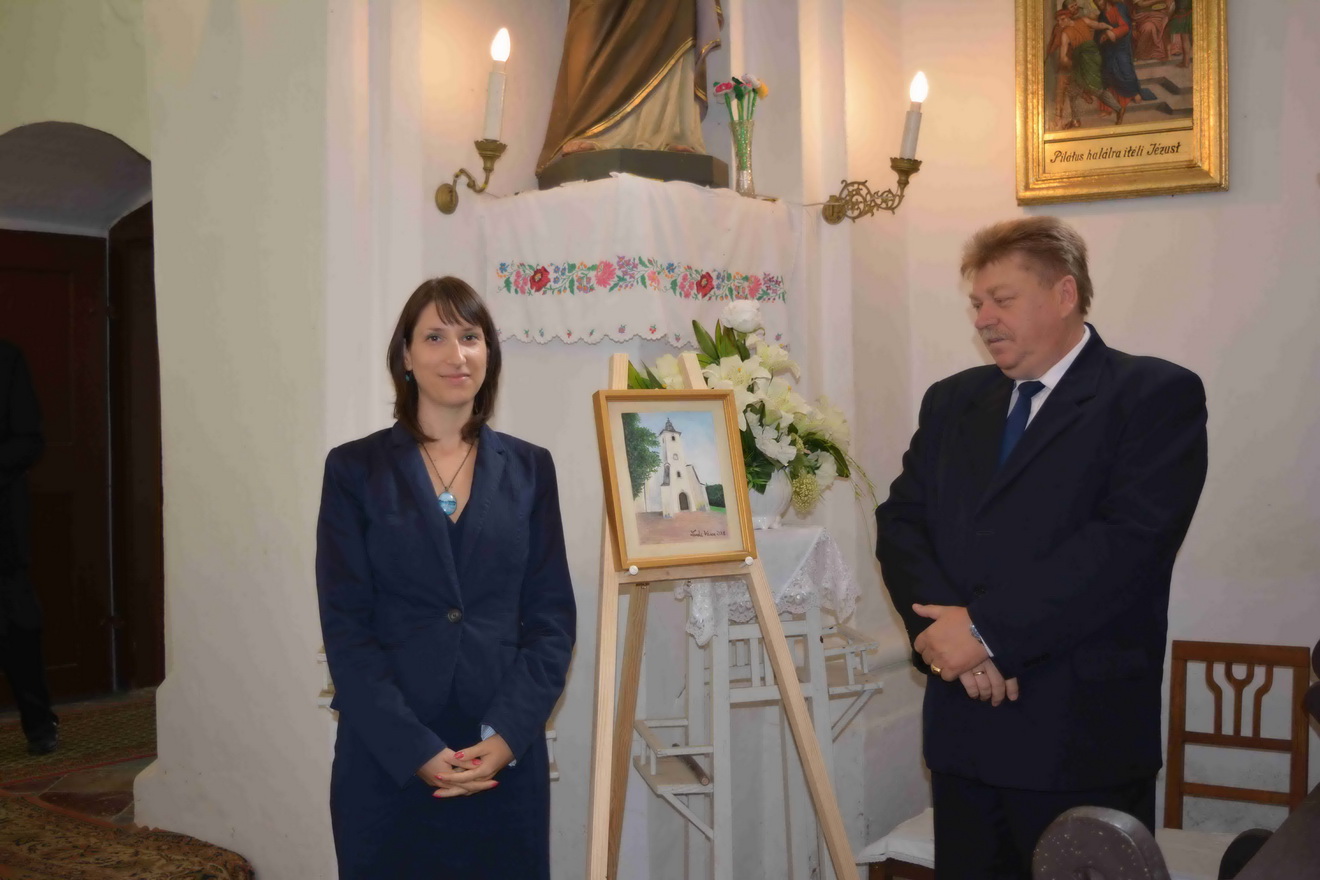 A nagy számban megjelenteket Huszti Gábor, a Somogy Megyei Közgyűlés alelnöke is köszöntötte.Majd beszédében kiemelte, hogy – sokakkal ellentétben – ez a falu képes volt megmaradni a nehéz történelmi időkben is. A gyarapodásra jó példa ez a mostani alkalom is, amikor a fiatal művésznő révén tovább gazdagodhat a kis somogyi közösség.