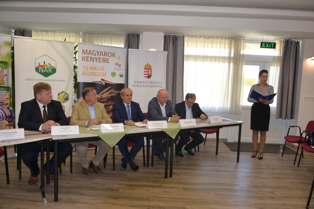 Az agrárgazdasági kamara elnöke köszöntője során ismertette a Magyarok Kenyere Program állomásait és kiemelte a somogyi gazdák, adományozók támogatását. Több mint 10 tonna búza gyűlt össze, amellyel most nemes célt támogattak, hiszen a megye 6 intézménye részesülhetett ezáltal liszt adományban. Ezen kezdeményezéshez csatlakozott a KOMÉTA 99 Ztr. és FINO-FOOD Kft. is, akik hús és sajt készítményekkel járultak hozzá az adományokhoz.