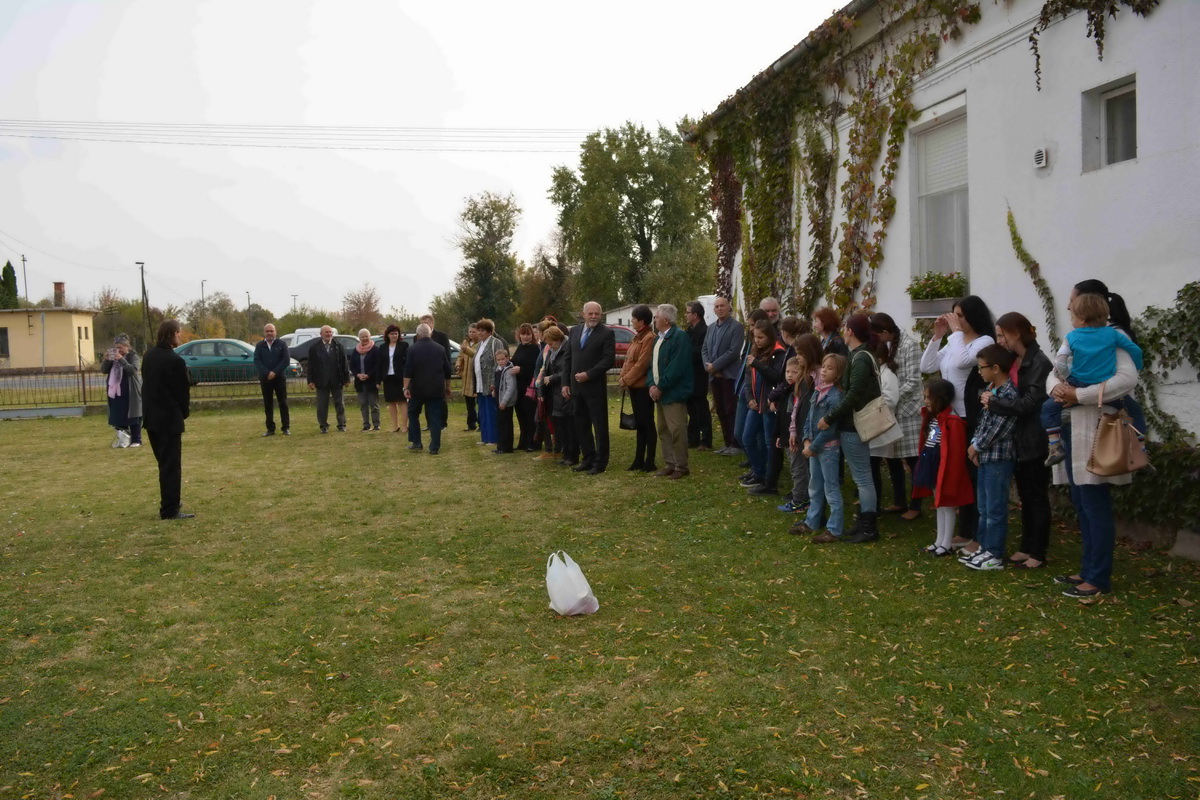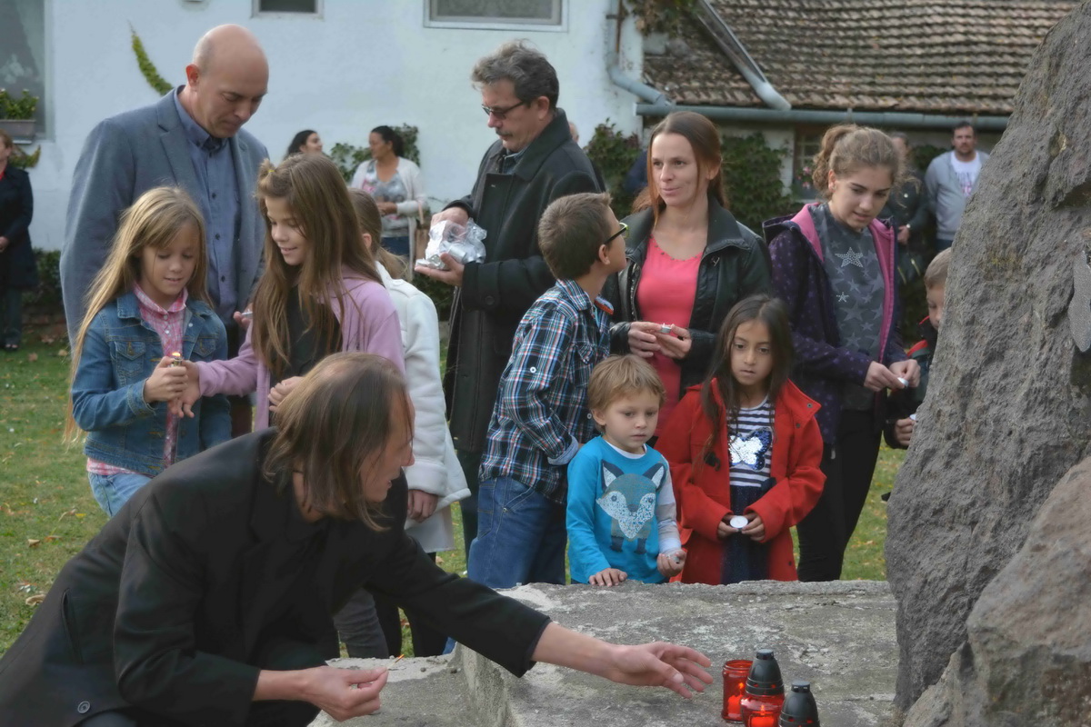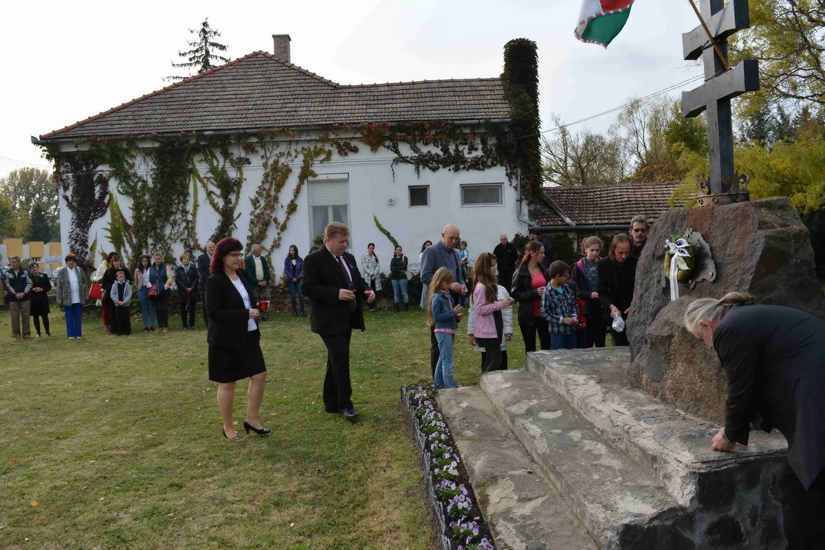 A Himnusz eléneklése után a megjelenteket Szaka Zsolt elnök köszöntötte, majd pedig az egyesület képviseletében Fábos-Landi Vivien és Sziva László helyeztek el koszorút az udvari emlékműnél. Ezután a jelenlévők gyertyákat és mécseseket gyújtottak a mártírok tiszteletére.