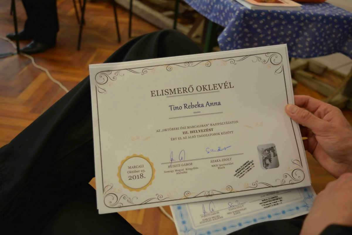 Ezt követően Huszti Gábor, a Somogy Megyei Közgyűlés alelnöke vette át a szót, aki az Ipartestület által meghirdetett „Októberi ősz Marcaliban” című rajzpályázat résztvevőinek köszönte meg az alkotásaikat. Beszédében kiemelte a természeti környezet fontosságát és hívta fel a figyelmet a növényvilág jelentőségére az emberiség életében, melyek ezeken a festményeken is láthatók. Ezen kívül örömét fejezte ki a gyermekeknek, hogy mennyi építészeti emléket, köztük szakrális építményeket örökítettek meg Marcaliban és környékén. Szaka Zsolt elmondta, hogy a zsűrinek nehéz dolga volt a sok, és gyakran kitűnő alkotások válogatása során. Fábos-Landi Vivien festőművész pedig a remekművek technikájáról, színvilágáról mondta el a szükséges tudnivalókat. Összességében elmondható, hogy több tehetséges ifjú diák is található a versenyzők között, akik a jövő ígéretes művészei lehetnek. Végül a várva várt eredményhirdetés következett, amikor is a díjakat Huszti Gábor, Szaka Zsolt és Fábos-Landi Vivien adták át a nyerteseknek és a különdíjasoknak.