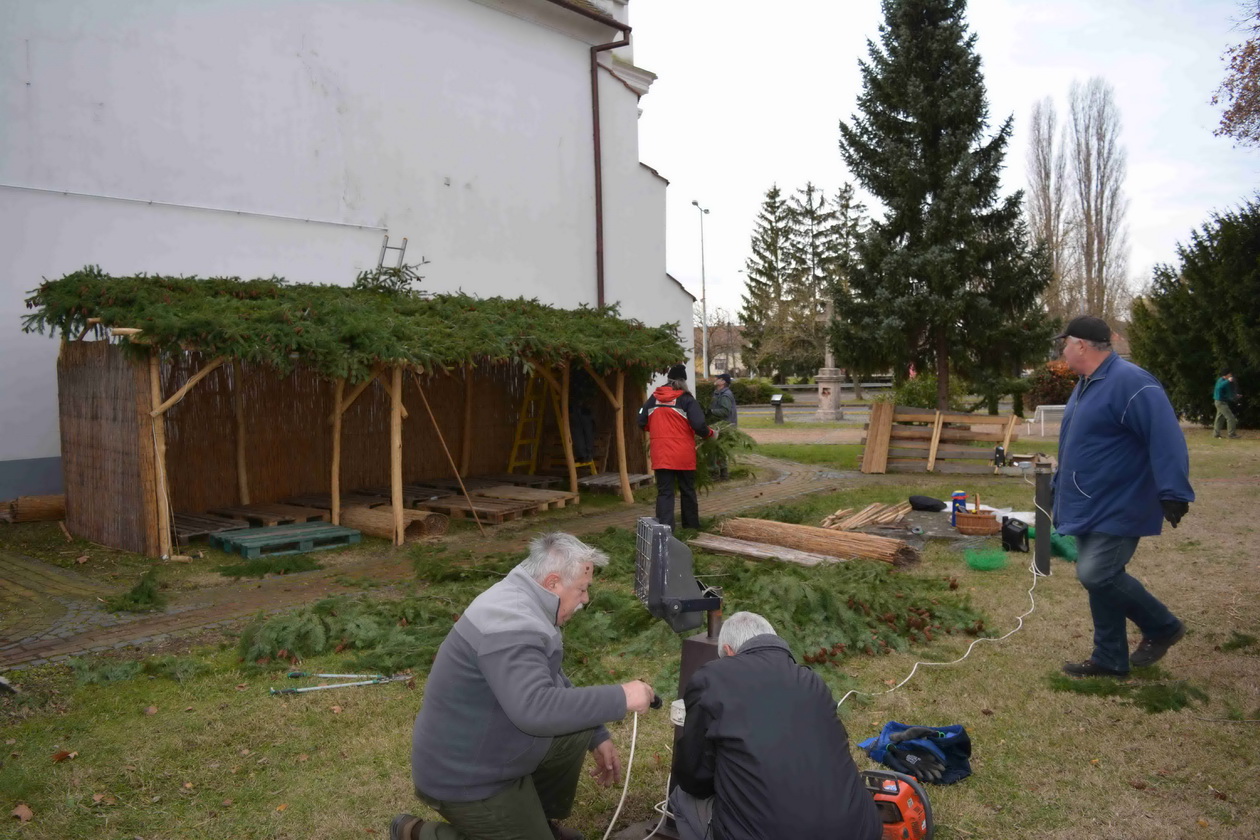 Az esti ádventi gyertyagyújtásra és szentmisére, illetve a Calypso koncertre már minden készen áll. Az ácsmunkákban 5-en, a betlehem építésben pedig összesen 17 fő vett részt.