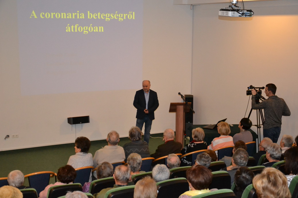 Dr. Horváth Csaba kardiológus előadásán a Kulturális Korzó mozi terme zsúfolásig telt betegekkel és érdeklődőkkel.