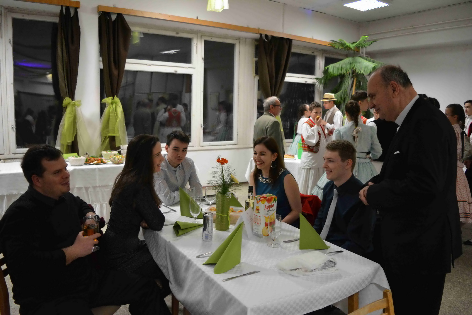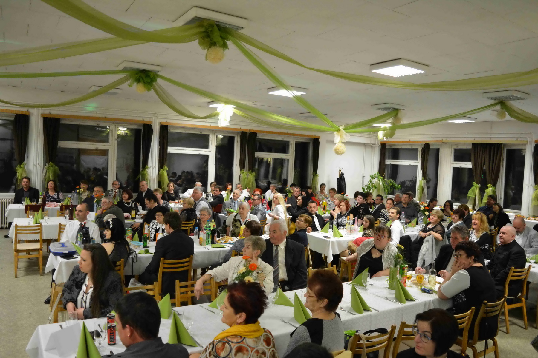 A finom svédasztalos vacsorát követően vidám hangulatban telt el az est további része a különböző asztaltársaságoknál, miközben a változatos és közismert slágerek dallamára sokak táncra perdültek. A vigasság végül hajnalig tartott.