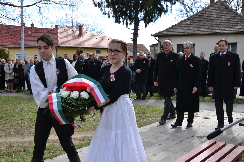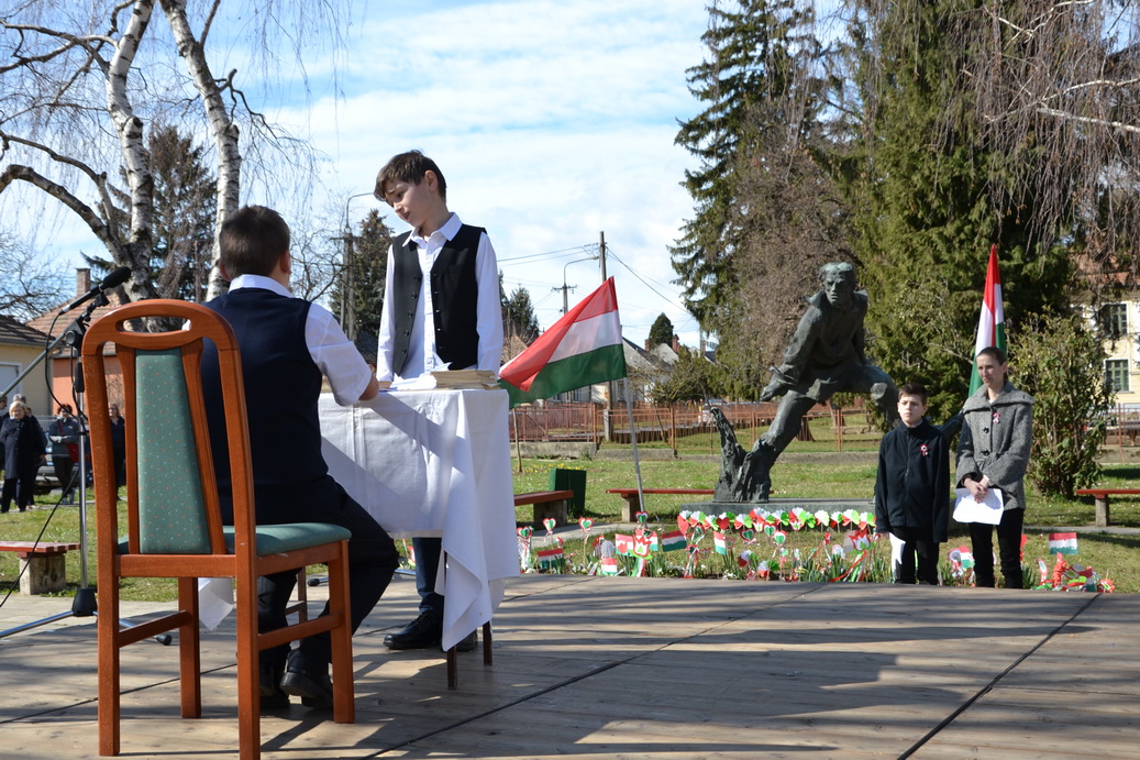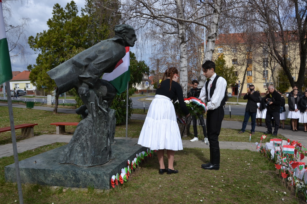 Az ünnepség Tóth Ágoston szobránál folytatódott, ahol a megemlékezés szavai után a Bajtársi dalárda közreműködésével emlékeztek meg a 48-as honvédekről.