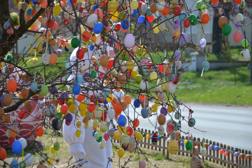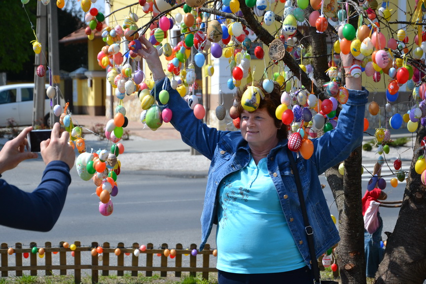Két napon át díszítették a kéthelyi tojásfát a helybéliek a település központjában az elmúlt hét végén. A közel kilencezer tojás felhelyezése önmagában is időigényes feladat és bár szorgos kezekből nem volt hiány, az érkező eső késleltette a befejezést. Idén újdonságokkal is várják a látogatókat, a húsvéti ünnepkört jótékonykodással kötik össze Kéthelyen.