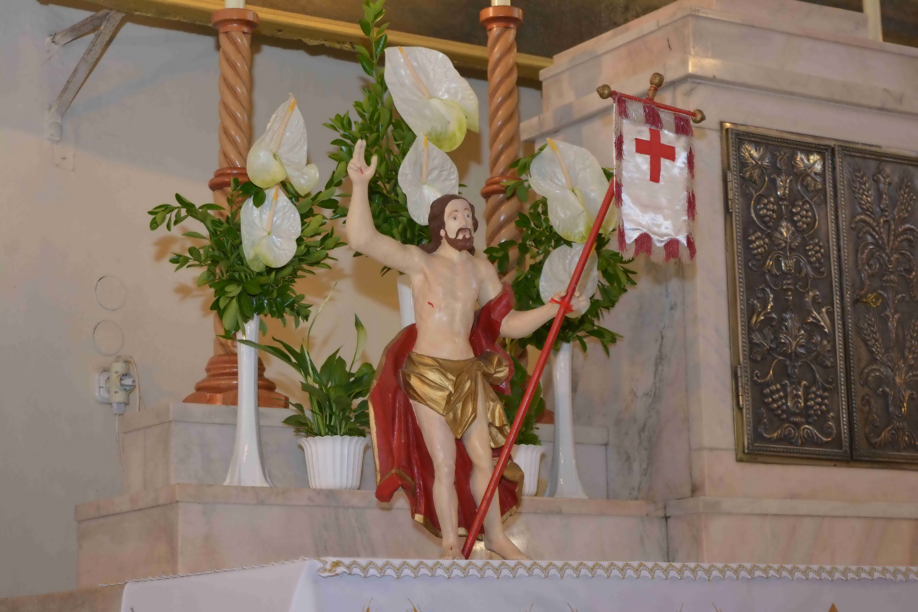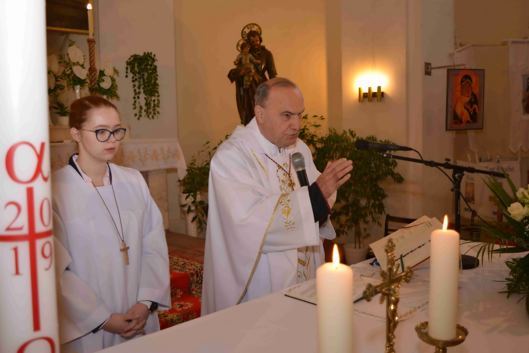 A szentmise végén Iván atya a templom bejáratánál személyesen kívánt mindenkinek áldott, boldog húsvéti ünnepeket, miközben Gelencsér Róbert világi elnök és Király Jenő templomatya a Marcali Katolikus Újság húsvéti számával örvendeztette meg a jelenlévőket.