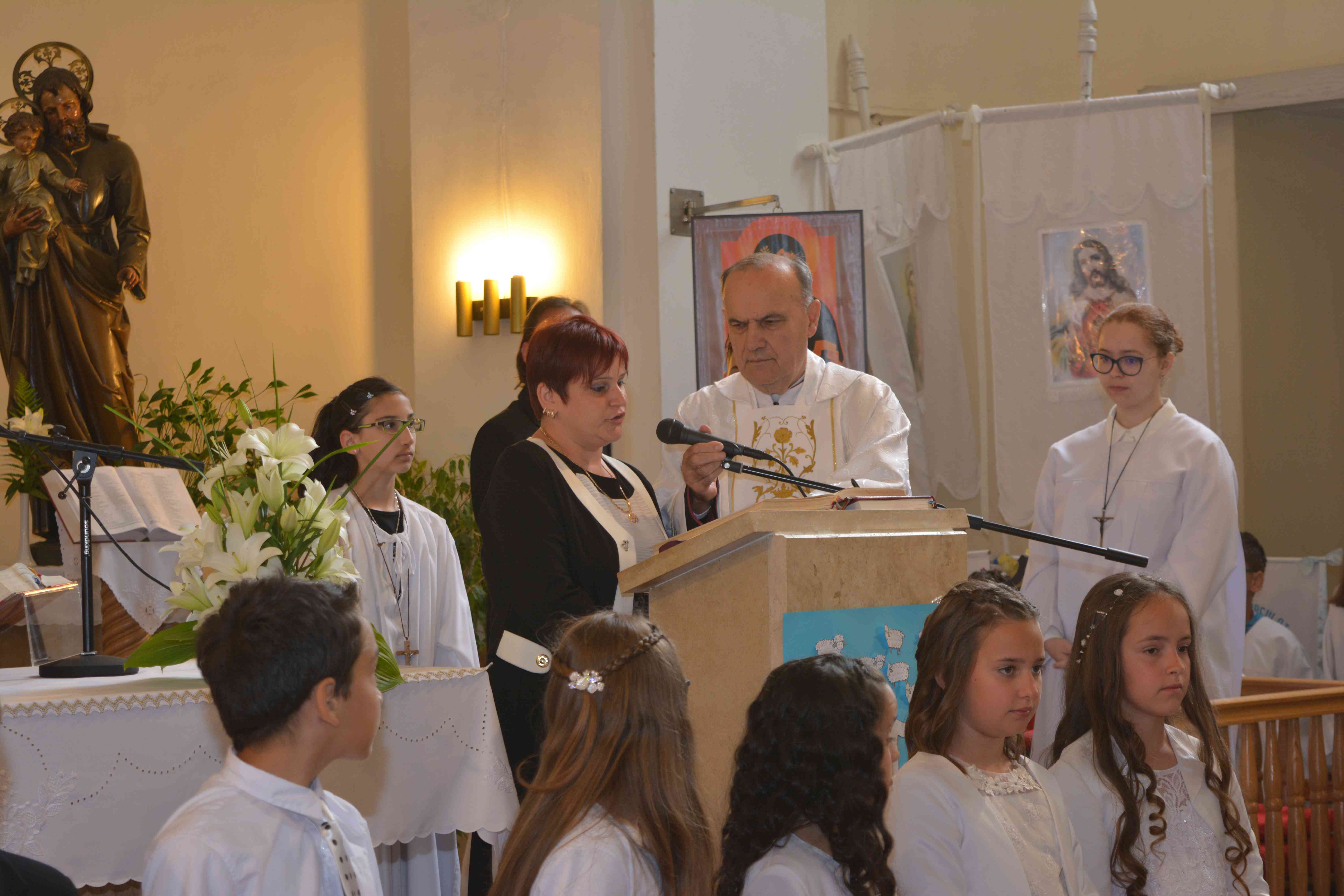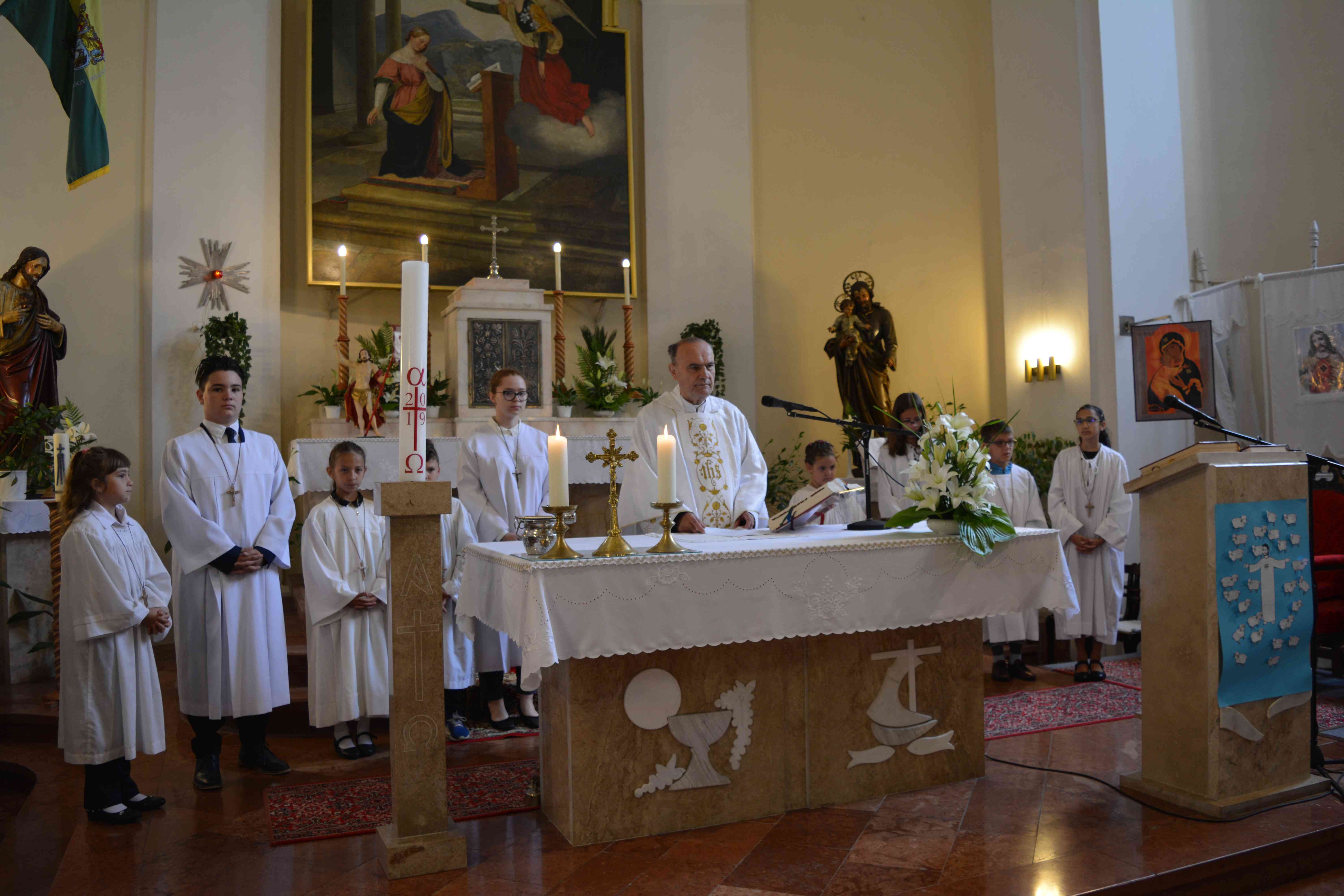 2019. június 2-án, vasárnap, Urunk mennybemenetelének ünnepén, a 9 órás szentmisén 26 hittanos gyermek először áldozott a Marcali Gyümölcsoltó Boldogasszony plébániatemplomban.
