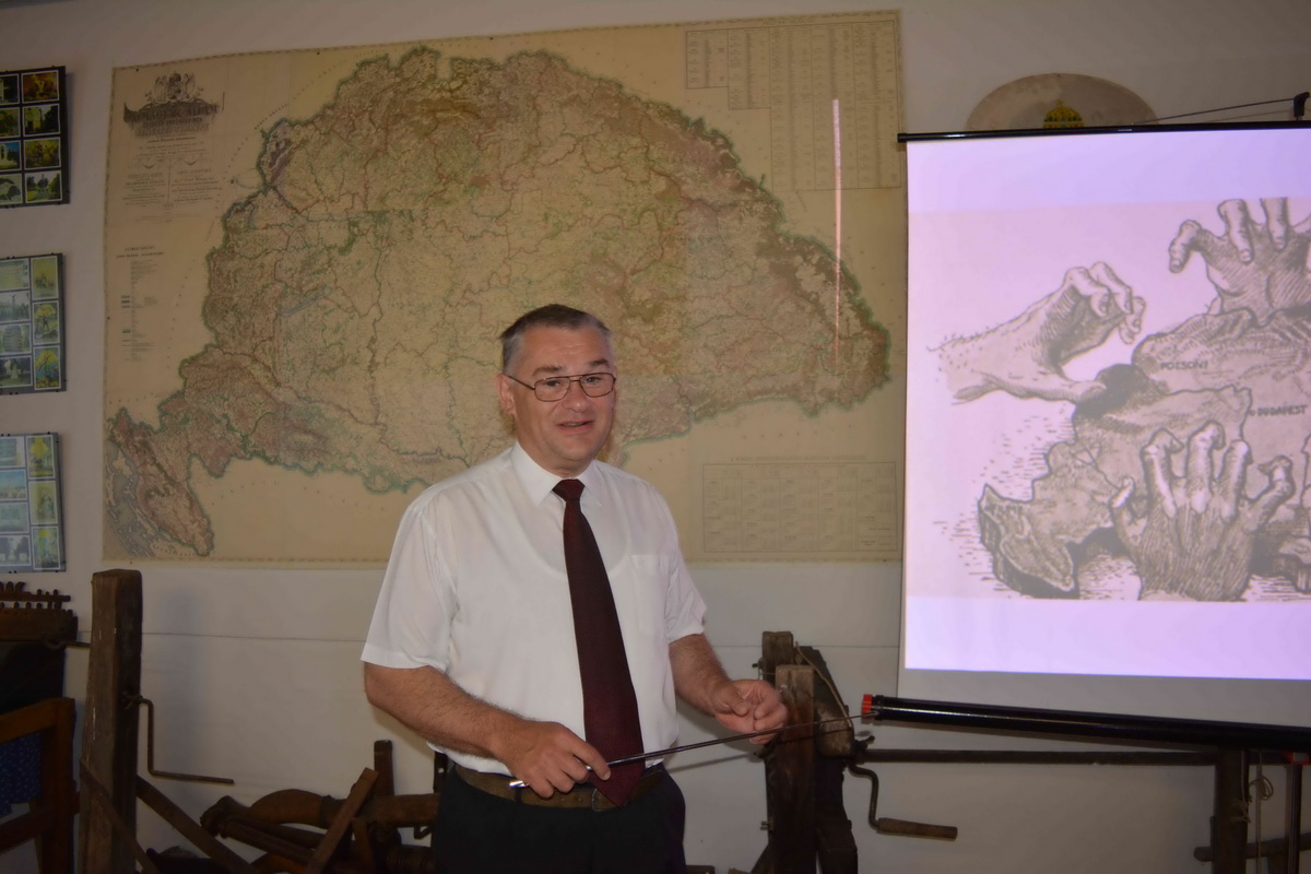 A program ezután a székházban folytatódott tovább, ahol Forgó Ferenc beszélt erről a sorsfordító tragédiáról, az első világháború végi katonai-politikai eseményekről, miközben nemcsak a magyar vonatkozásait említette, hanem nemzetközi kitekintést is tett. A vetített képes előadáson felelevenítette a korabeli eseményeket, valamint vázolta a békediktátum napjainkig tartó következményeit.