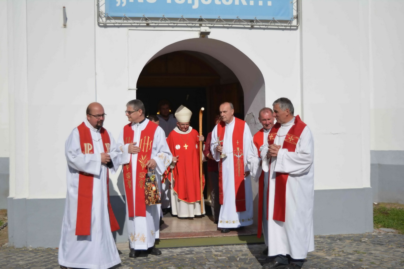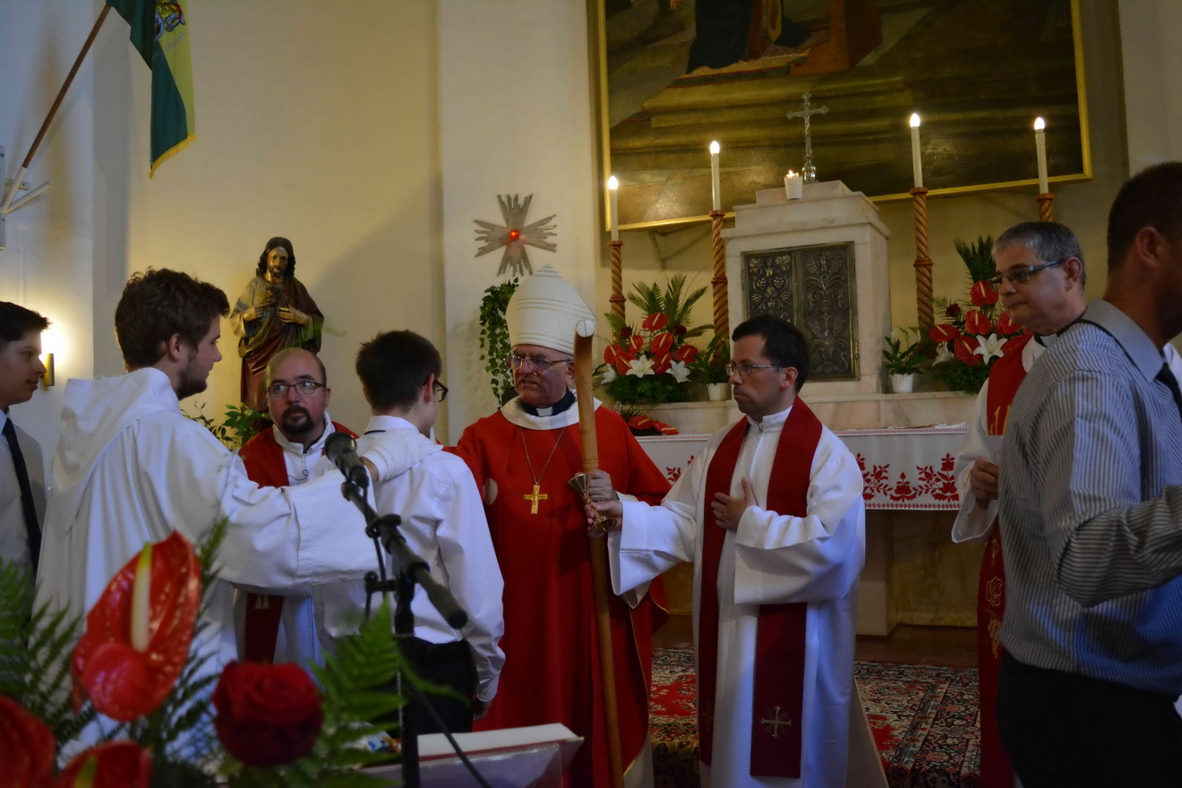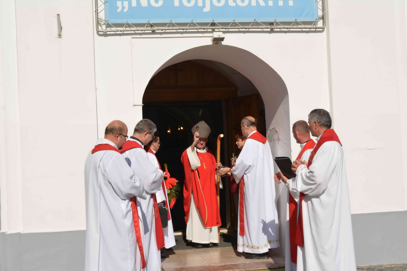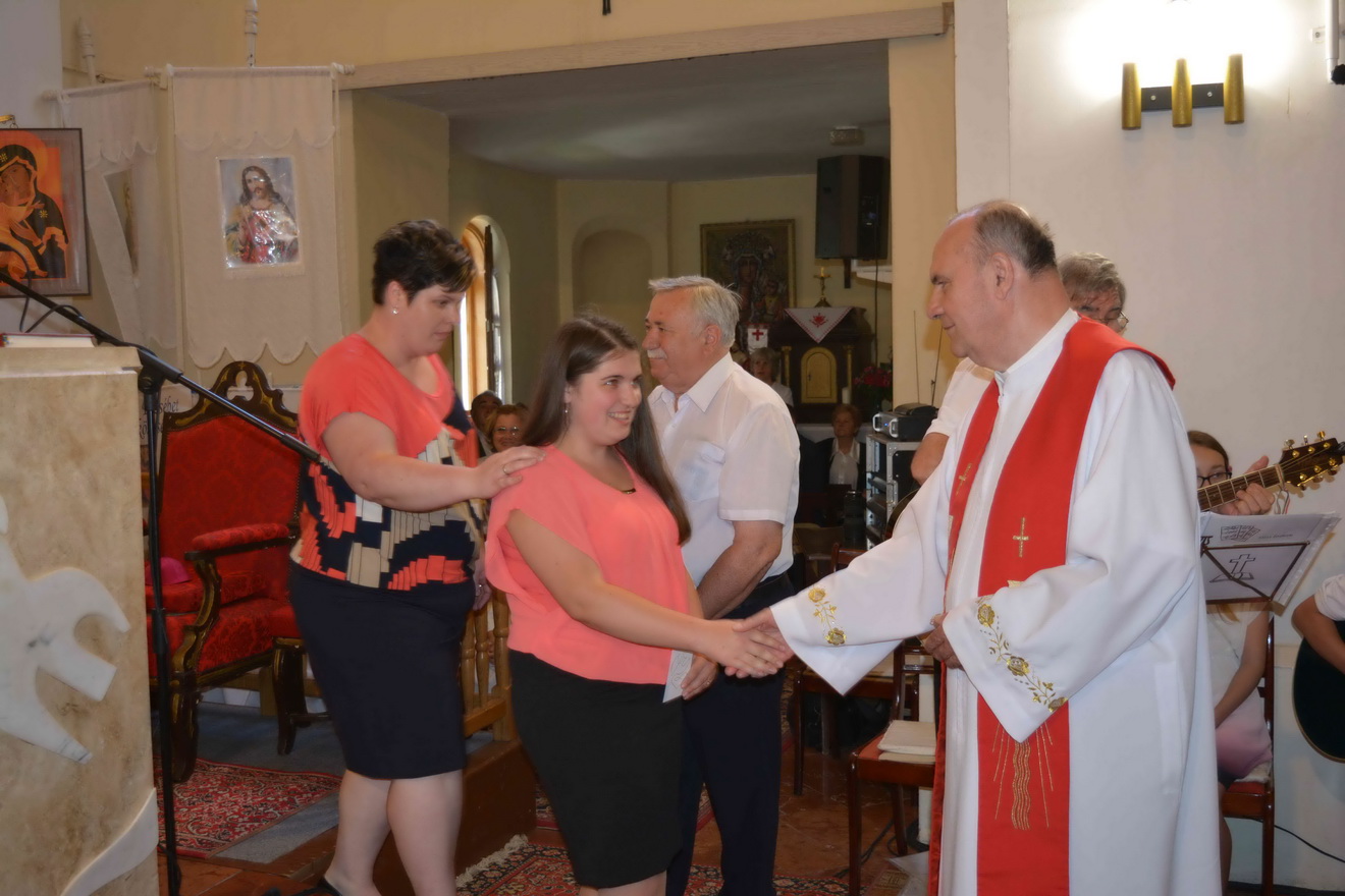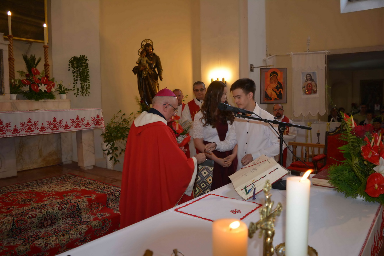 A püspök urat az egyházközség nevében Király Róbert képviselő testületi tag és felesége köszöntötték. A bérmálkozók nevében pedig Tóth Eszter Ágnes és Mali Gergő nyújtottak át ajándékokat és kérték a megyésfőpásztort, hogy részesítse őket kegyelemben e meghatározó szentség vétele által.