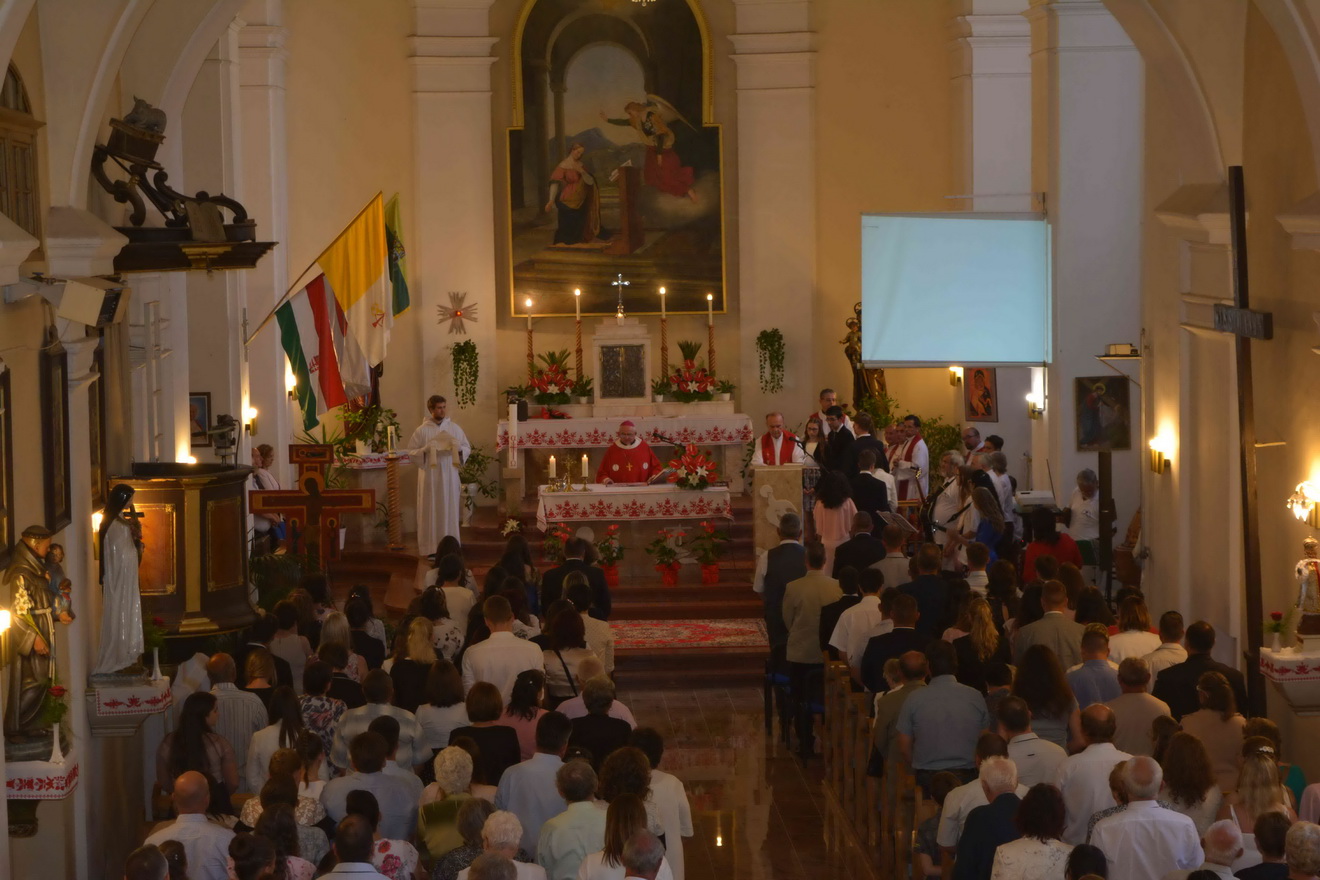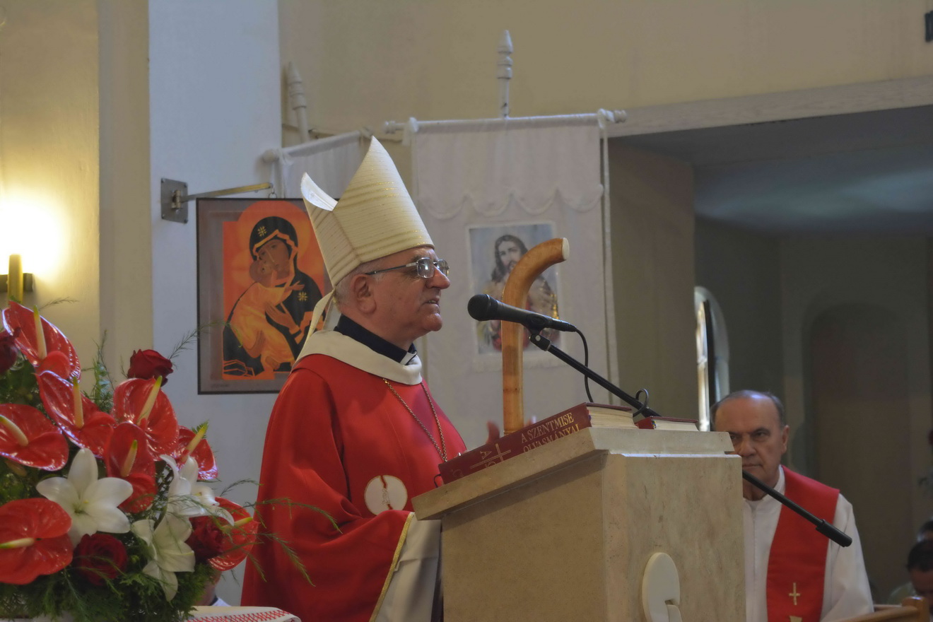 A bérmálásra készülőket Kiss Iván c. prépost, esperes-plébános mutatta be Varga László püspöknek, aki ismételten örömmel jött Marcaliba, hogy a 28 hittanost és a 4 felnőttet megbérmálja. Szentbeszédében az ünnep jelentőségéről, a Szentlélek eljöveteléről osztotta meg gondolatait a jelenlévőknek.