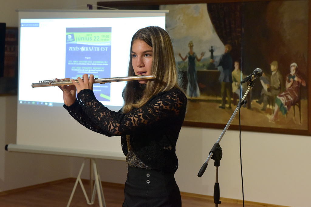 Az előadások és a vetítés között a Marcali Hidas Frigyes Zeneiskola növendékei: Király Júlia zongorán (felkészítő tanára: Krishtop Pavel), Cseh Erik furulyán (felkészítő tanára: Török Ferenc) és Vincze Fanni fuvolán (felkészítő tanára: Sasfalvi Gábor) muzsikált. Zongorán Krishtop Pavel kísérte a tehetséges fiatalokat. Köszönet illeti a tehetséges ifjú zenészeket és tanáraikat, hogy színvonalas előadásukkal gazdagították műsorunkat.