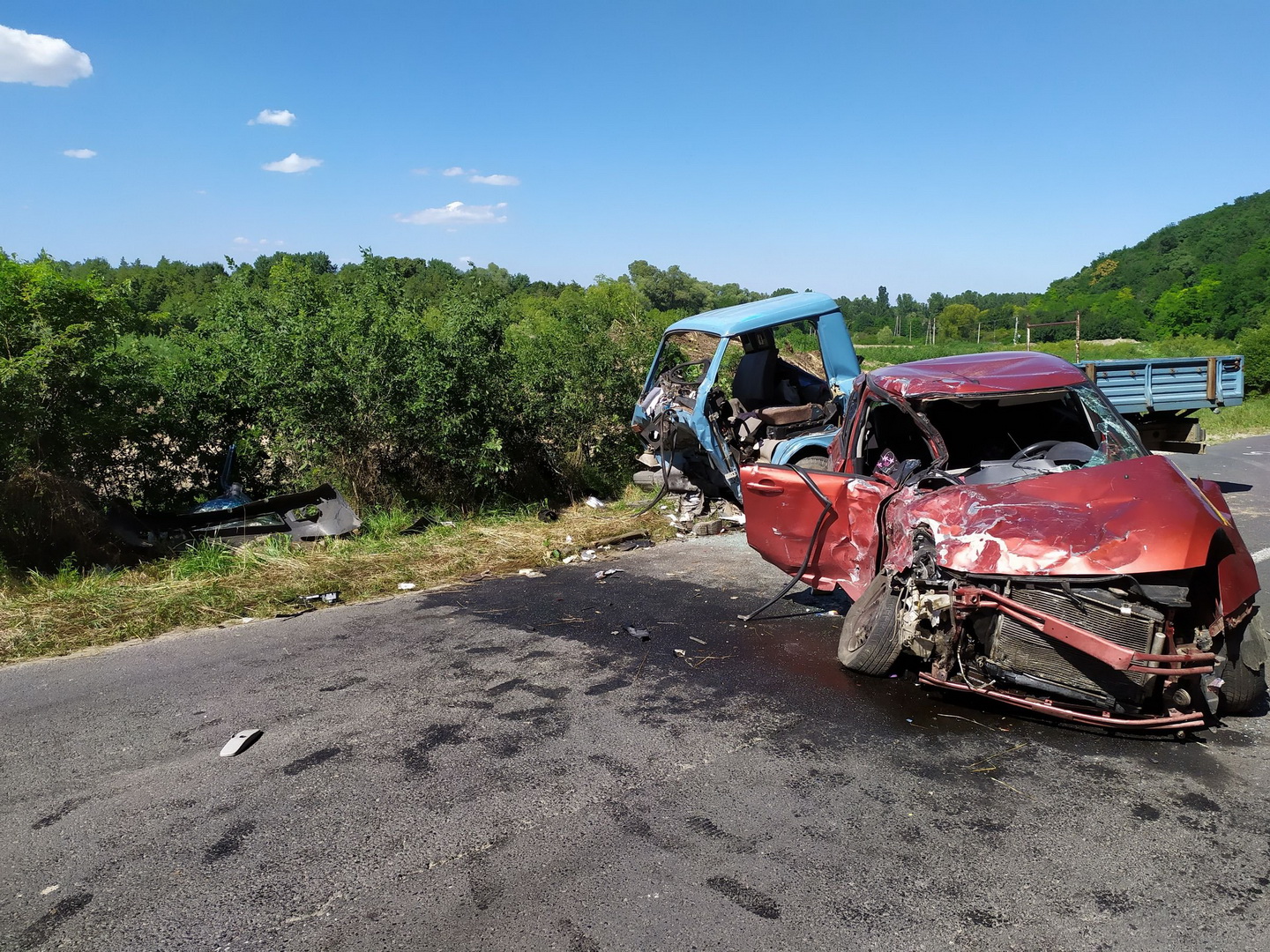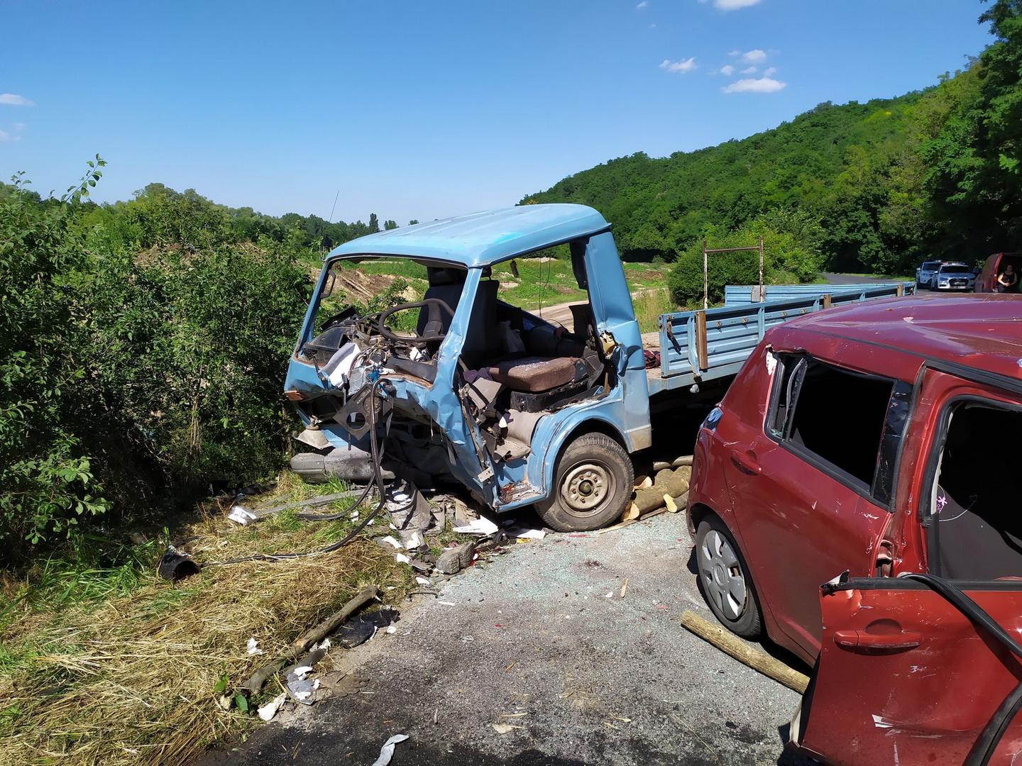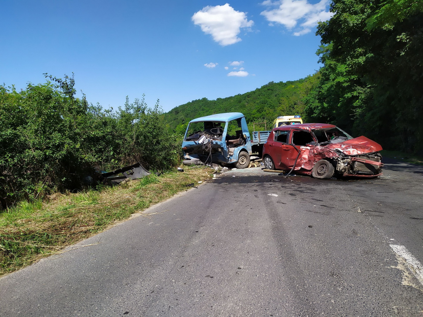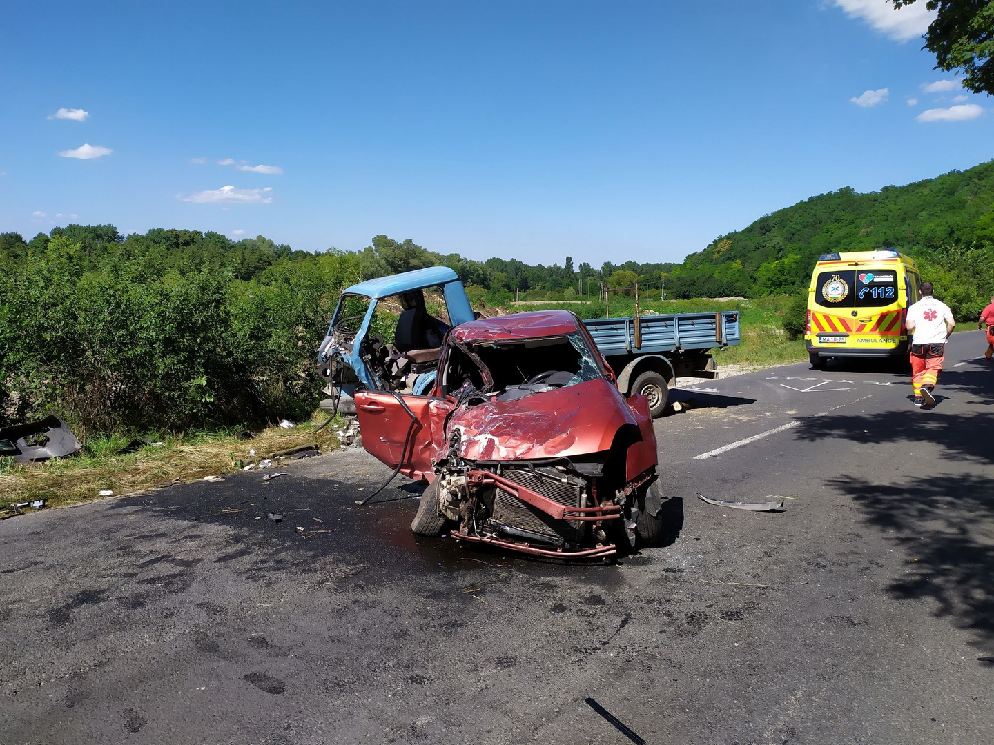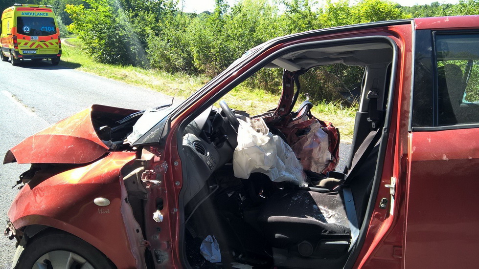 Kaposvár külterületén mintegy 150 kilométer/óra sebességgel sodródva ütközött össze egy személyautó a vele szemben közlekedő tehergépkocsival.