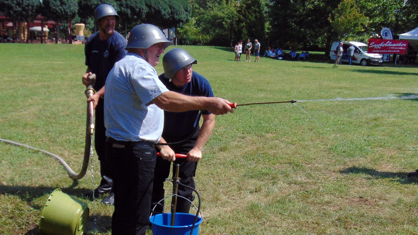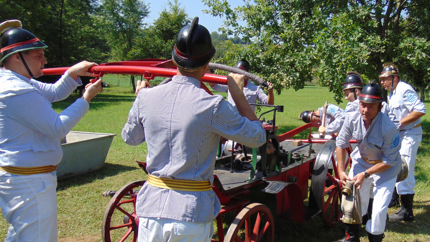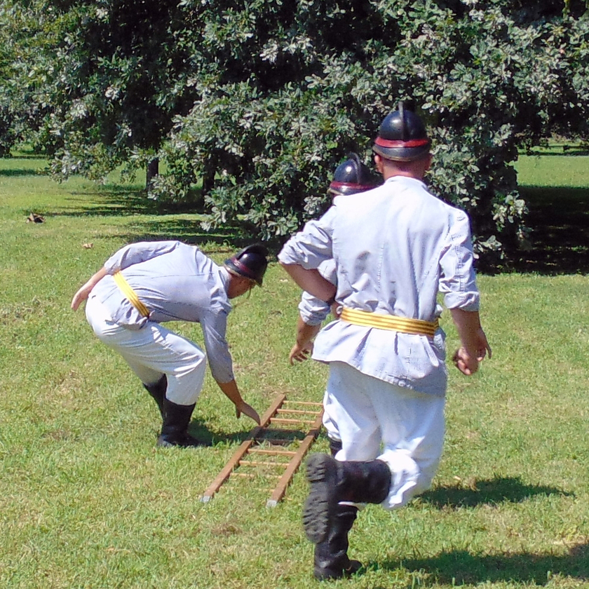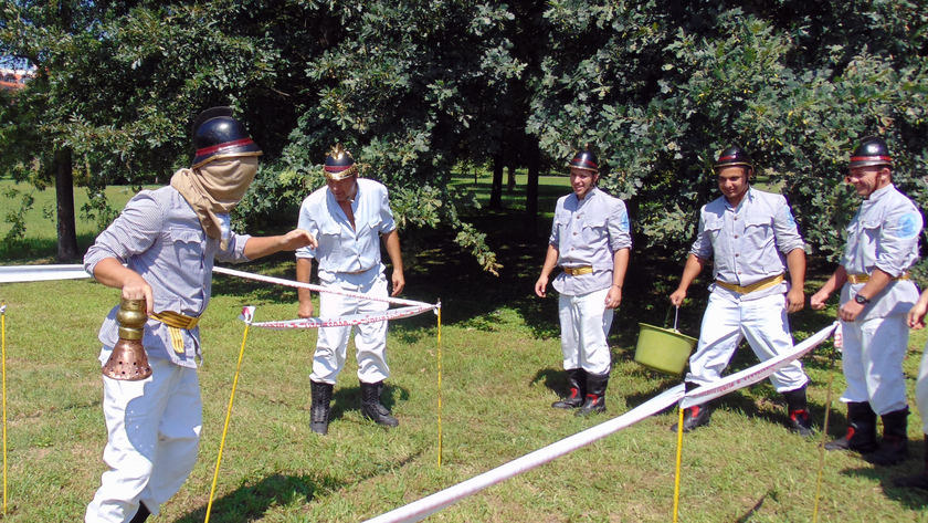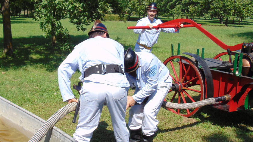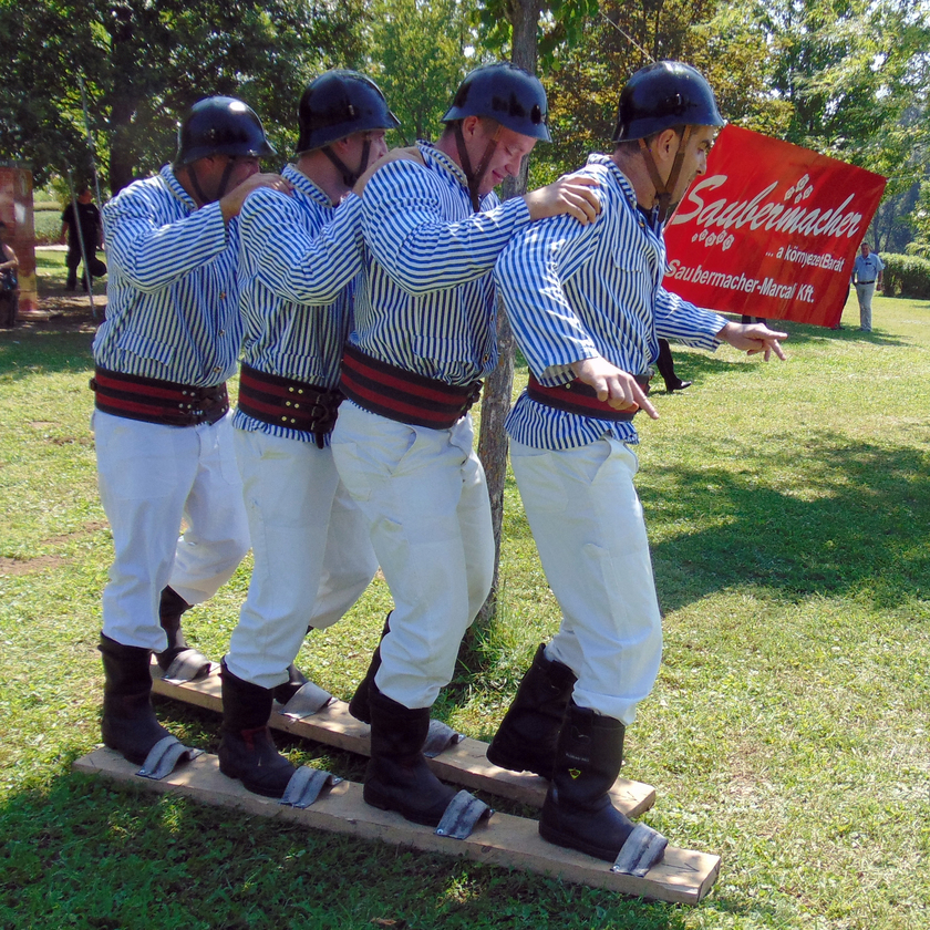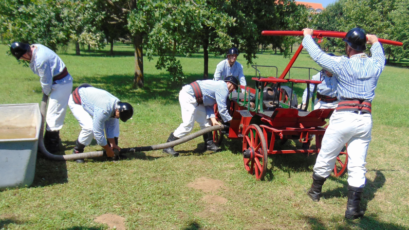 A népes nézősereg előtt rendezett erőpróbán a résztvevők a múlt századfordulón használt tűzoltó egyenruhába öltözve, múlt századi tűzoltó felszerelések alkalmazásával teljesítették az előttük álló nehéz, ám szórakoztató feladatokat.