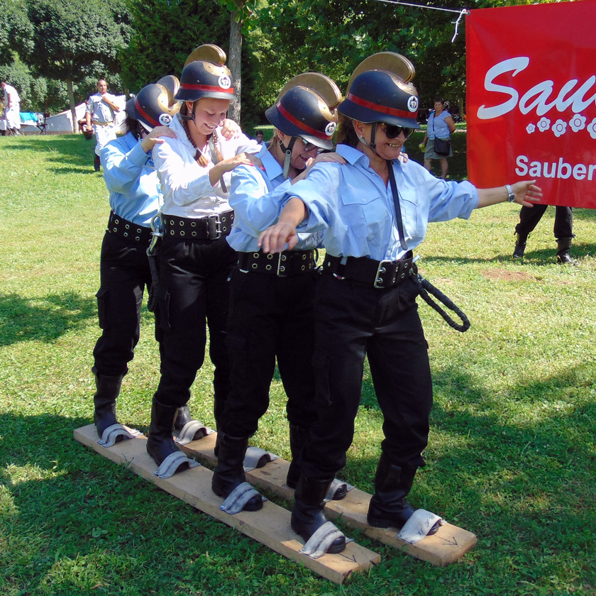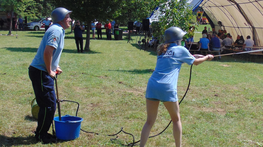 A látványos versenyszámok közül elsőként mocsárjárásban mérték össze ügyességüket a csapatok, ennek során lábukra erősített deszkatalpakon keltek át egy képzeletbeli ingoványon. Eztán létrára másztak, hogy egy magas fáról megszerezzék a későbbi oltáshoz szükséges vödröt. A harmadik tusa során egy korabeli szűrőkosárral dobtak célba, majd egy bizalomra és együttműködésre épülő feladat következett: a versenyzők külső irányítás mellett, labirintuson vezették át kámzsával eltakart szemű társaikat. A leglátványosabb pillanatokat a kocsifecskendőről történő vízsugárszerelés nyújtotta, ennek során az indulók felszívásos táplálással töltöttek meg egy kézi hajtású vödörből oltó készüléket, amellyel képzeletbeli tüzet oltottak.