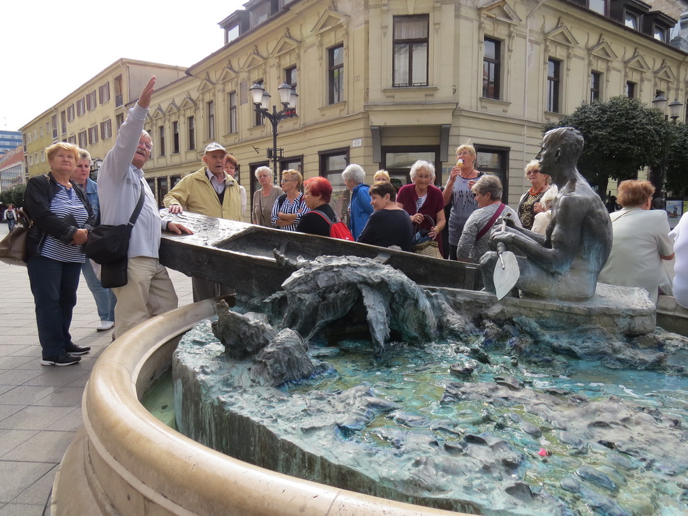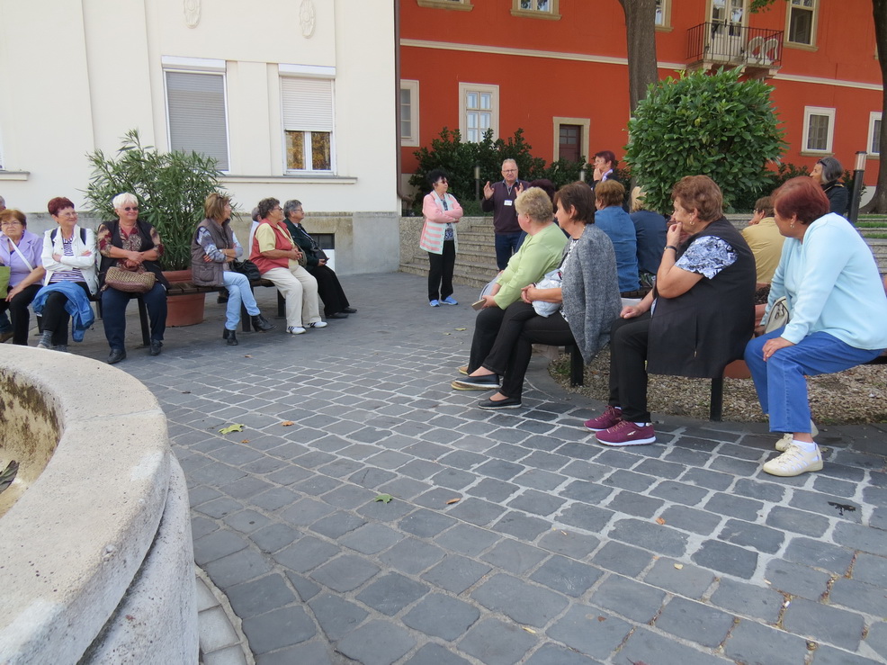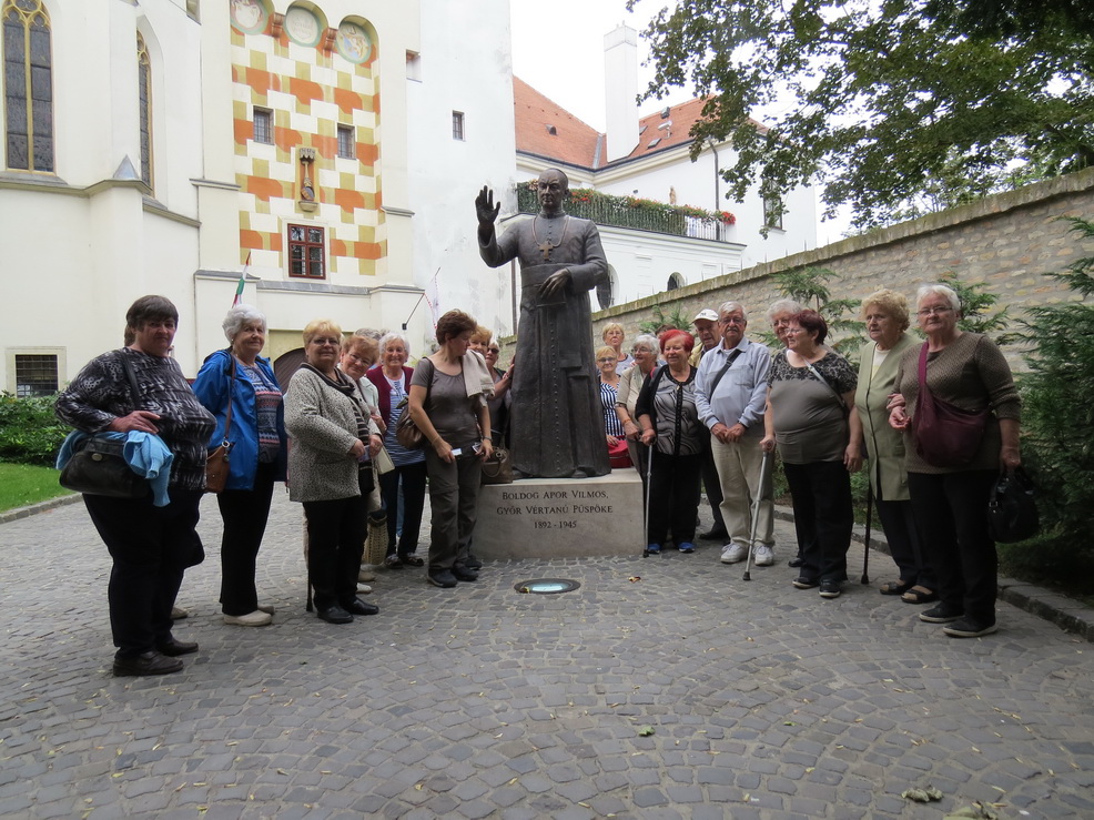 Itt két csoportot alkotva indultunk el ismerkedni a belváros nevezetességeivel. A program főbb állomásai voltak a Bazilika (Könnyező Szűzanya-kép), Szent László hermája, Boldog Apor Vilmos püspök síremléke, Frigyláda-szobor, Bécsi kapu téren a Kármelita templom, és végig a város legjelentősebb sétálóutcáján a Baross Gábor úton, számos látnivalóval, majd végül megérkeztünk a Megyeháza térre. Itt megköszöntük idegenvezetőinknek a sok tudnivalót és színes történetet, amit megosztottak velünk és elbúcsúztunk tőlük.