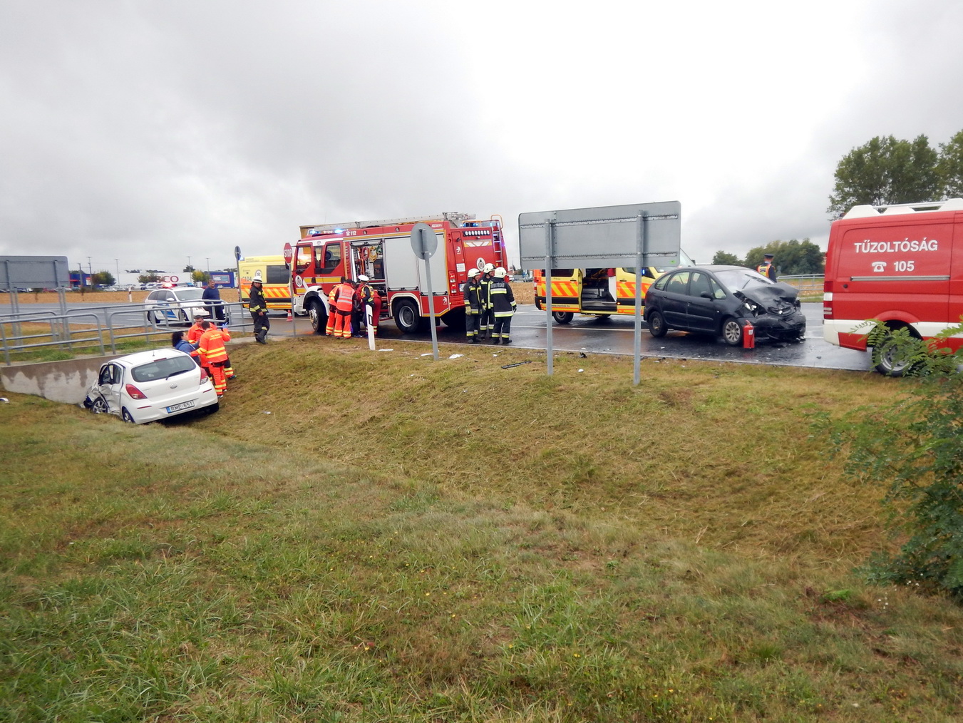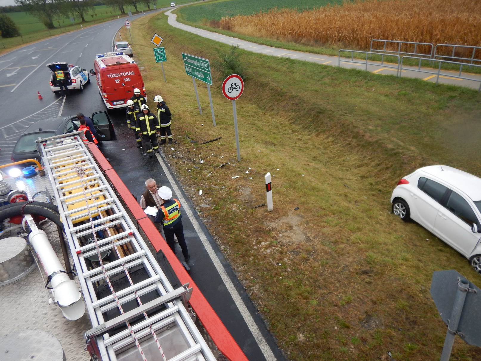 Az ütközés következtében az egyik személygépkocsi az árokba hajtott és beton hídfejnek csapódott, a másik az úttesten képezett forgalmi akadályt. A marcali hivatásos tűzoltók a járműveket áramtalanították, majd közreműködtek a műszaki mentésben és a forgalmi akadály megszüntetésében.