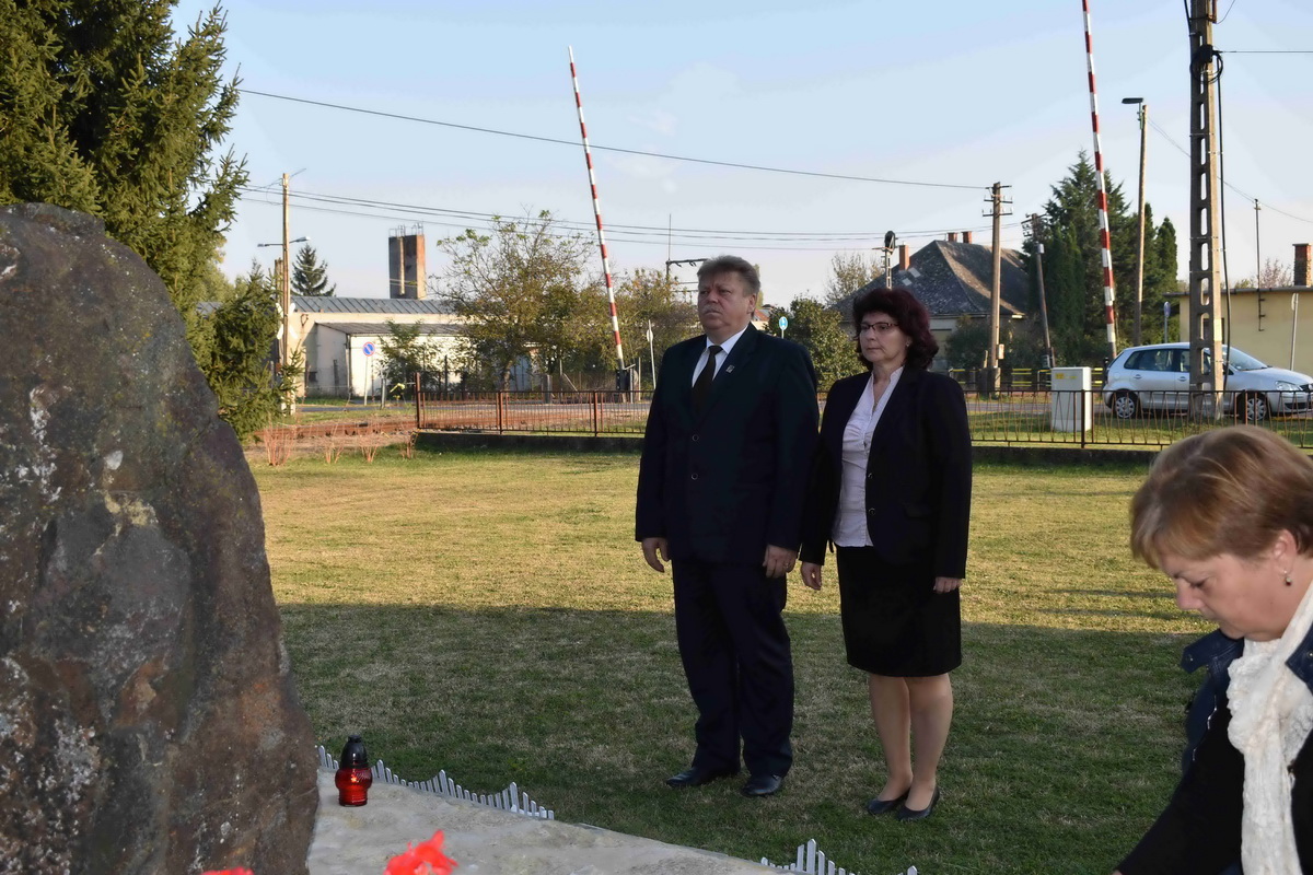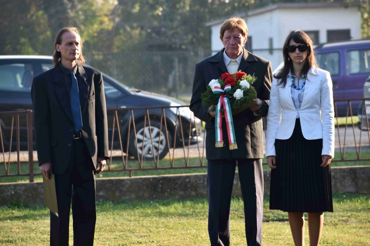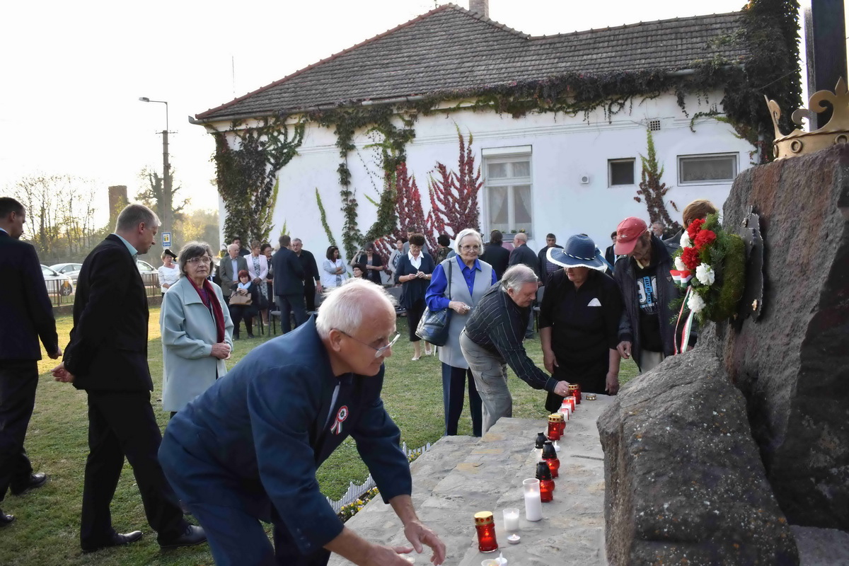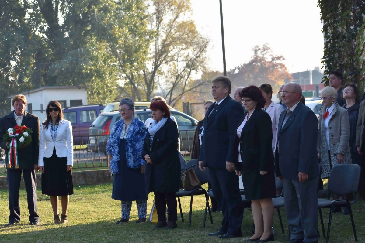 A program az udvari emlékműnél kezdődött, ahol a Himnusz eléneklése után a megjelenteket Szaka Zsolt elnök köszöntötte, majd Huszti Gábor mondott ünnepi beszédet a forradalomról és máig ható következményeiről. Ezután az egyesület képviseletében Fábos-Landi Vivien és Sziva László helyezték el a koszorút. Végül a jelenlévők gyertyákat és mécseseket gyújtottak a mártírok tiszteletére.