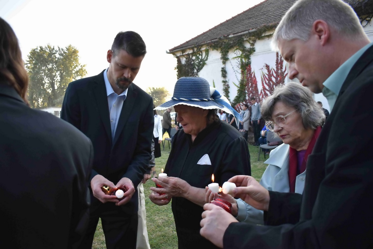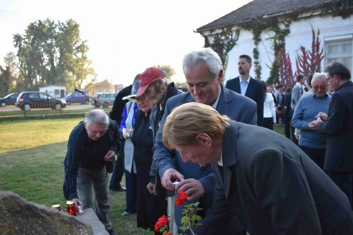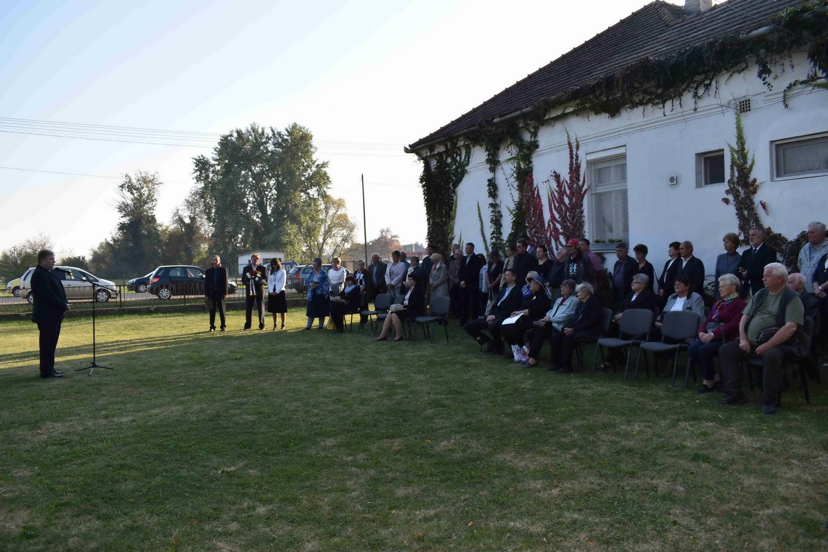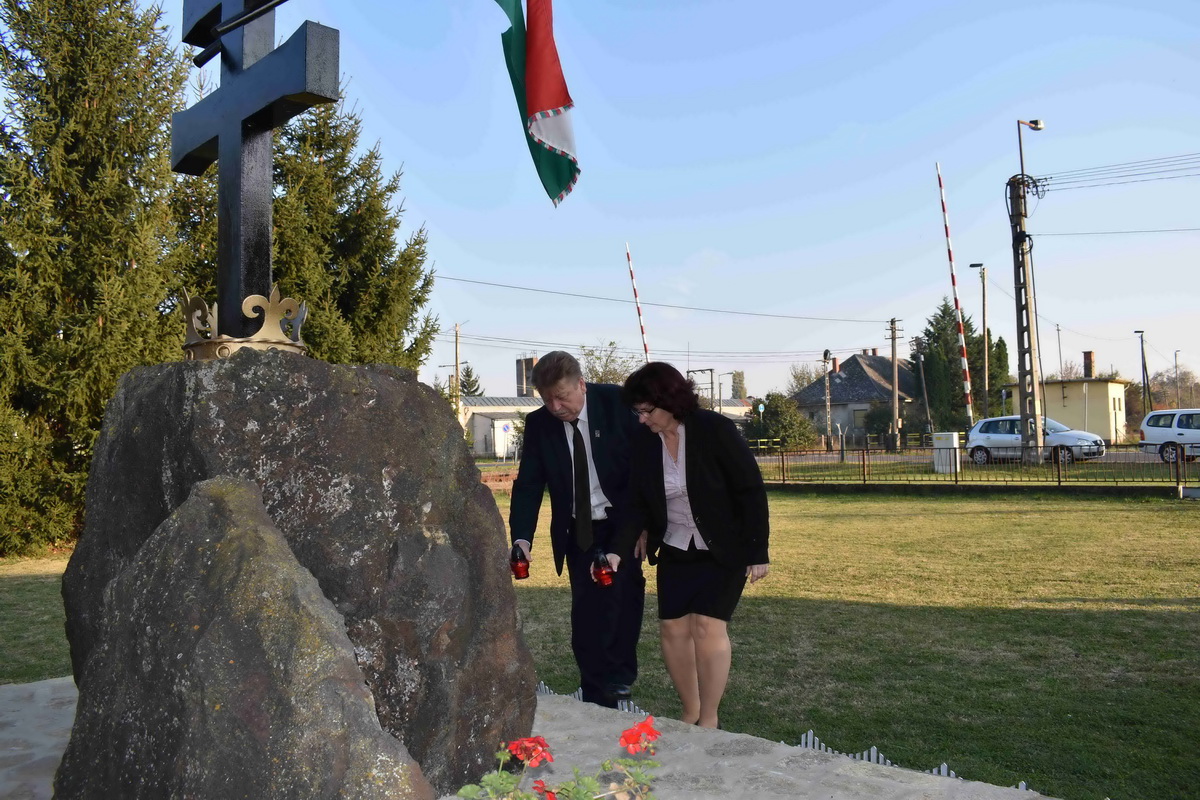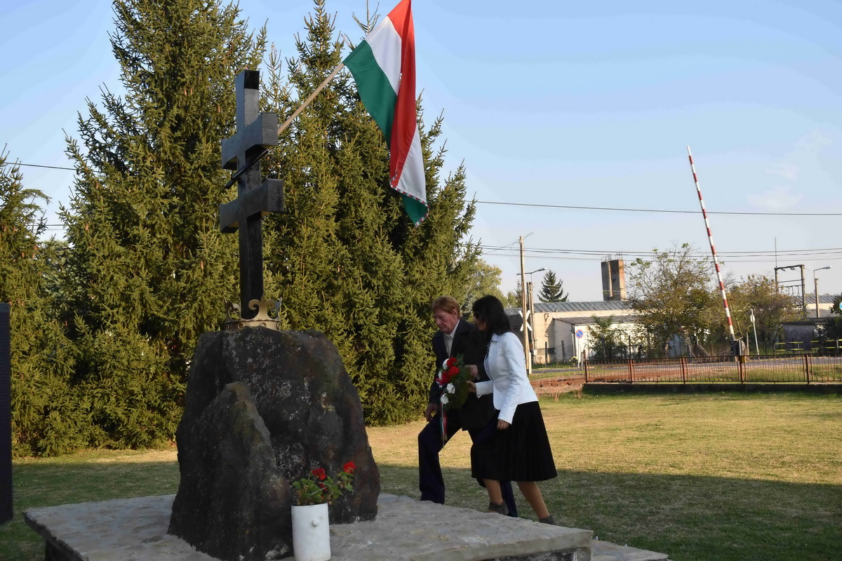 A program az udvari emlékműnél kezdődött, ahol a Himnusz eléneklése után a megjelenteket Szaka Zsolt elnök köszöntötte, majd Huszti Gábor mondott ünnepi beszédet a forradalomról és máig ható következményeiről. Ezután az egyesület képviseletében Fábos-Landi Vivien és Sziva László helyezték el a koszorút. Végül a jelenlévők gyertyákat és mécseseket gyújtottak a mártírok tiszteletére.