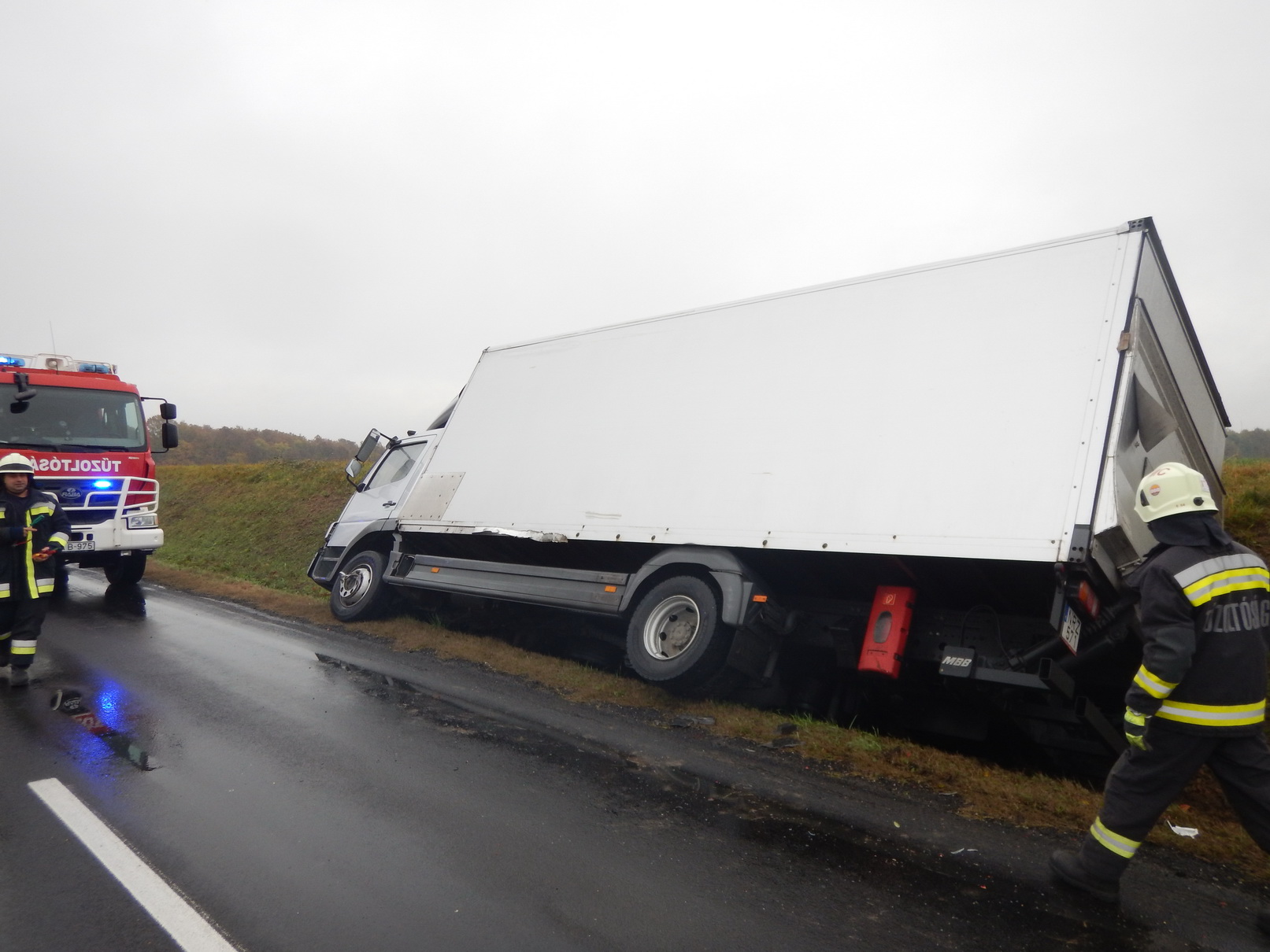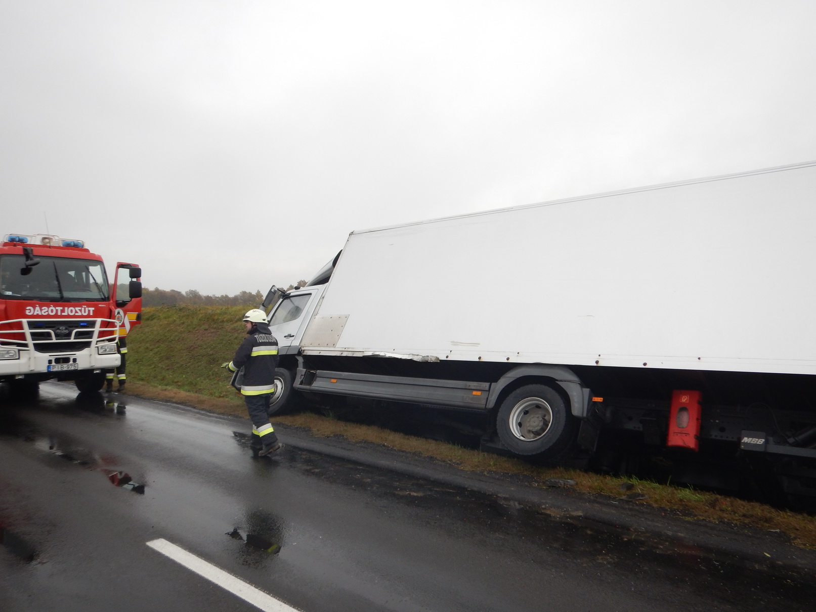 Az autóban négyen utaztak, egyiküket a kiérkező egységek segítették ki a roncsból. A baleset során a teherautó az árokba dőlt, ám rakománya sértetlen maradt. A marcali hivatásos tűzoltók áramtalanították a személyautót és közreműködtek a műszaki mentésben.