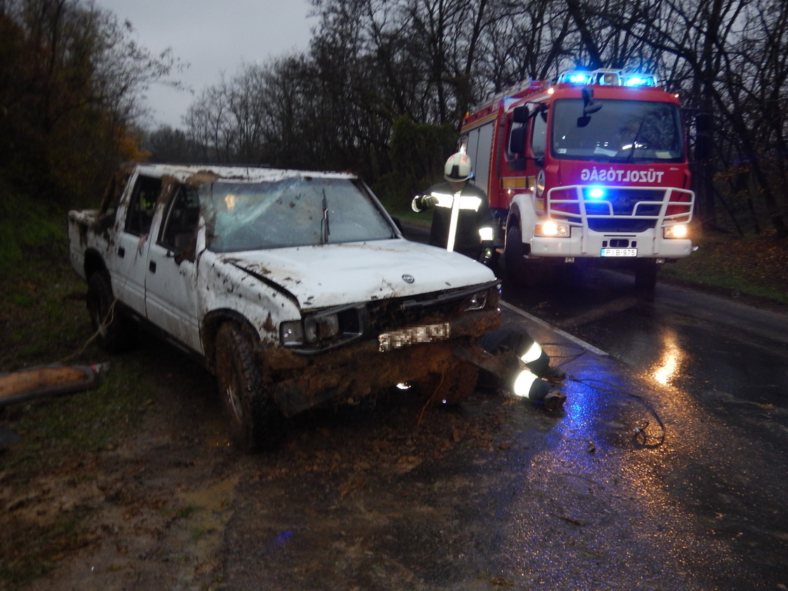 A járműben csak a sofőr utazott, ő saját erejéből ki tudott szállni. A balesethez a marcali hivatásos tűzoltókat és a katasztrófavédelmi műveleti szolgálatot riasztották. Az egységek a gépkocsi helyzete miatt az áramtalanítást és a műszaki mentést csak nehezen tudták elvégezni. A tűzoltók kerekeire állították a sérült járművet, eközben teljes útzár volt az érintett útszakaszon.