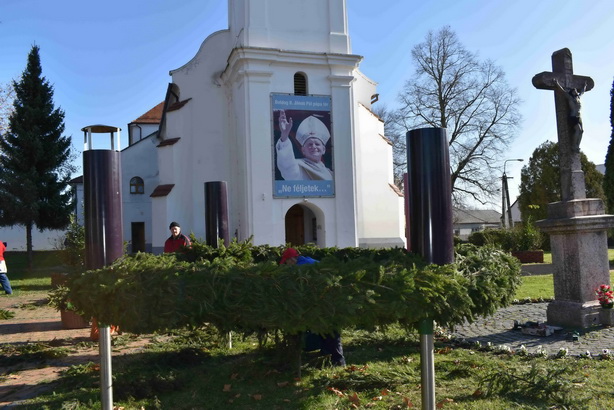 2019. november 30-án, szombaton délelőtt 9 órától kezdődött a kültéri ádventi koszorú elkészítésea Boldog II. János Pál pápa téren.