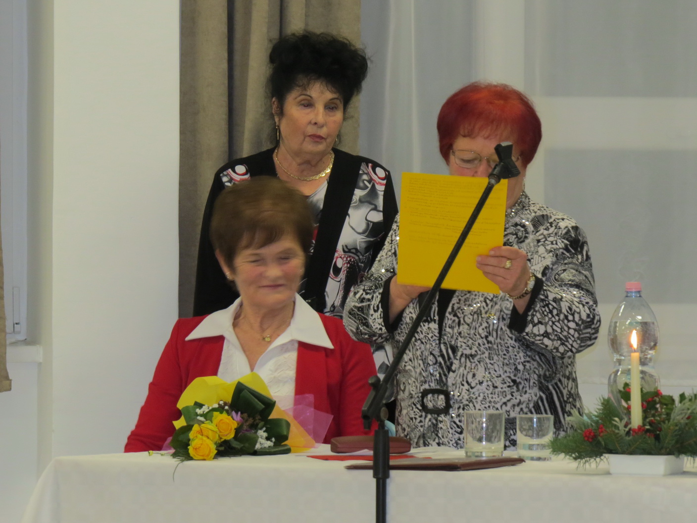 A hagyományokhoz híven megemlékezéssel, majd az éves beszámolóval kezdődött a hivatalos program, melynek végén Salamon Györgyné megköszönte a tagság és vezetőség munkáját, név szerint kiemelve és jutalomban részesítve a legaktívabb tagokat.