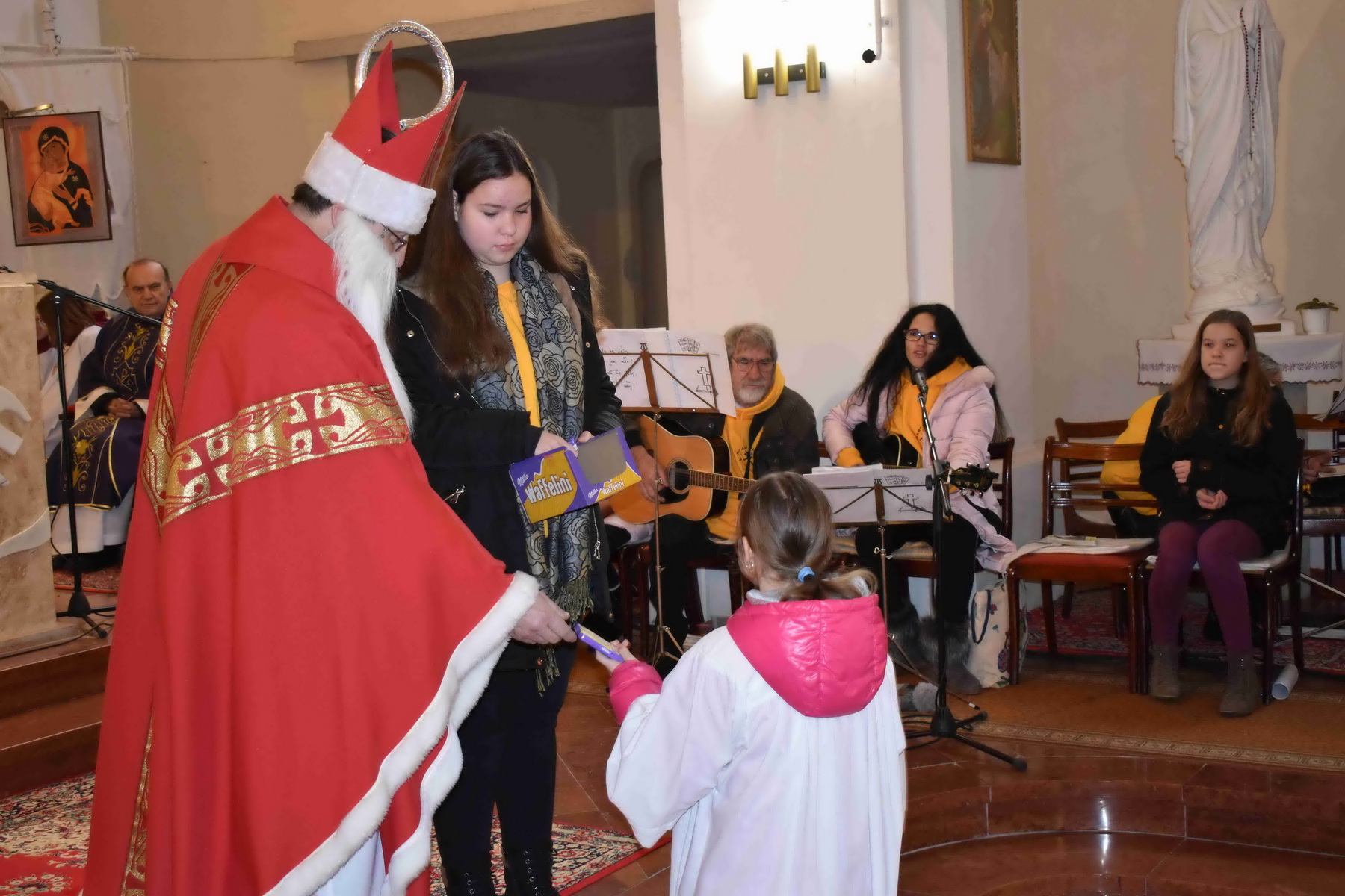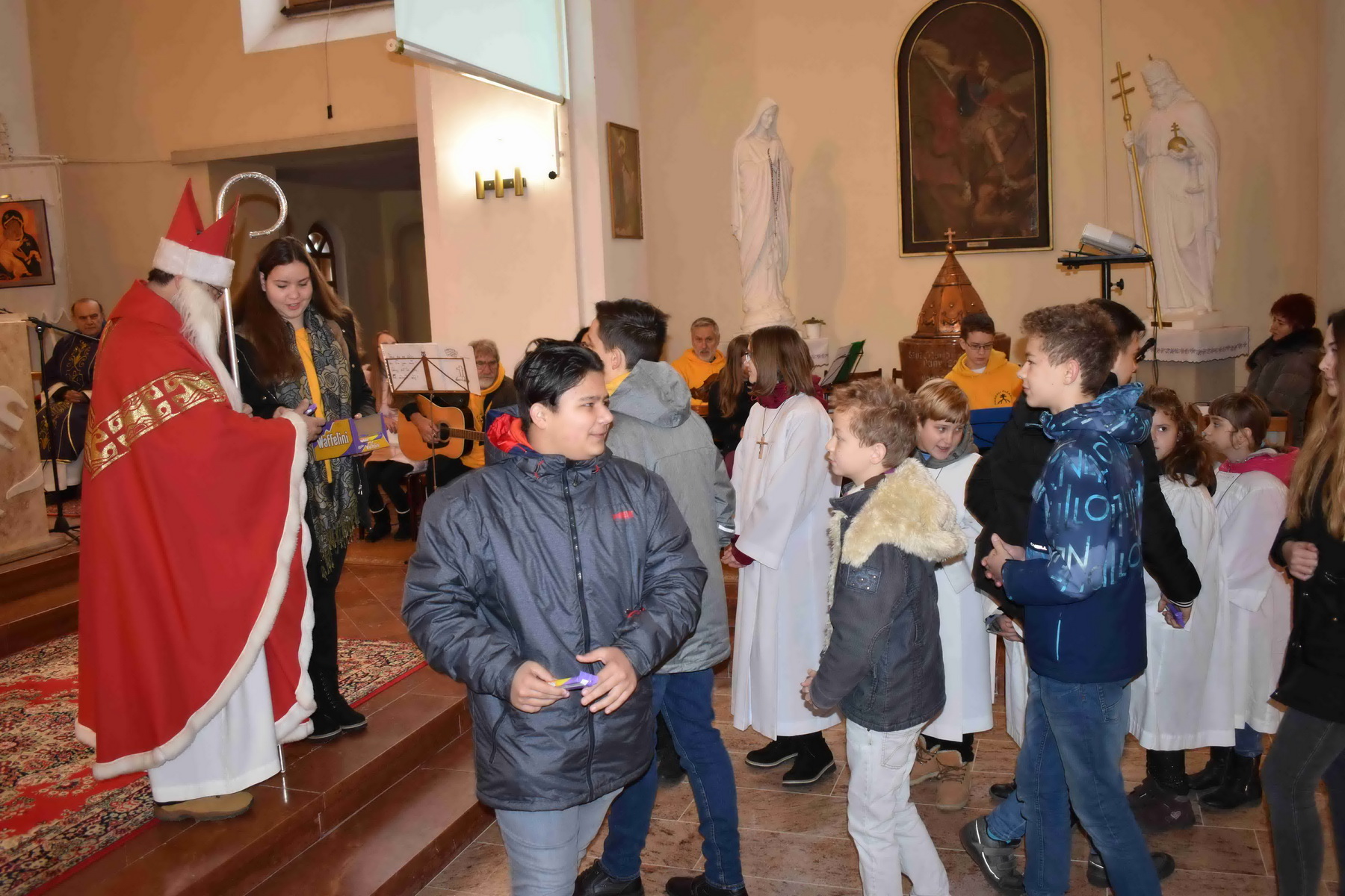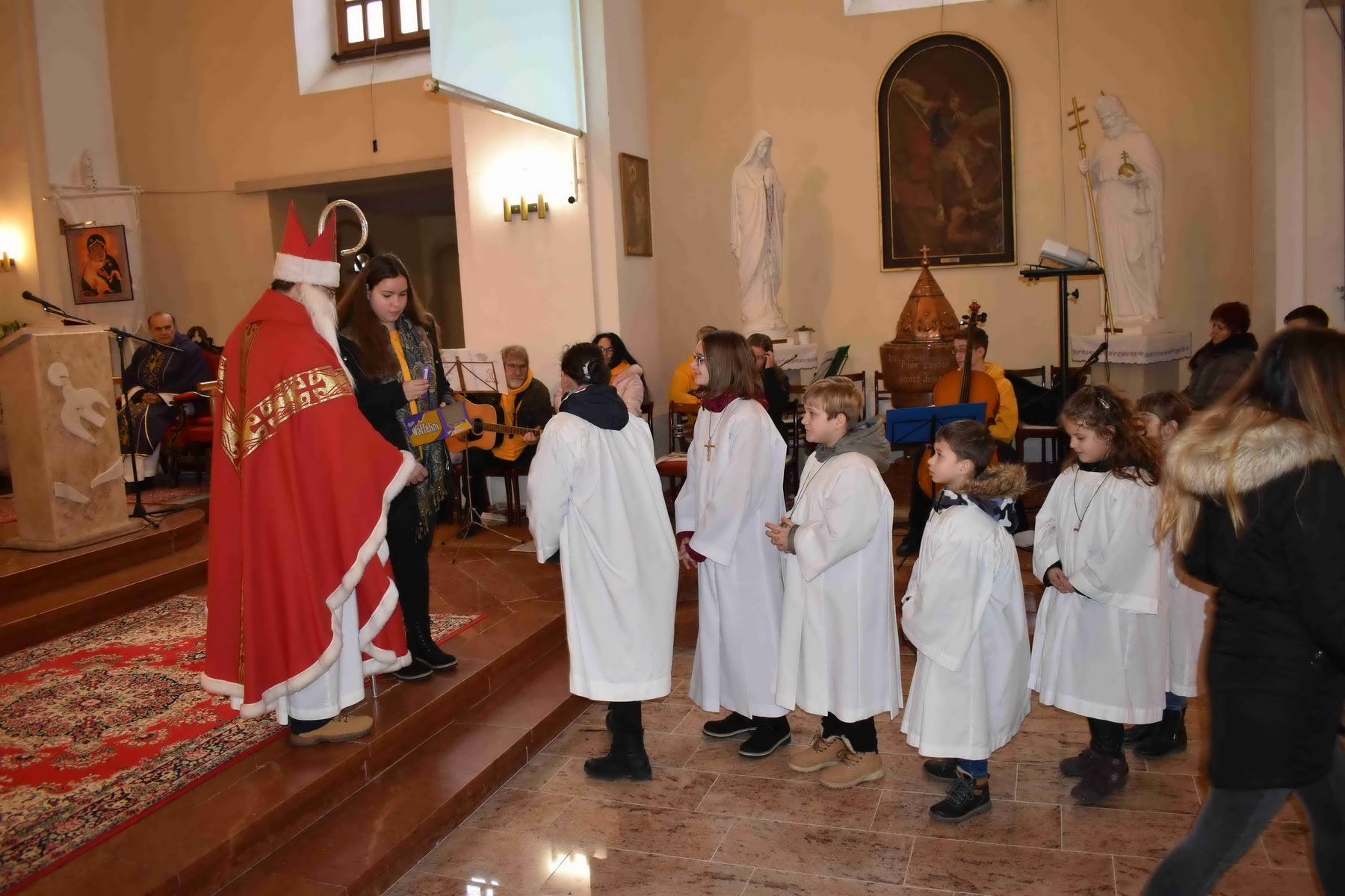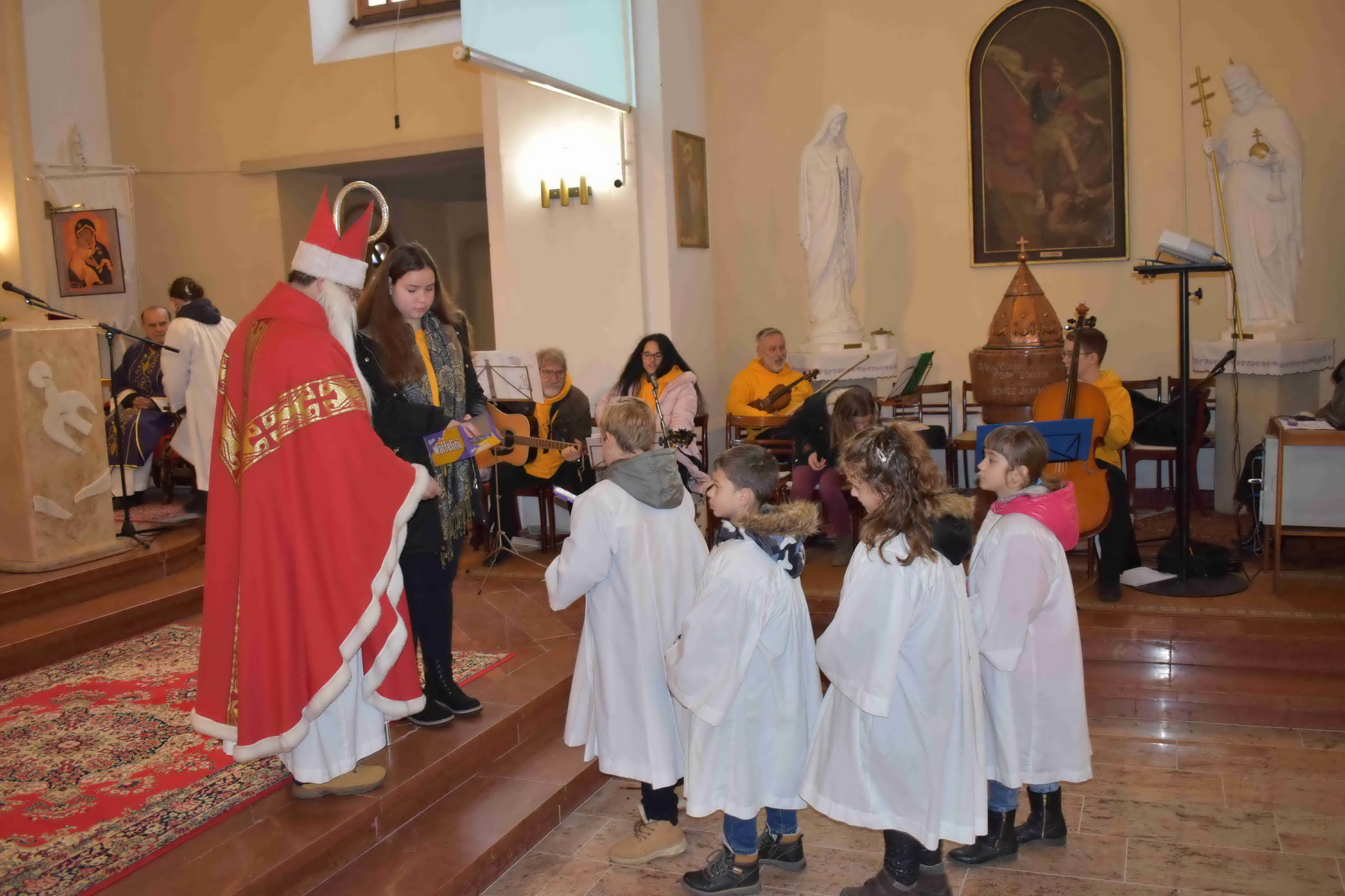 Szent Miklós megajándékozta a gyermekeket a plébániatemplomban