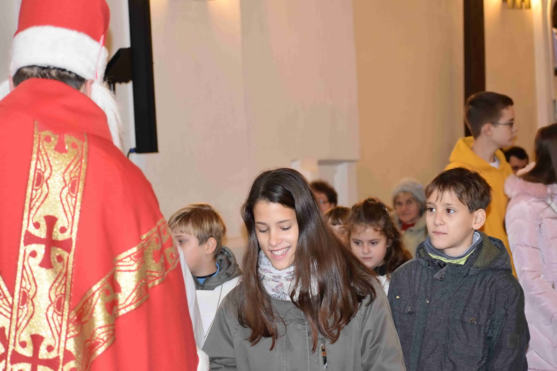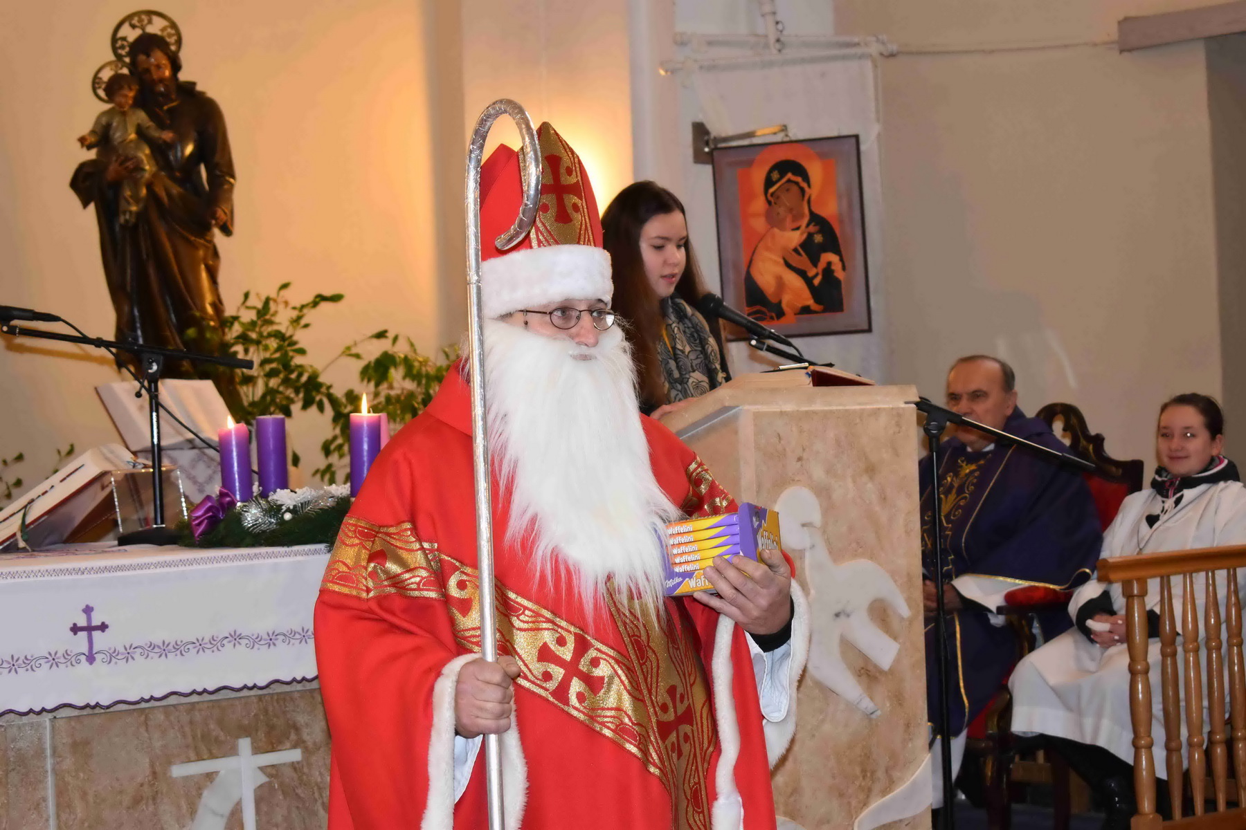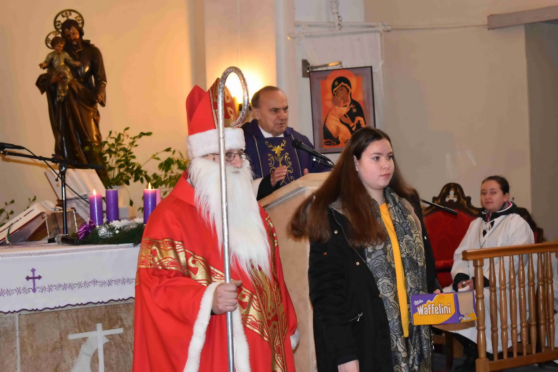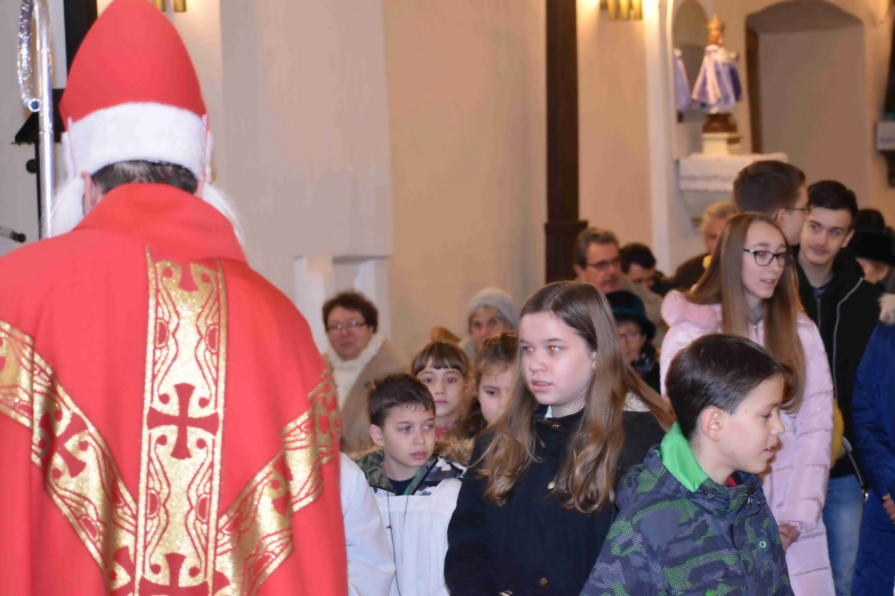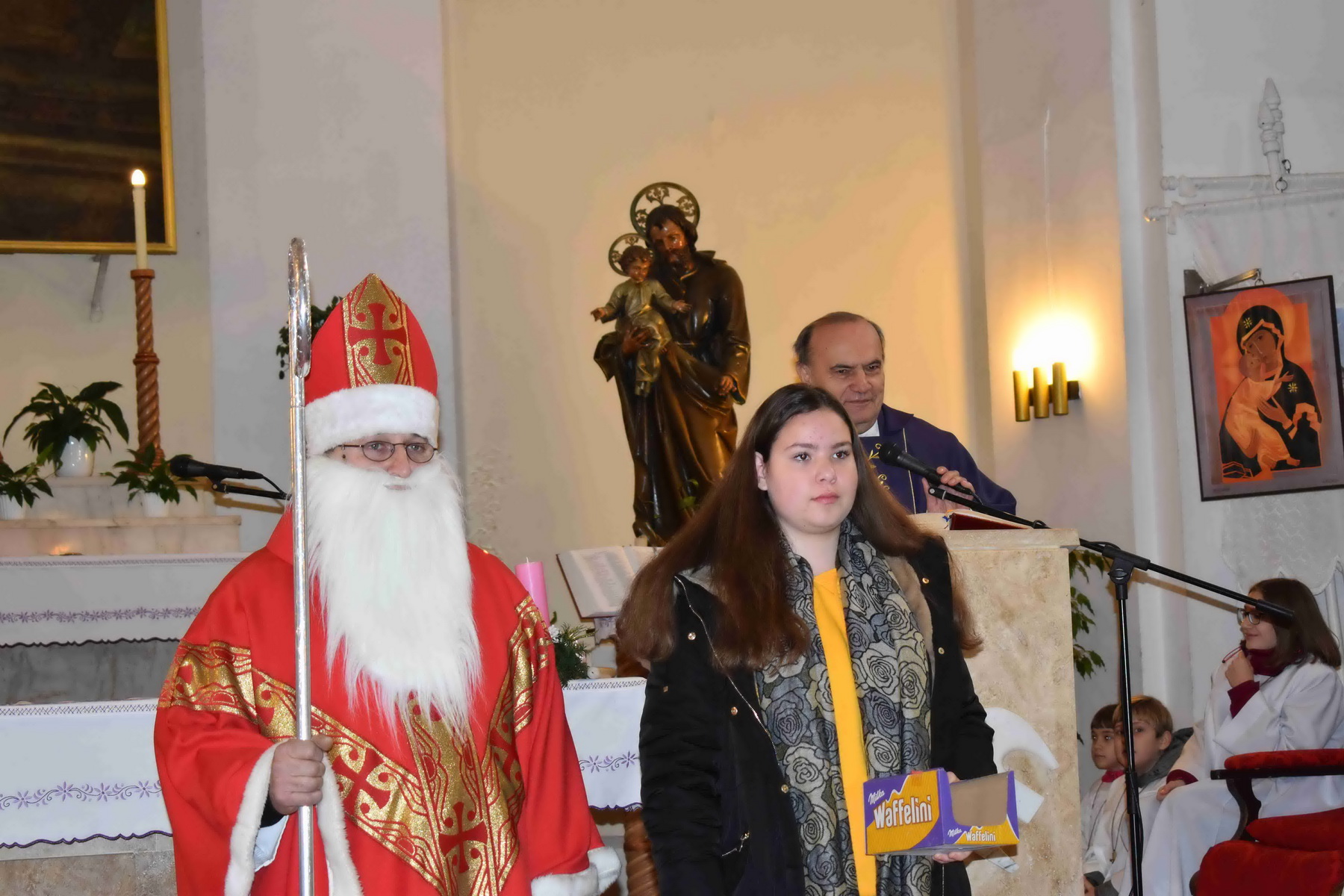 Szent Miklós megajándékozta a gyermekeket a plébániatemplomban