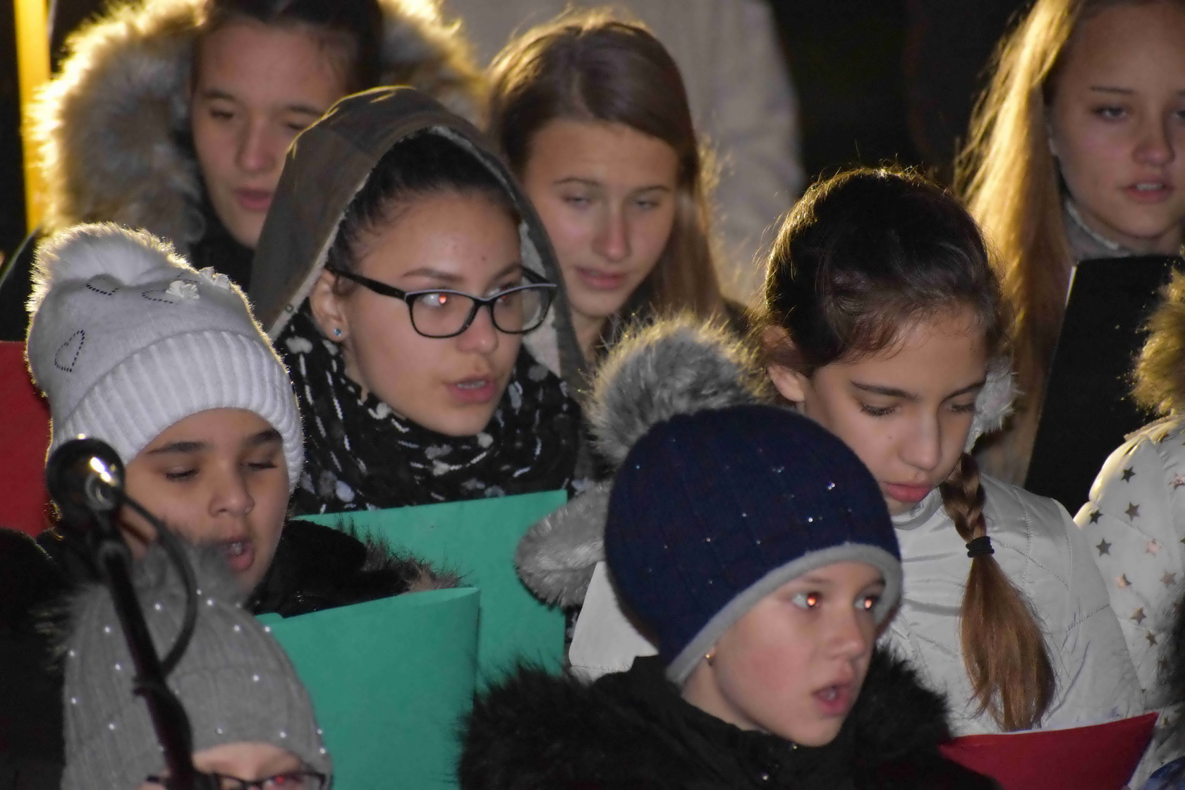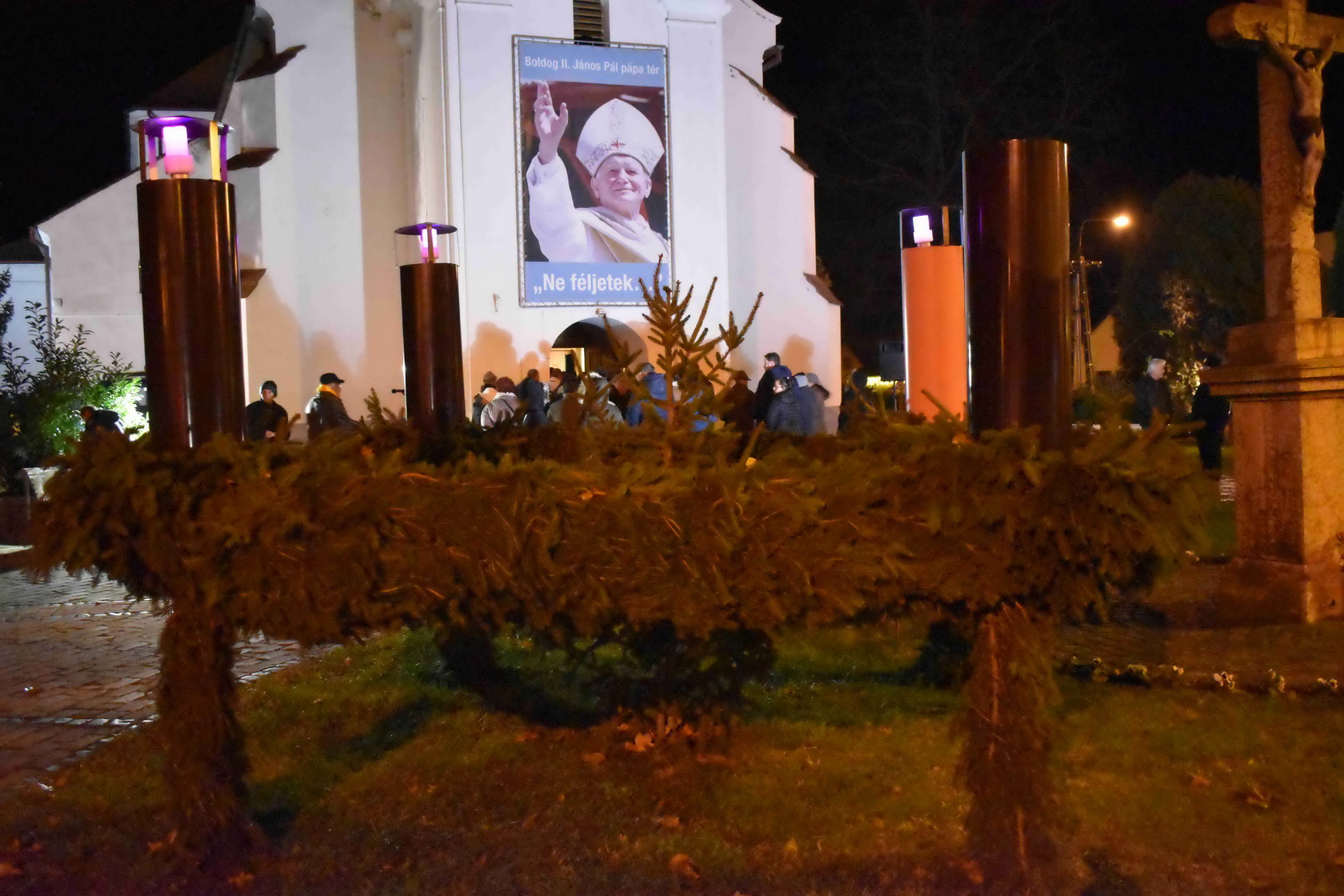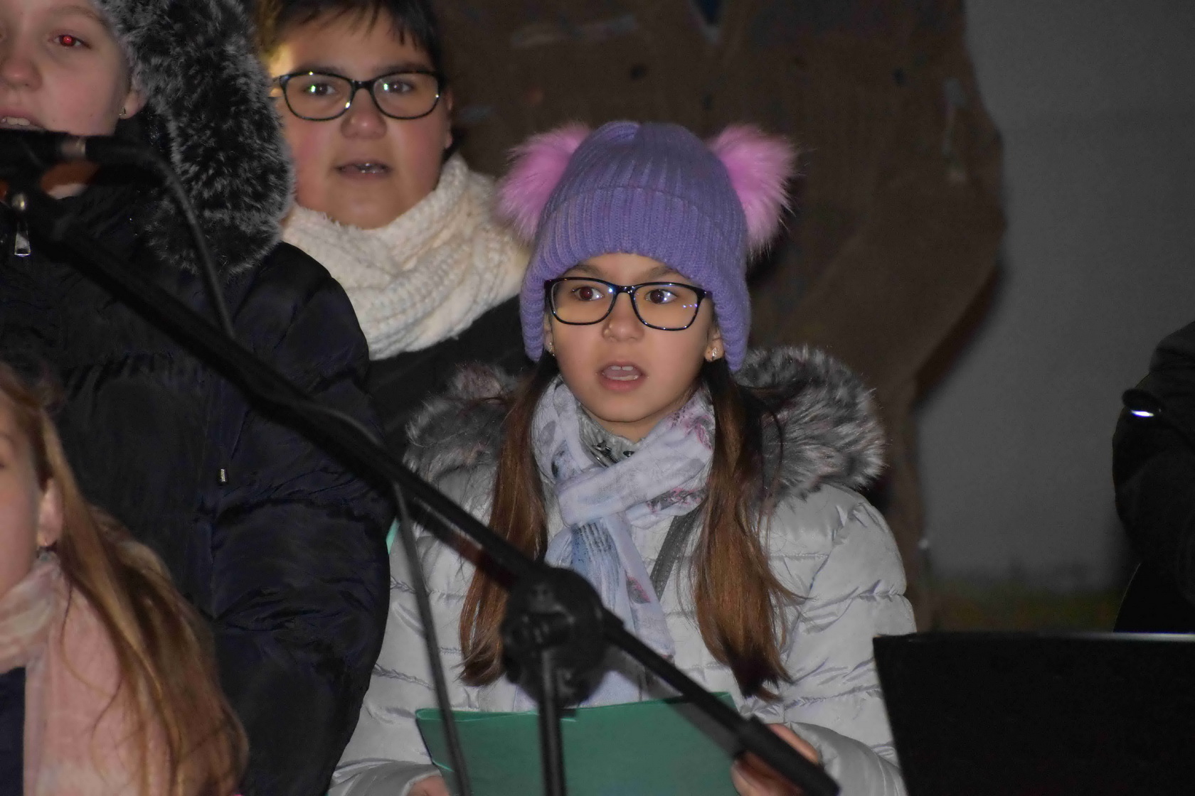 Szombat este a 3. adventi gyertyagyújtás volt a Boldog II. János Pál Pápa téren, a Mikszáth Kálmán Utcai Általános iskola tanulóinak közreműködésével.