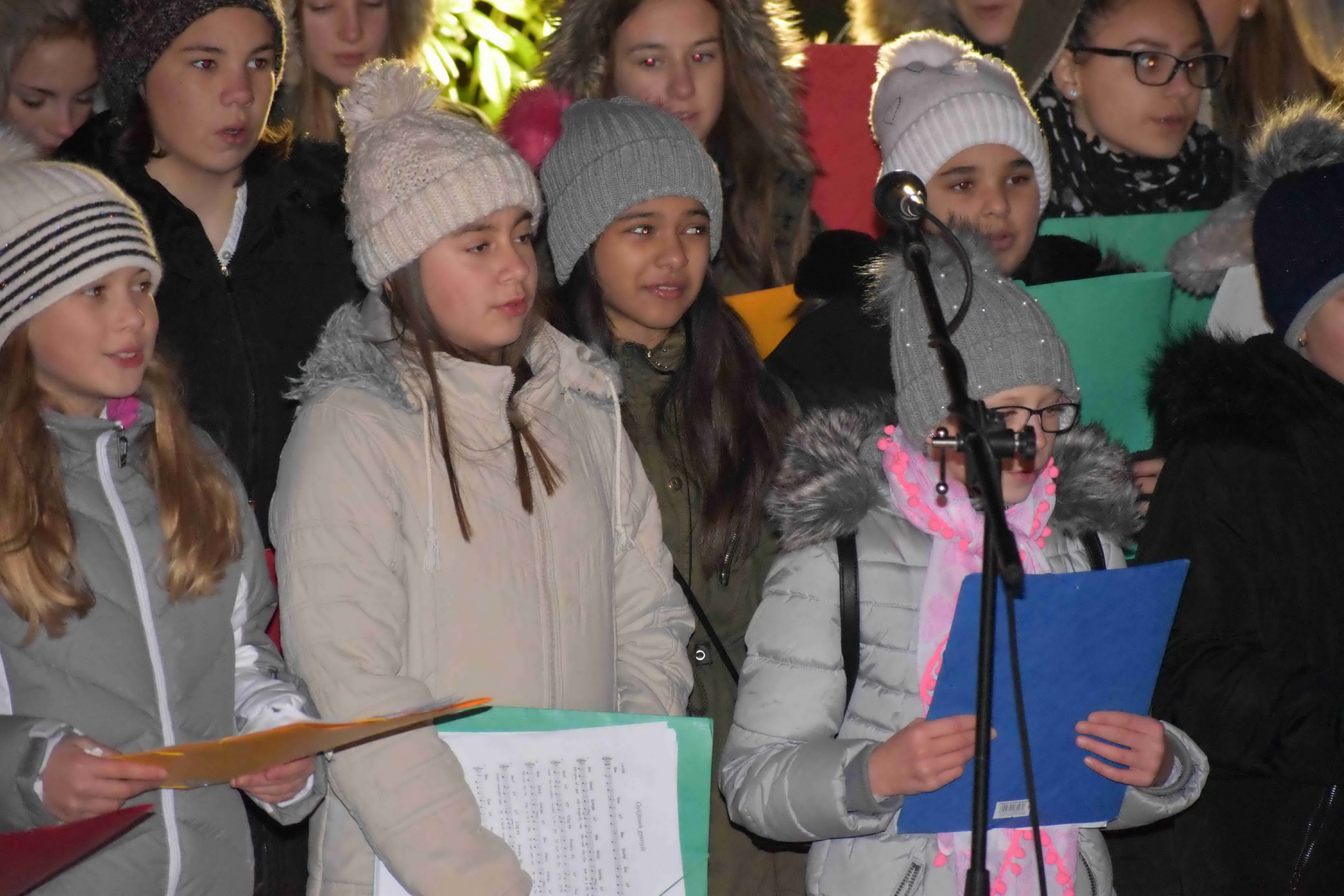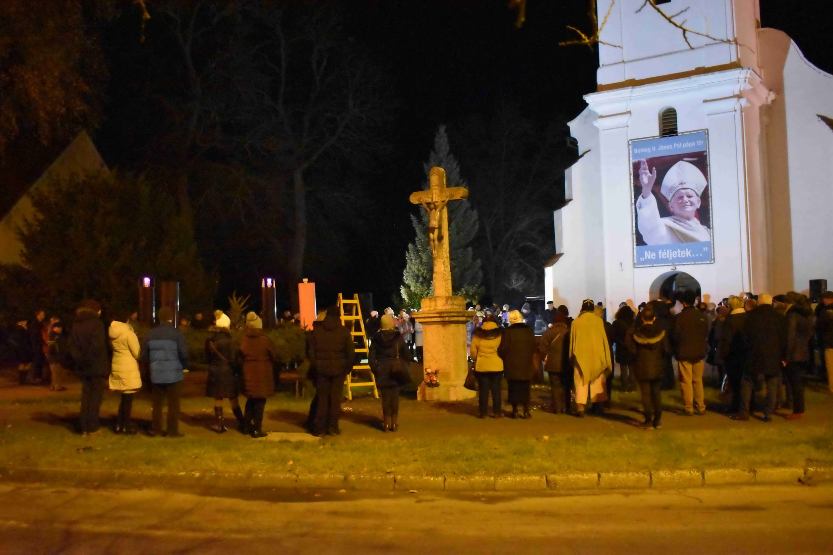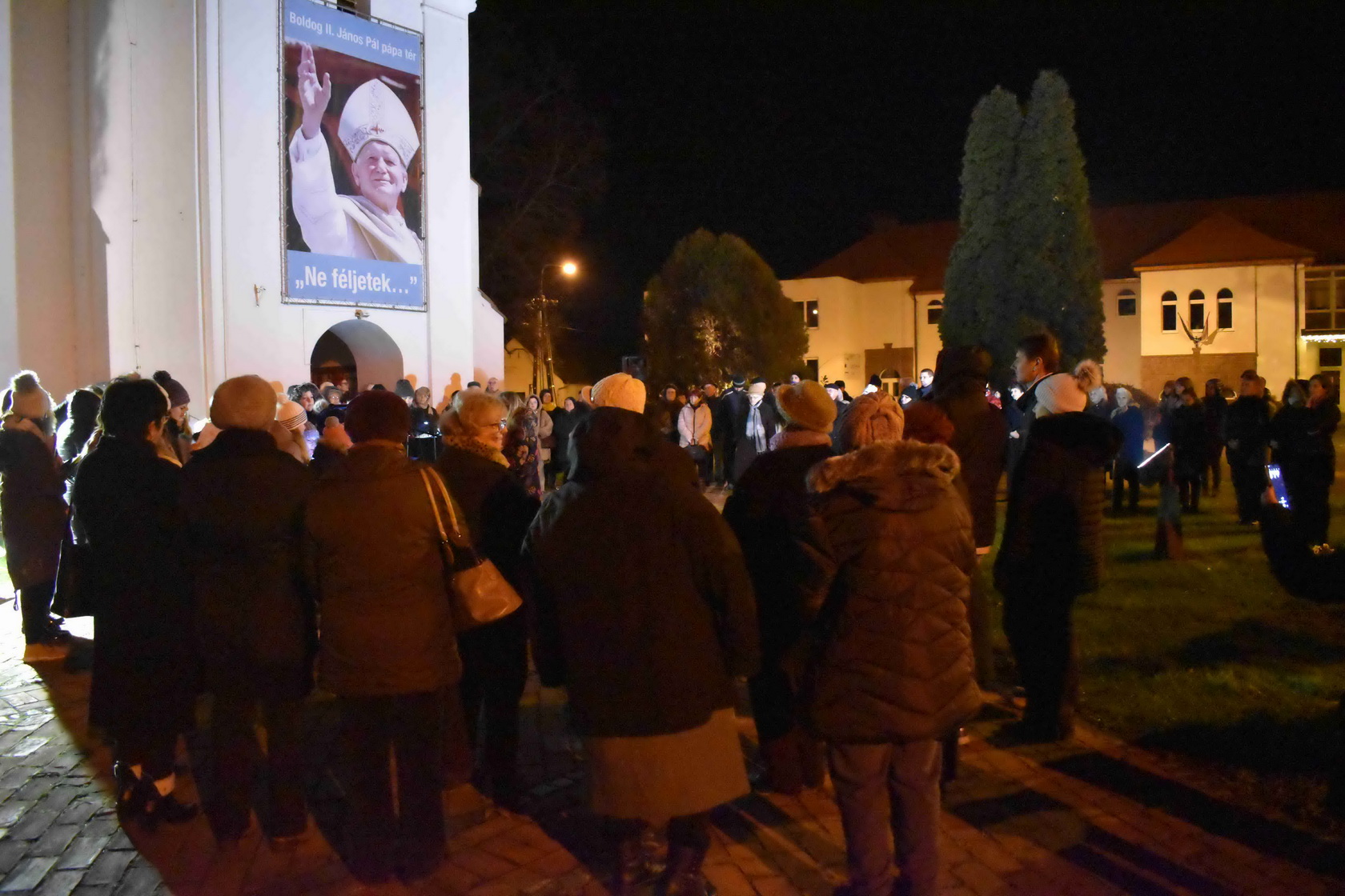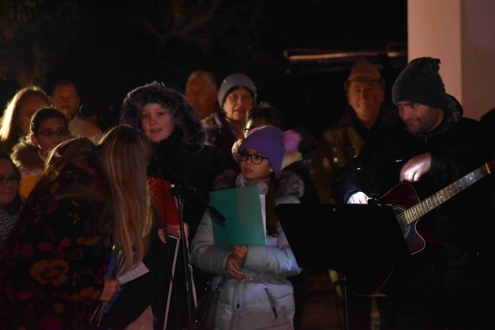 Szombat este a 3. adventi gyertyagyújtás volt a Boldog II. János Pál Pápa téren, a Mikszáth Kálmán Utcai Általános iskola tanulóinak közreműködésével.
