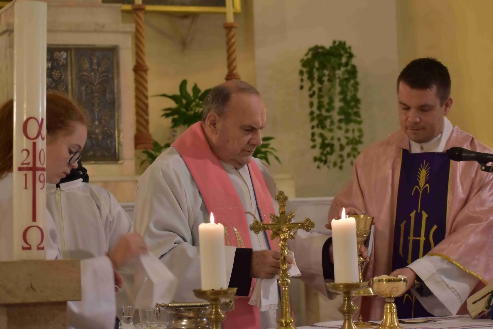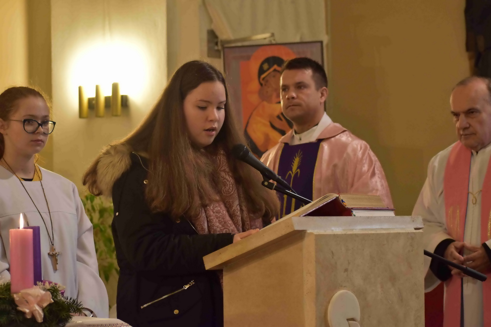 Ezután 17 órakor lelkigyakorlatos szentmise következett, melyet Bognár Tamás lábodi plébános celebrált és mondott szentbeszédet. Prédikációjában felhívta a figyelmet, hogy Jézus születésének megünneplése nélkül szép lehet, de mégis üres a karácsony. A szentmise végén Kiss Iván c. prépost, esperes-plébános megköszönte a vendég atya, a hitoktatók és a zenekar közreműködését, akik segítettek a tartalmas nap lebonyolításában.