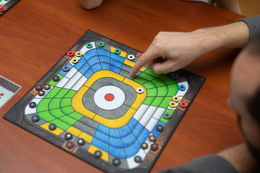 Pénteken az Év Társasjátéka verseny közönségkedvence, a Castle of mind alkotói mutatták be játékukat és szerveztek minibajnokságot a Korzó aulájában.